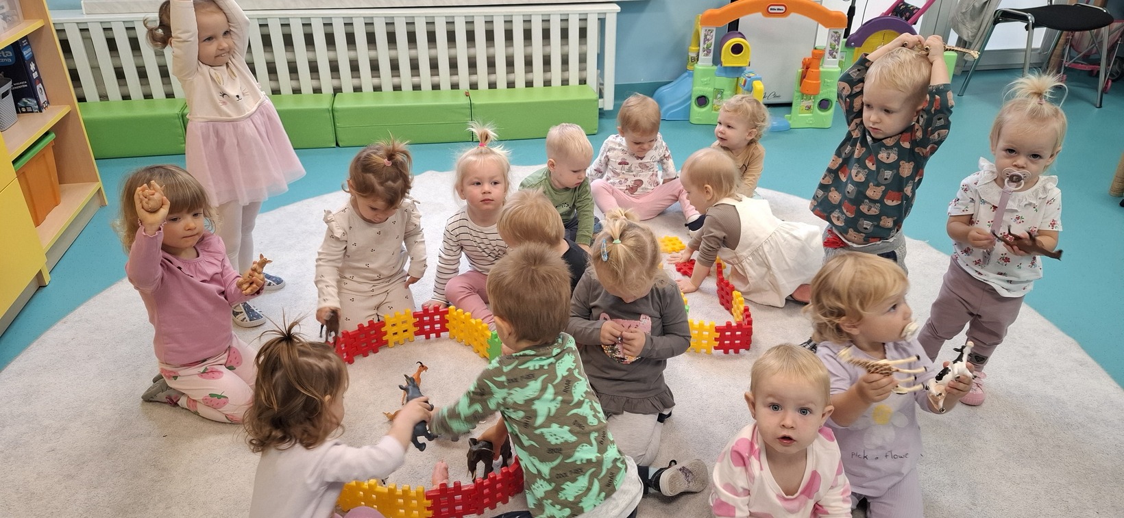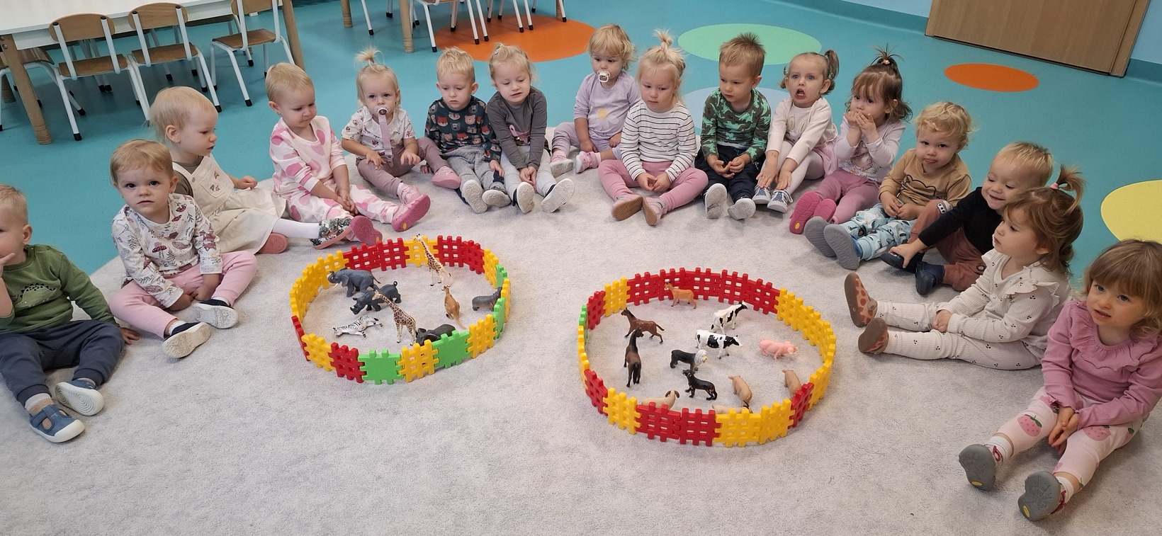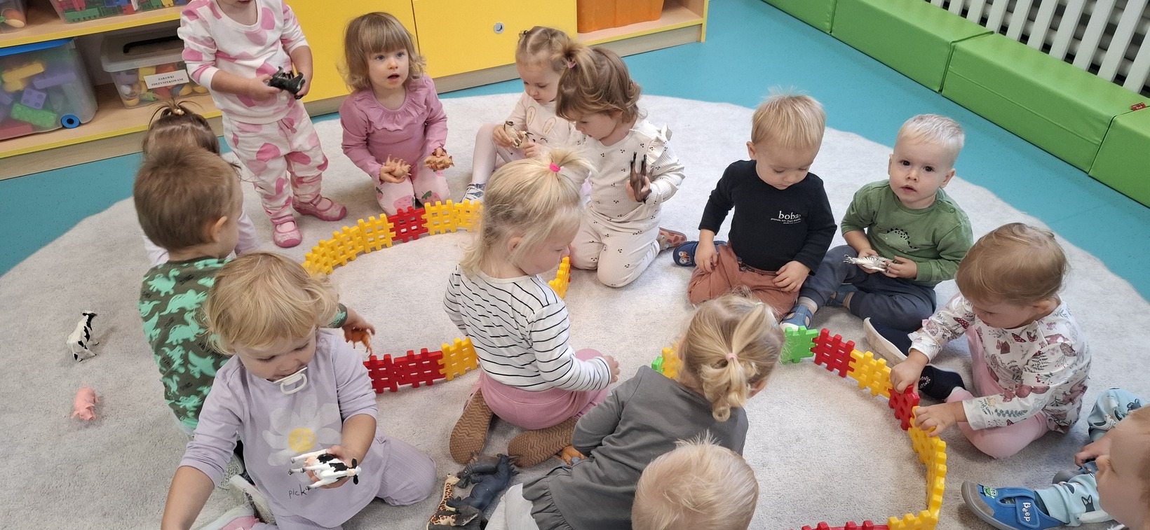 Dzisiaj w grupie drugiej świętowaliśmy Dzień Zwierząt. Dzieci oglądały obrazki, figurki zwierząt domowych i egzotycznych. Zapoznały się również z zasadami szacunku do zwierząt i odpowiedniego opiekowania się nimi. Wspólnie śpiewaliśmy piosenki o zwierzętach. Dzieci poznały również odgłosy zwierząt, w które wsłuchiwały się z ogromnym zainteresowaniem. Dużo uśmiechu i radości towarzyszyło dzieciom w tym dniu.