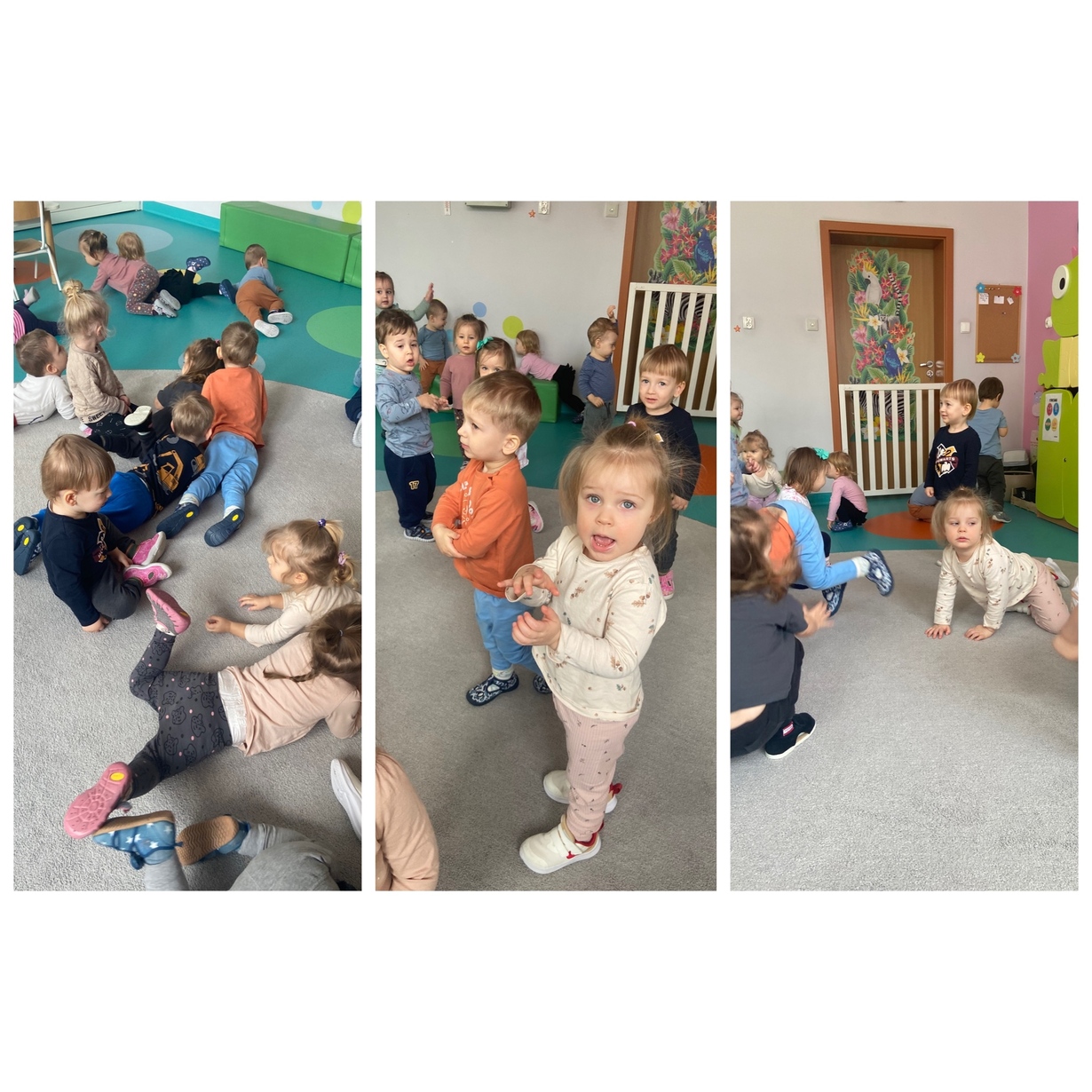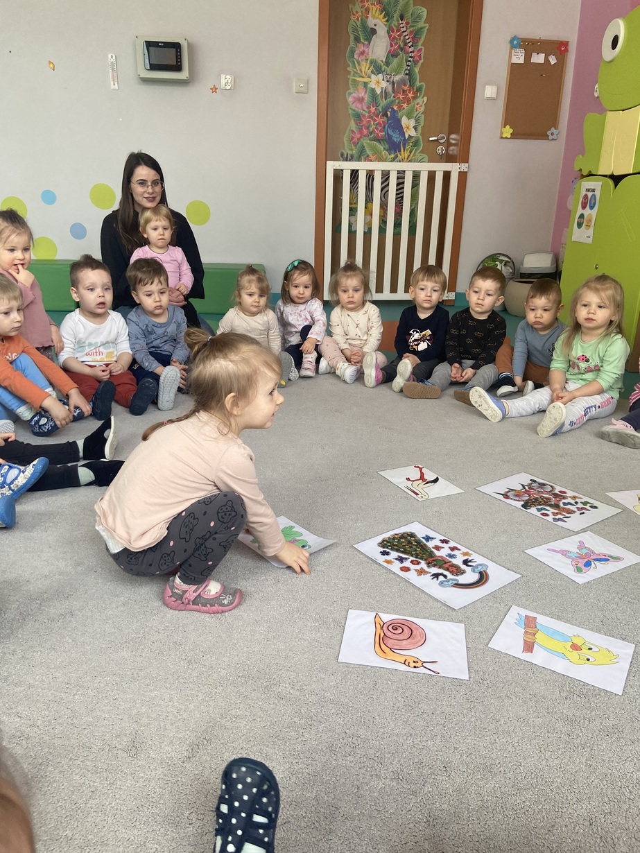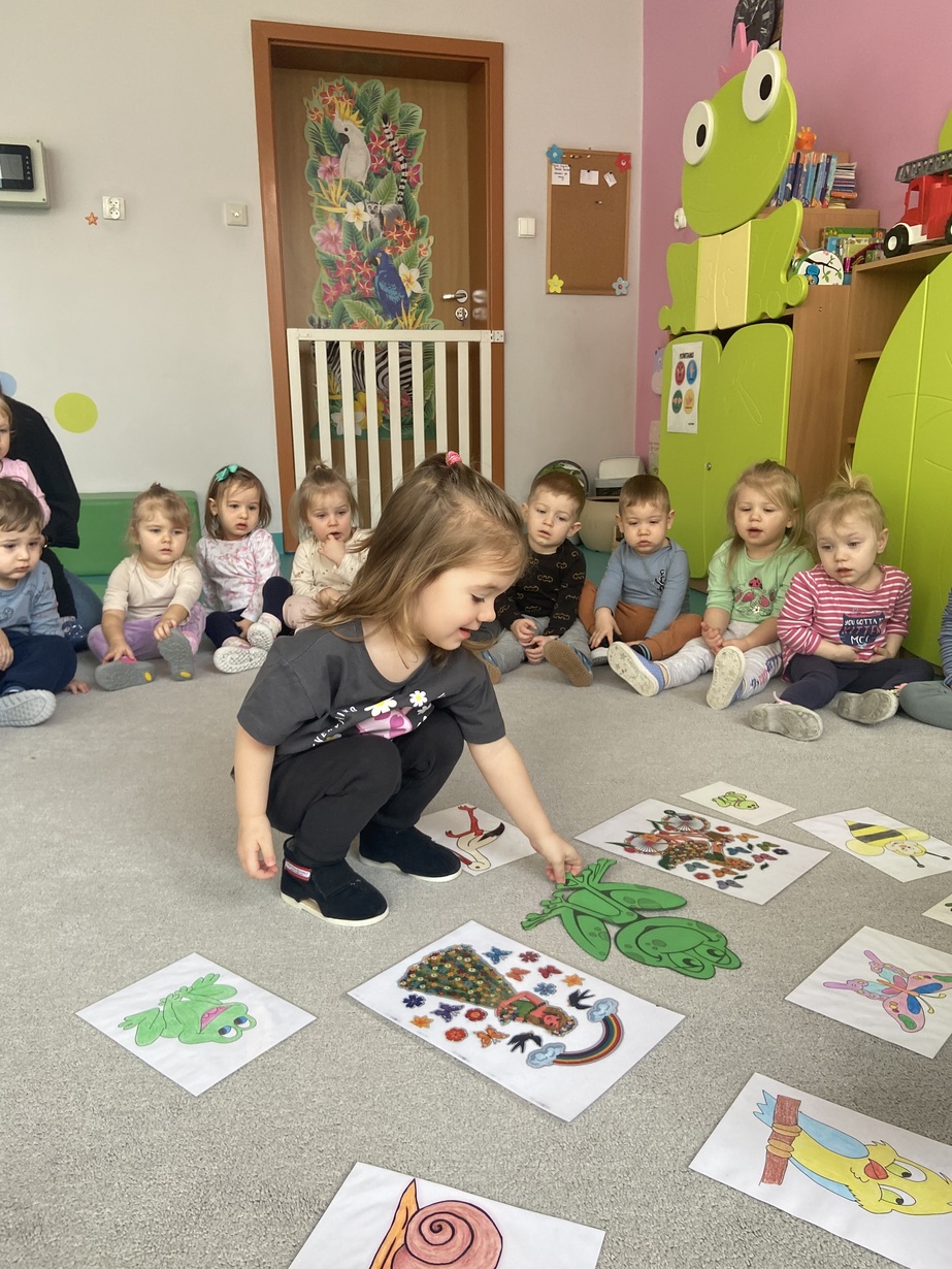 Dzieci z grupy Żabki przywitały wiosnę, słuchały informacji na temat zmian zachodzących w przyrodzie, słuchały piosenek o wiośnie, żabce i bocianie.