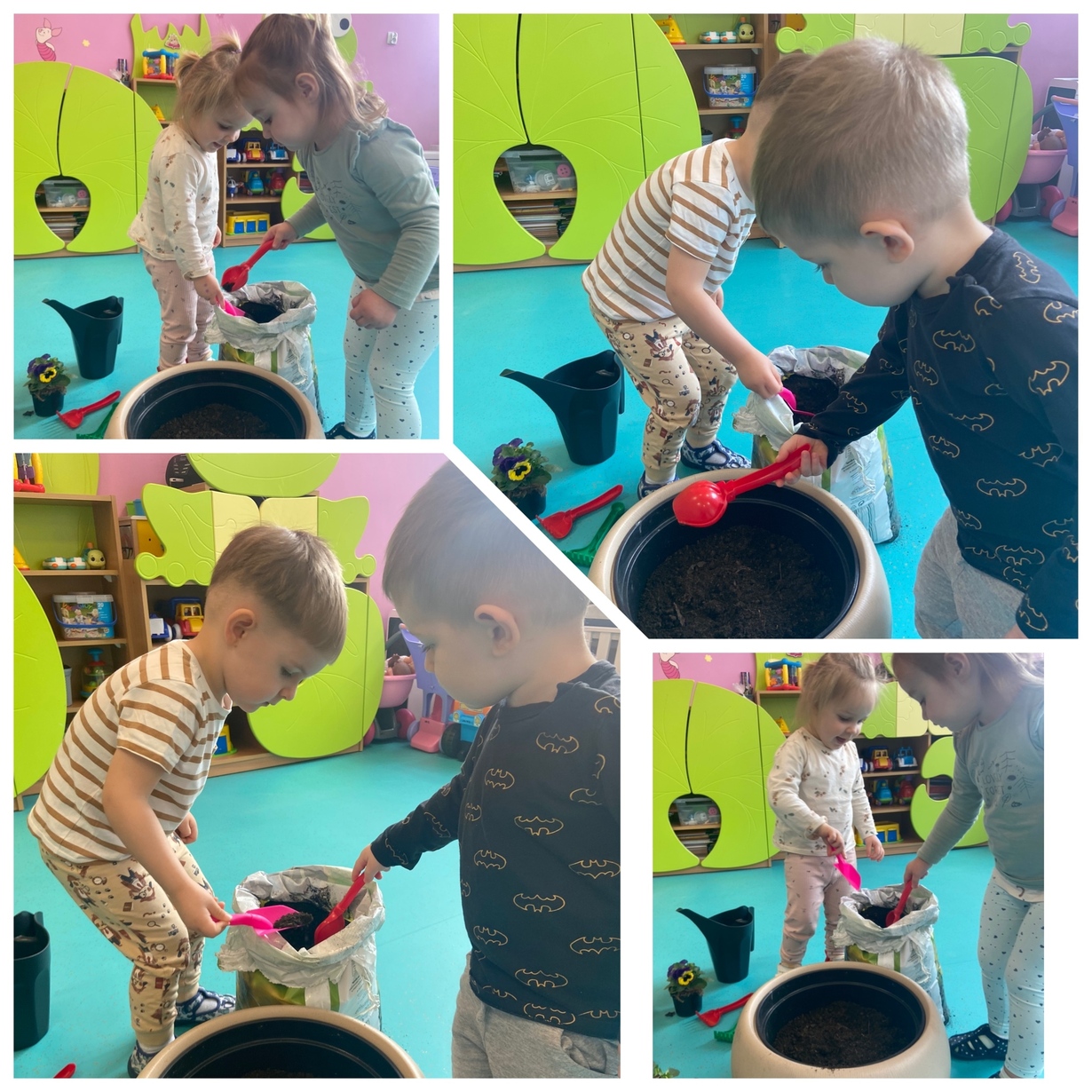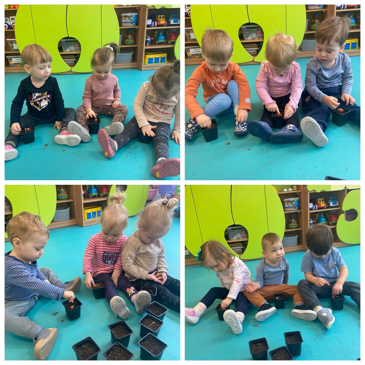 Dzieci razem z opiekunkami sadziły cebulki oraz bratki, które będą zdobiły naszą placówkę.