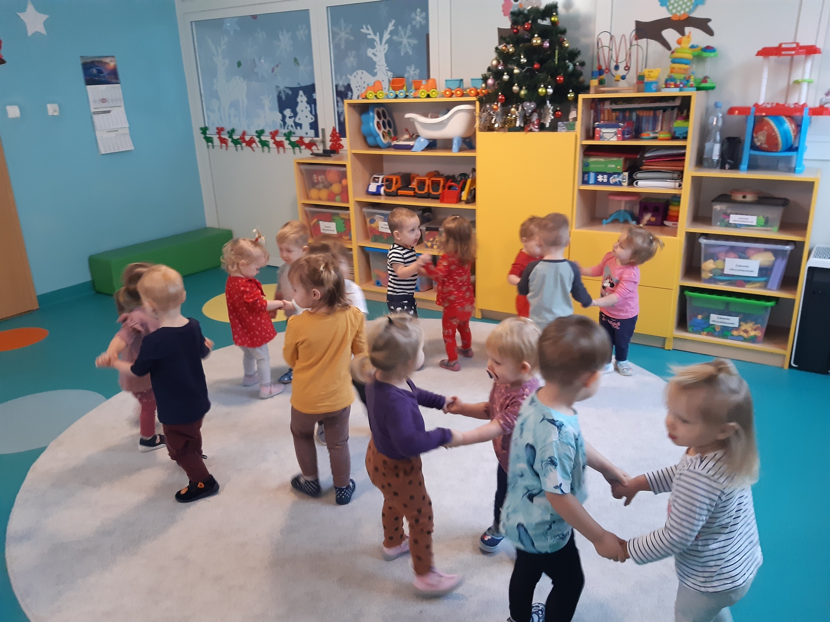 uczyły się świątecznych piosenek oraz kolędowały wraz z paniami opiekunkami.