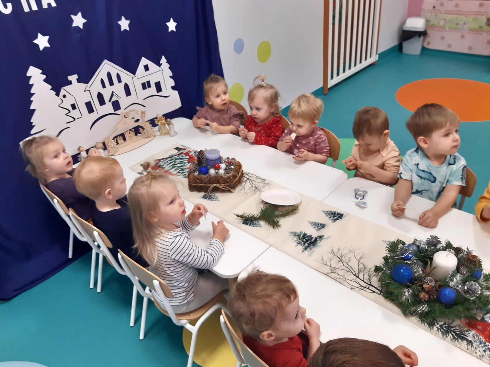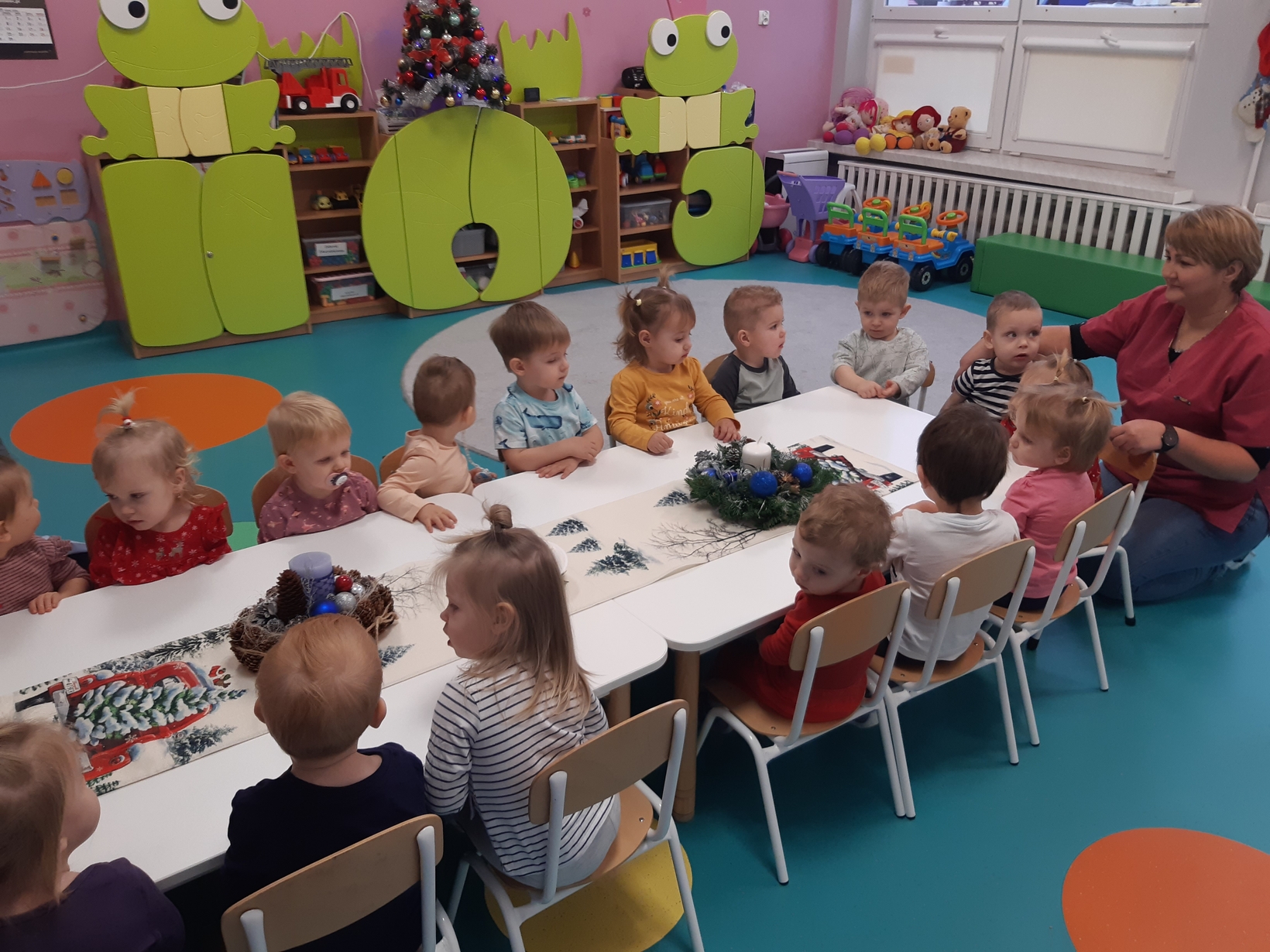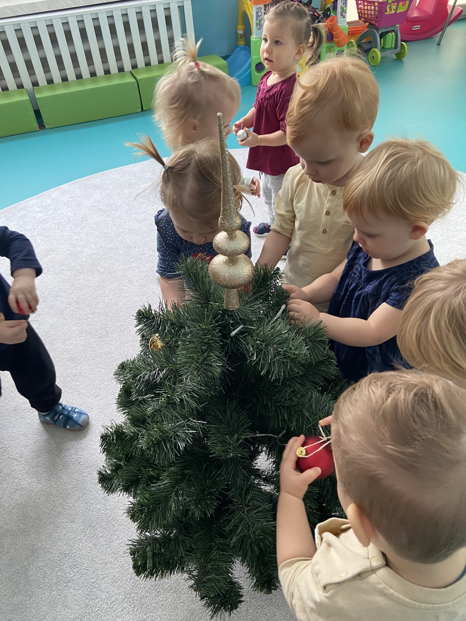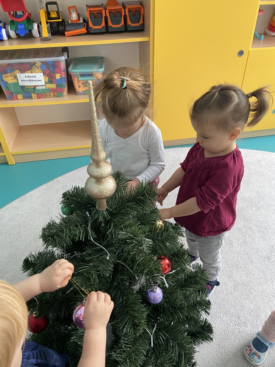 Już na początku grudnia dzieci z tej grupy chętnie pomagały paniom opiekunkom ubierać choinki w kolorowe bombki,