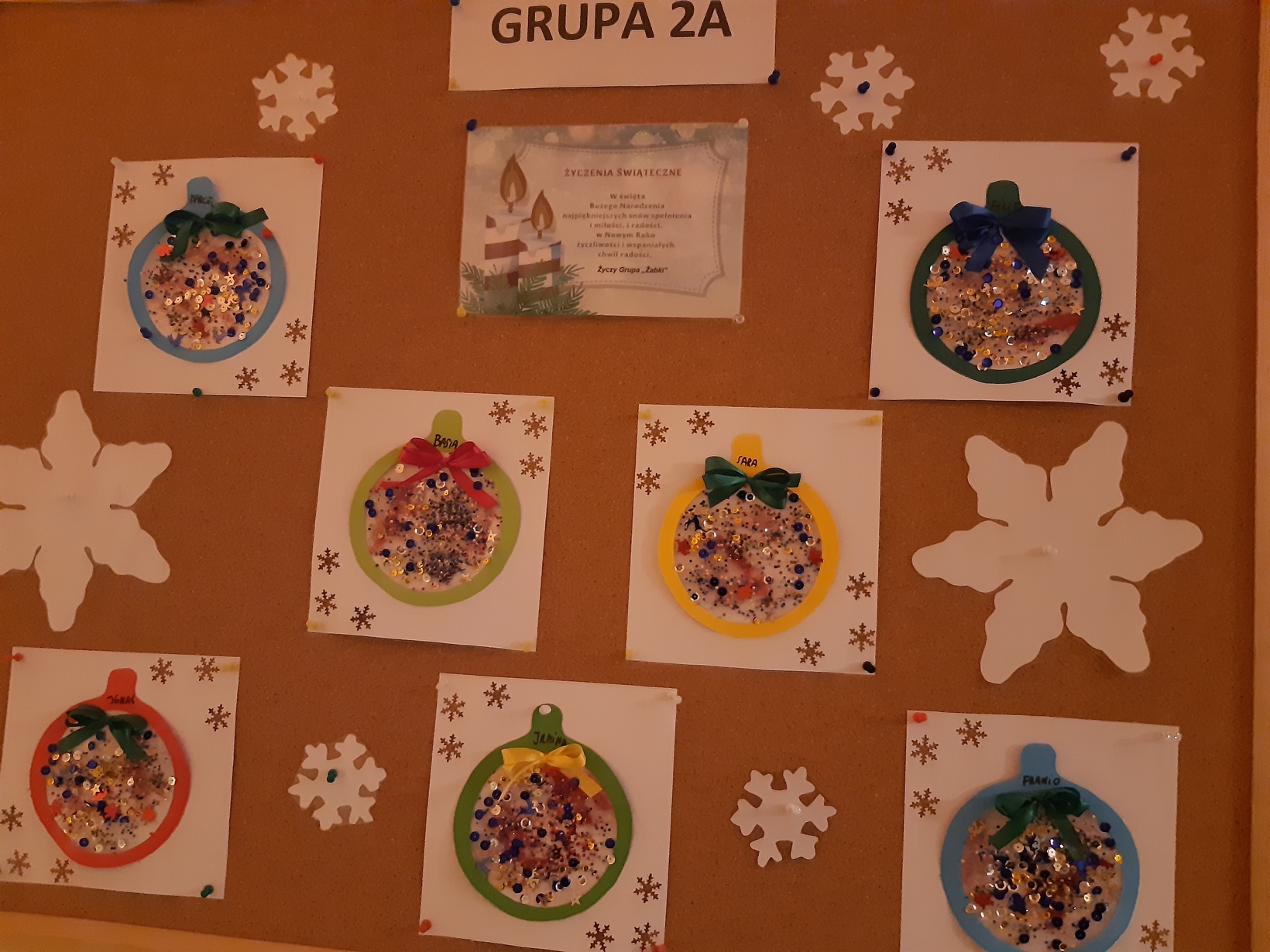 łańcuchy, aniołki, światełka.W ramach zajęć wykonały także pracę plastyczną, której tematem była kolorowa bombka.