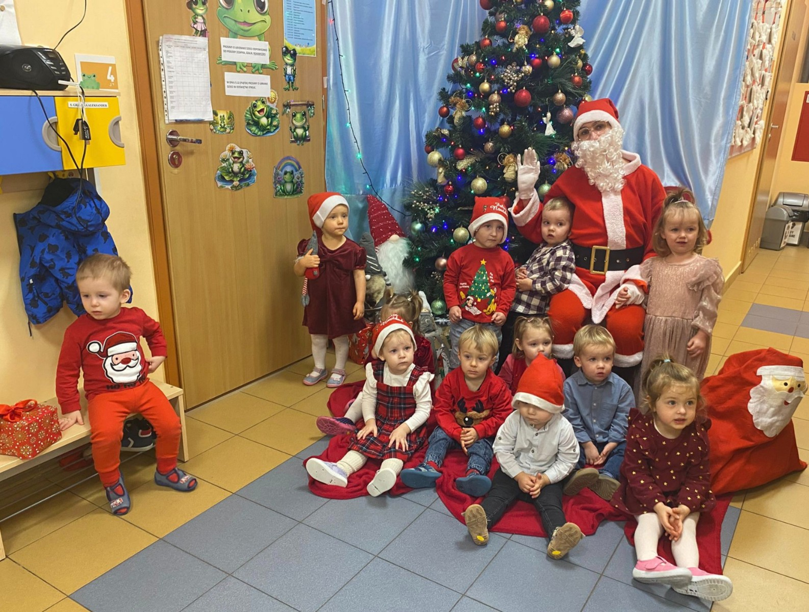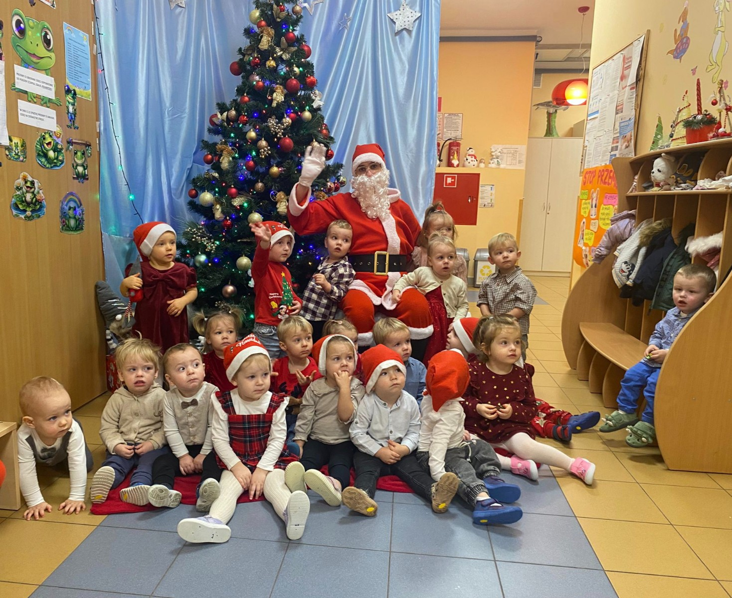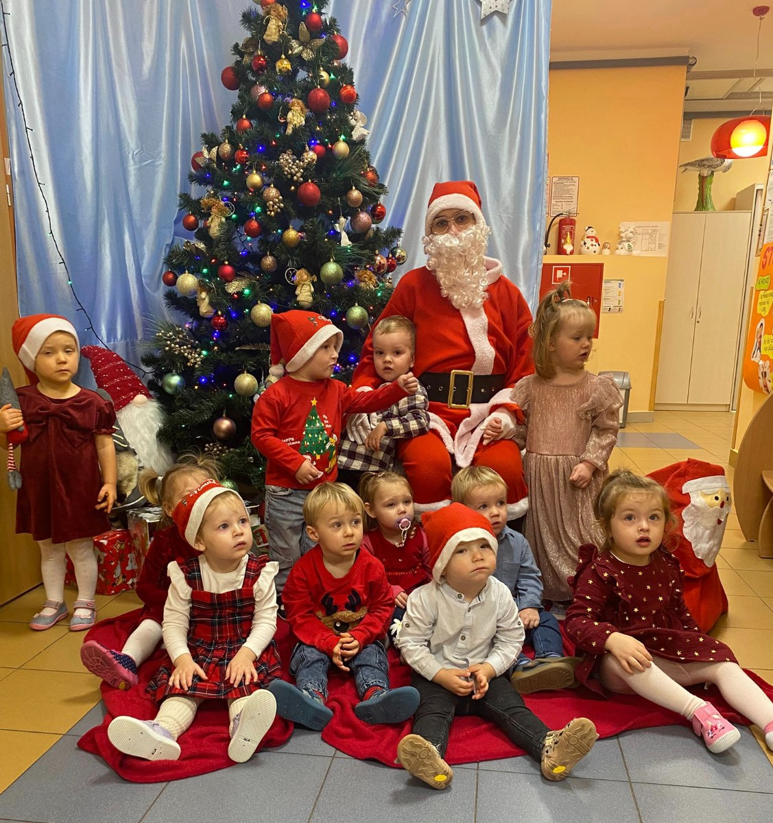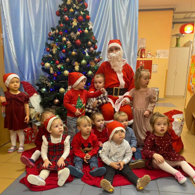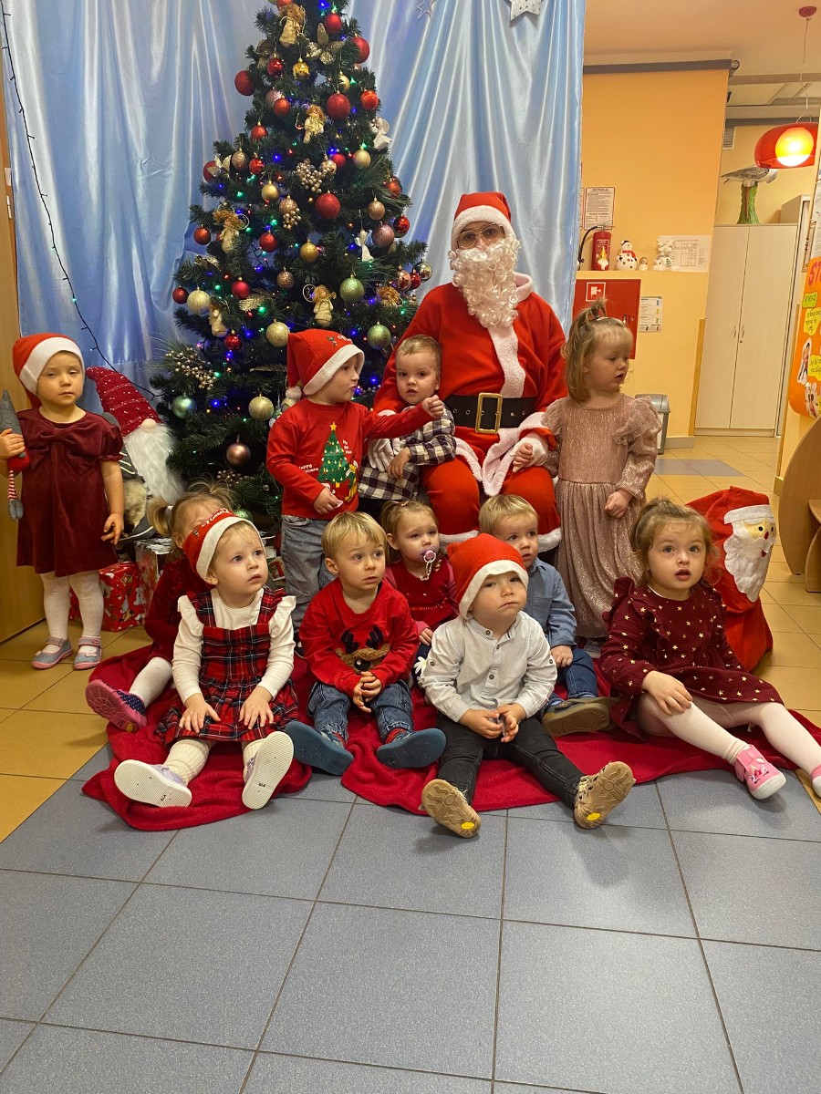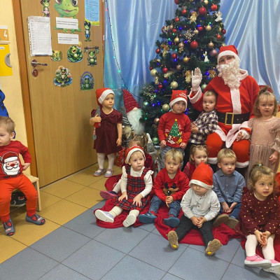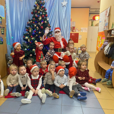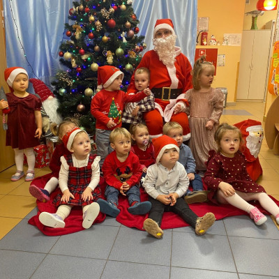 W dniu 5 grudnia w naszym żłobku pojawił się długo oczekiwany gość - Święty Mikołaj. Na jego wizytę dzieci z grupy Żabki cierpliwie czekały.Powitaliśmy Świętego Mikołaja piosenką „Kochany Mikołaj” a także zatańczyliśmy w kółeczku z naszym kochanym Mikołajem gdzie później obdarował wszystkie dzieci pięknymi prezentami. Spotkanie z Mikołajem minęło w bardzo miłej atmosferze i przyniosła dzieciom wiele radości . Cieszymy się, że o nas pamiętał i czekamy na jego wizytę w przyszłym roku.