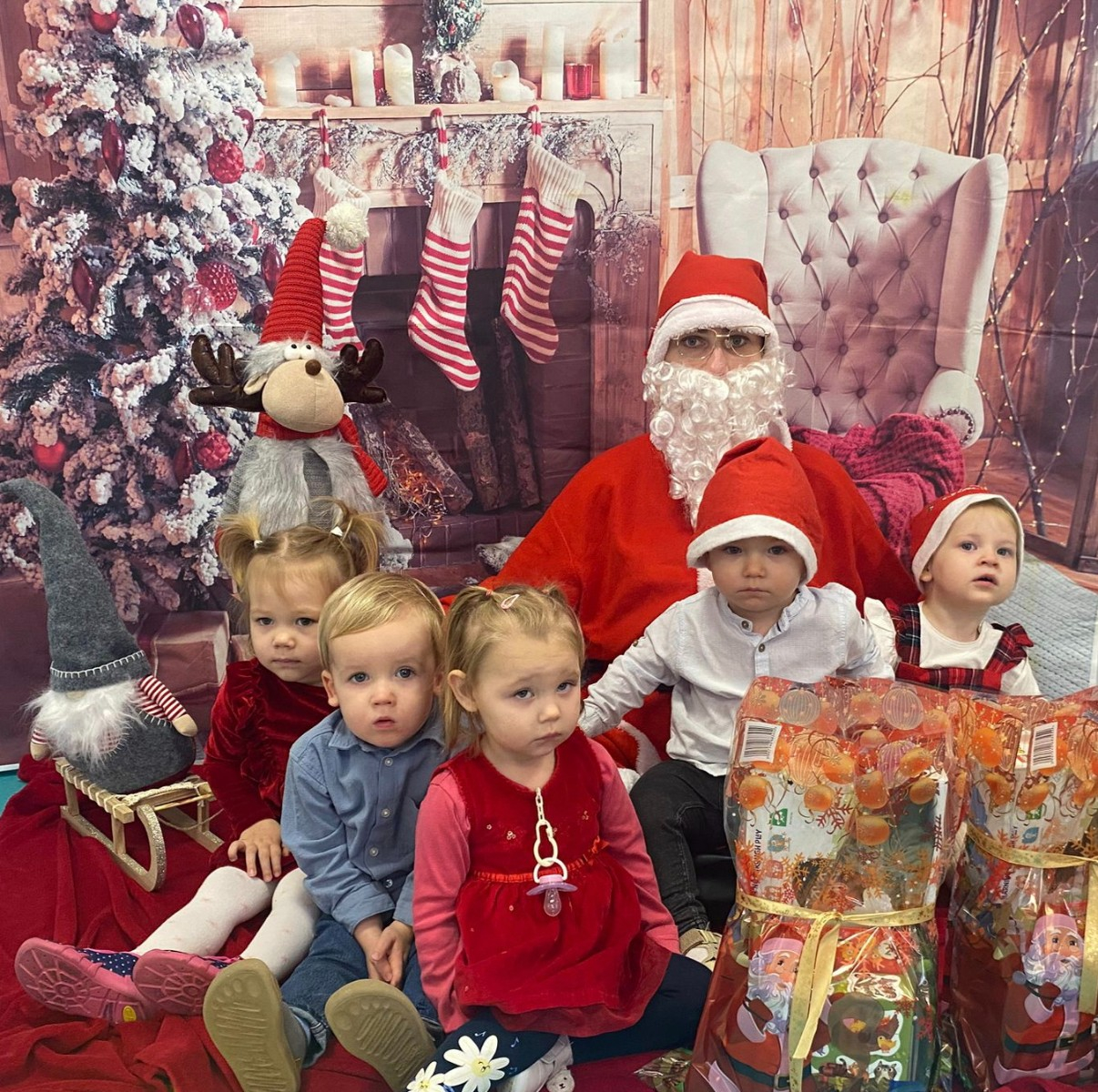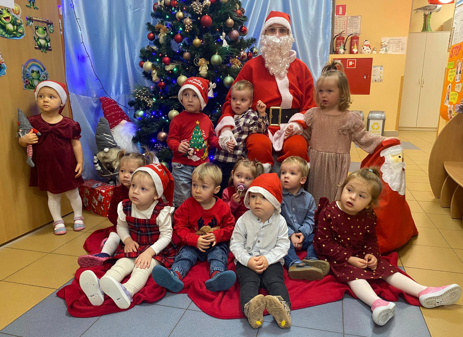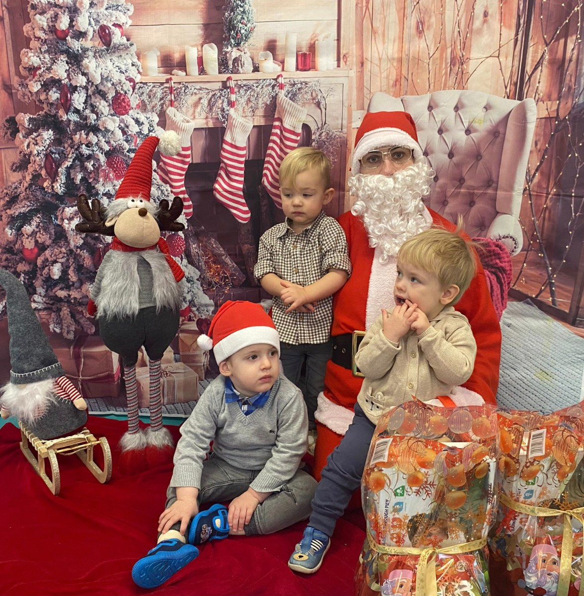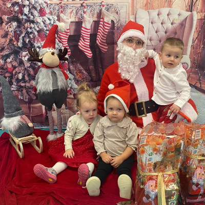 Zdjęcie przedstawiające dzieci w dzień Świętego Mikołaja.