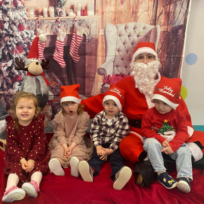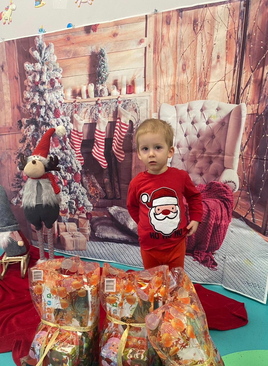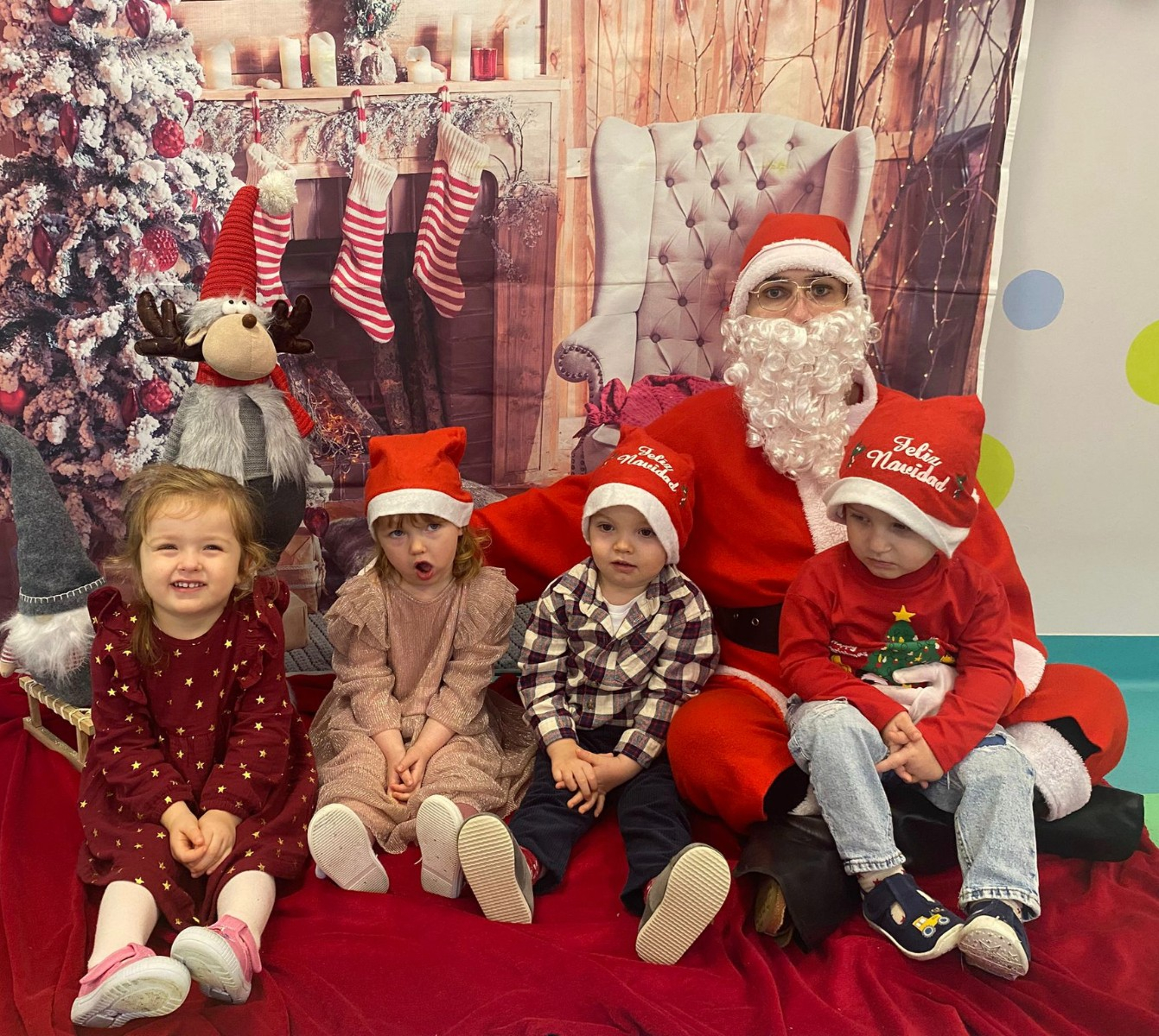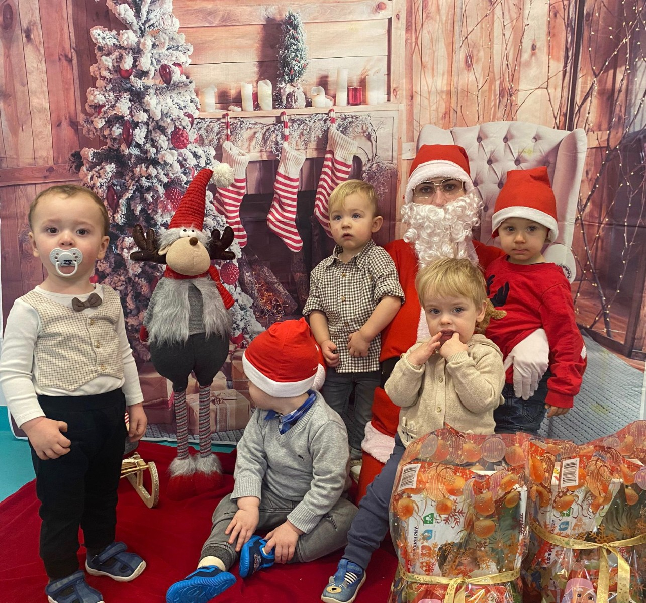 Zdjęcie przedstawiające dzieci w dzień Świętego Mikołaja.