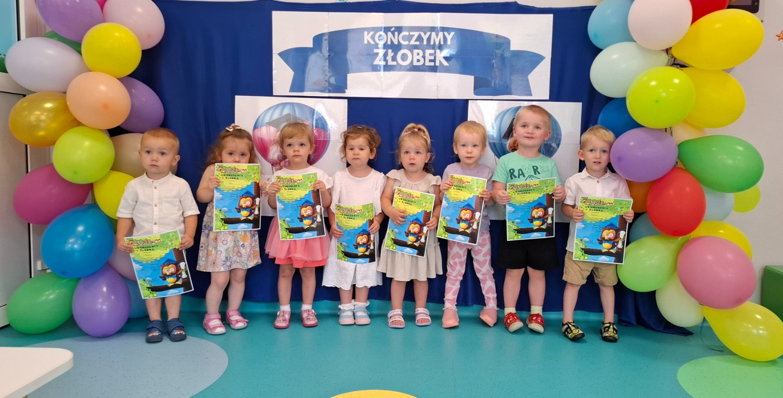 W dniu 25 Czerwca pożegnaliśmy naszych żłobkowiczów, którzy od września nas opuszczają i pójdą do przedszkola.Był to niezapomniany dzień dla nas wszystkich, pełen wzruszeń i uśmiechu.Dziekujemy wszystkim rodzicom i dzieciom, za wspólne spędzone chwilę, za wasz usmiech i radość każdego dnia.Wszystkim naszym dzieciaczkom zyczymy pomyślności oraz powodzenia w przedszkolu.
