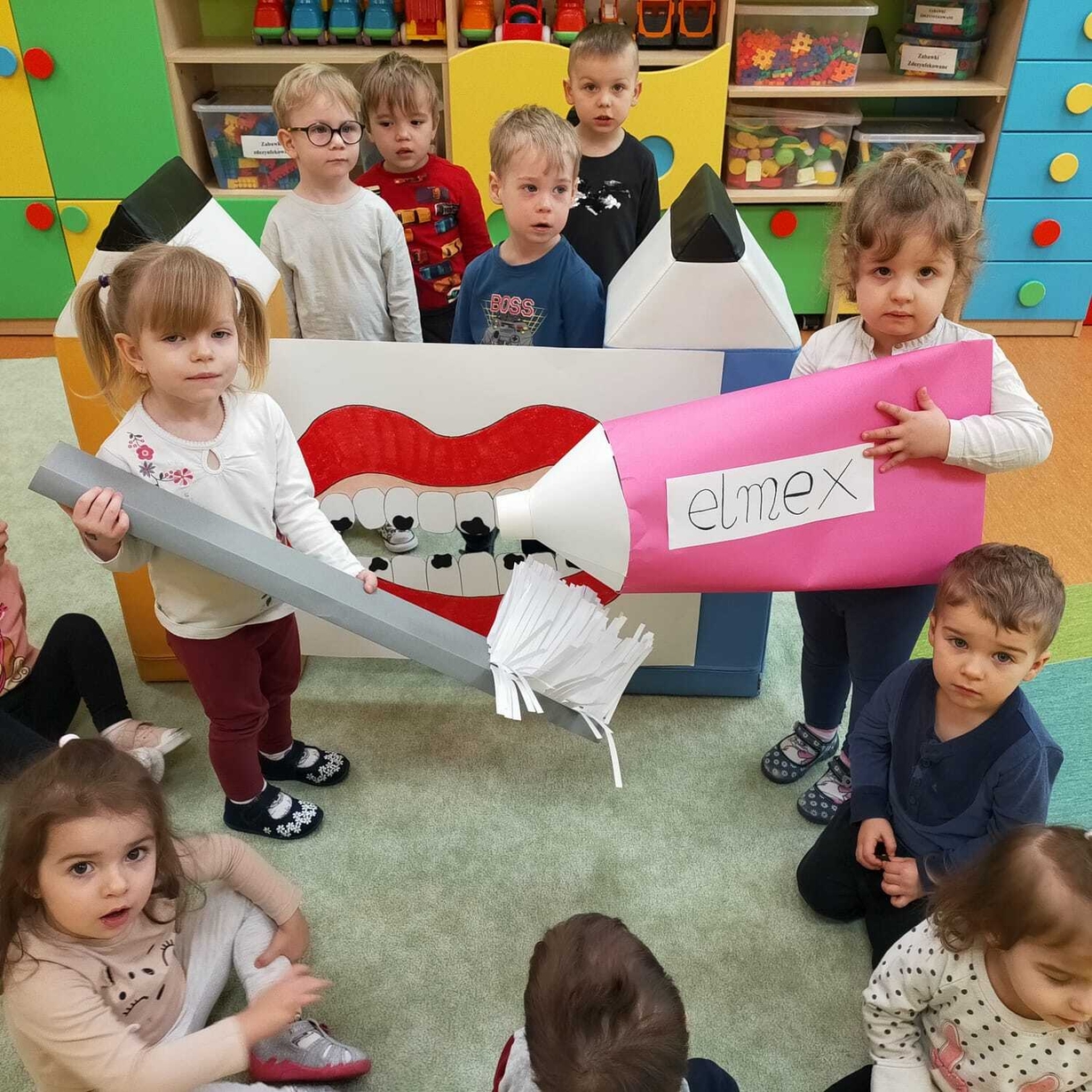 Dnia 3 marca obchodzimy "Dzień Dentysty". Dzieci z grupy Rybek miały okazję dowiedzieć się dziś, jak dbać o higienę jamy ustnej, tak aby ząbki były zawsze zdrowe. Każdy mógł pochwalić się swoimi umiejętnościami praktycznymi, szczotkując ząbki na naszym plakacie. Na zakończenie zajęć każde dziecko "leczyło ząbka" białą plasteliną oraz watą. Dzień ten przyniósł dzieciom wiele radości i wywołał uśmiech na ich twarzach.