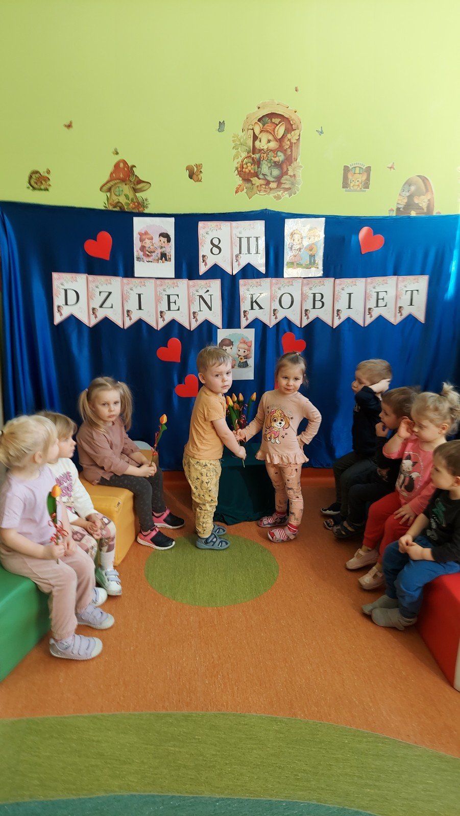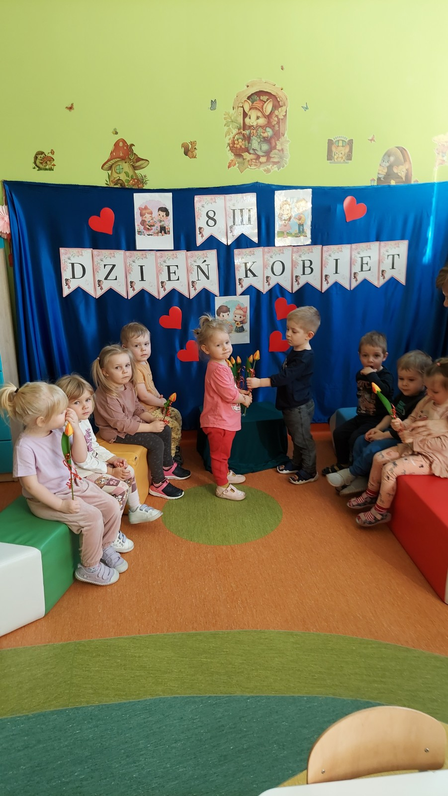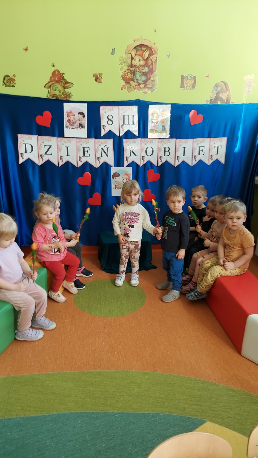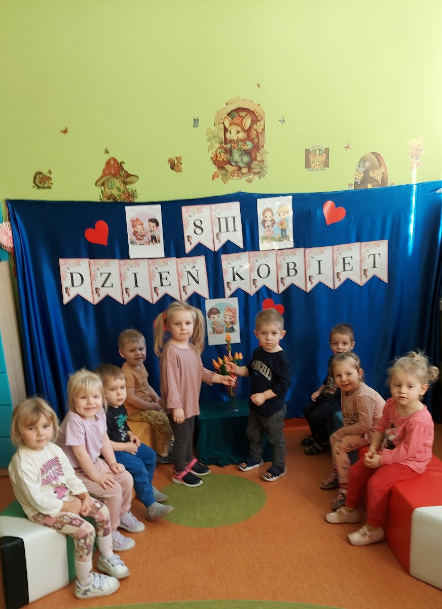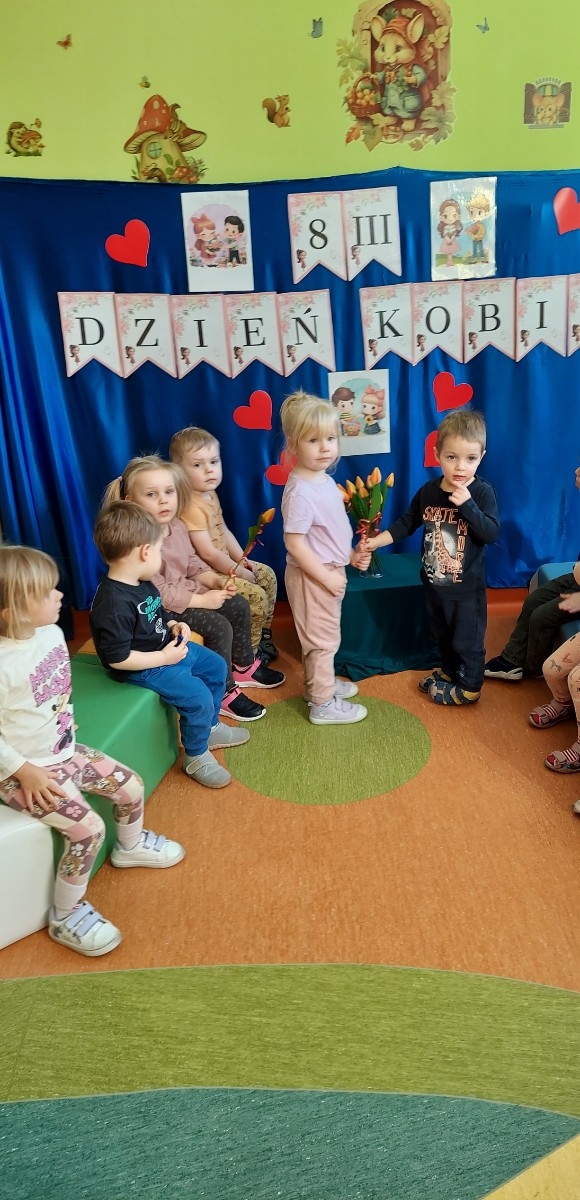 8 marca to wyjątkowy dzień w roku, świeto kobiet zarówno małych jak i dużych. W tym szczególnym dniu wszyscy chłopcy z gr Rybki wreczyli koleżanką kwiaty wraz z życzeniami. Nasze rybki dowiedziały się jak ważne jest okazywanie szacunku i życzliwości każdemu, nie tylko od święta. Wiele radość sprawiły dzieciom zabawy, pokazy mody, kłizy i tańce przygotowane na tą okazję, a także wykonanie pracy plastycznej, które ozdobily naszą żłobkową tablice.