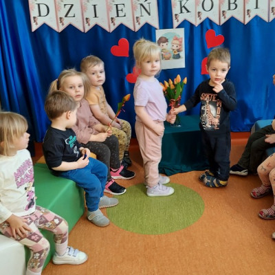 Zdjęcie przedstawia dzieci uczestniczące w zajęciach z okazji Dnia Kobiet