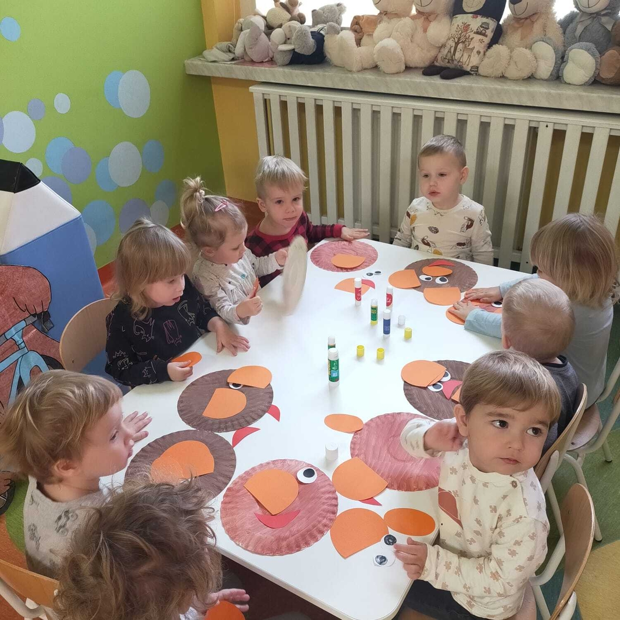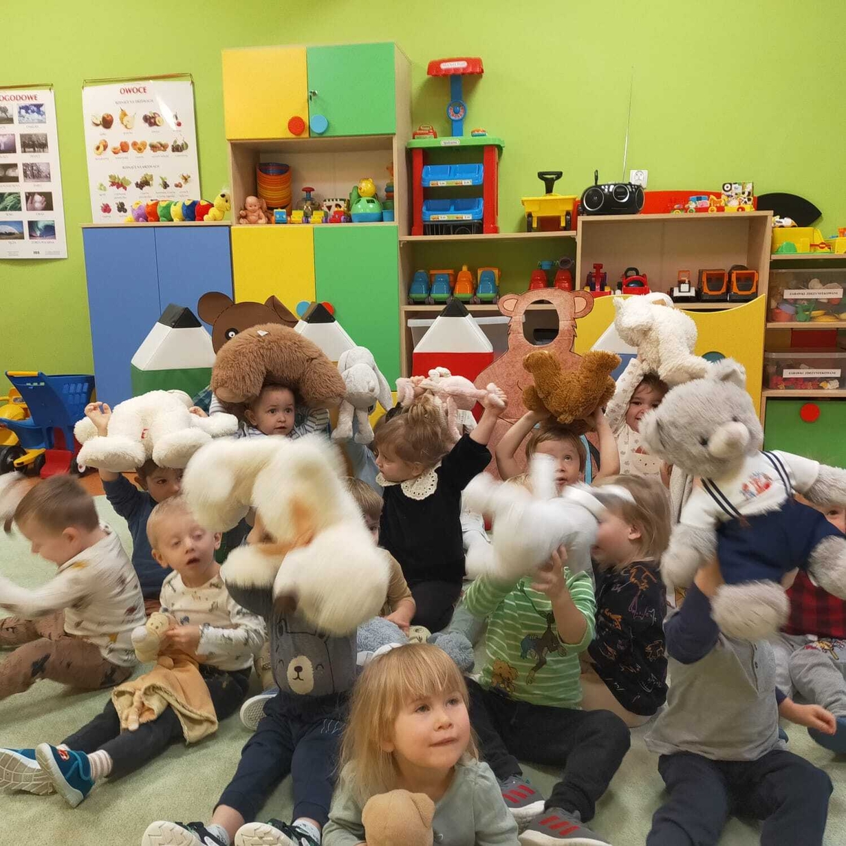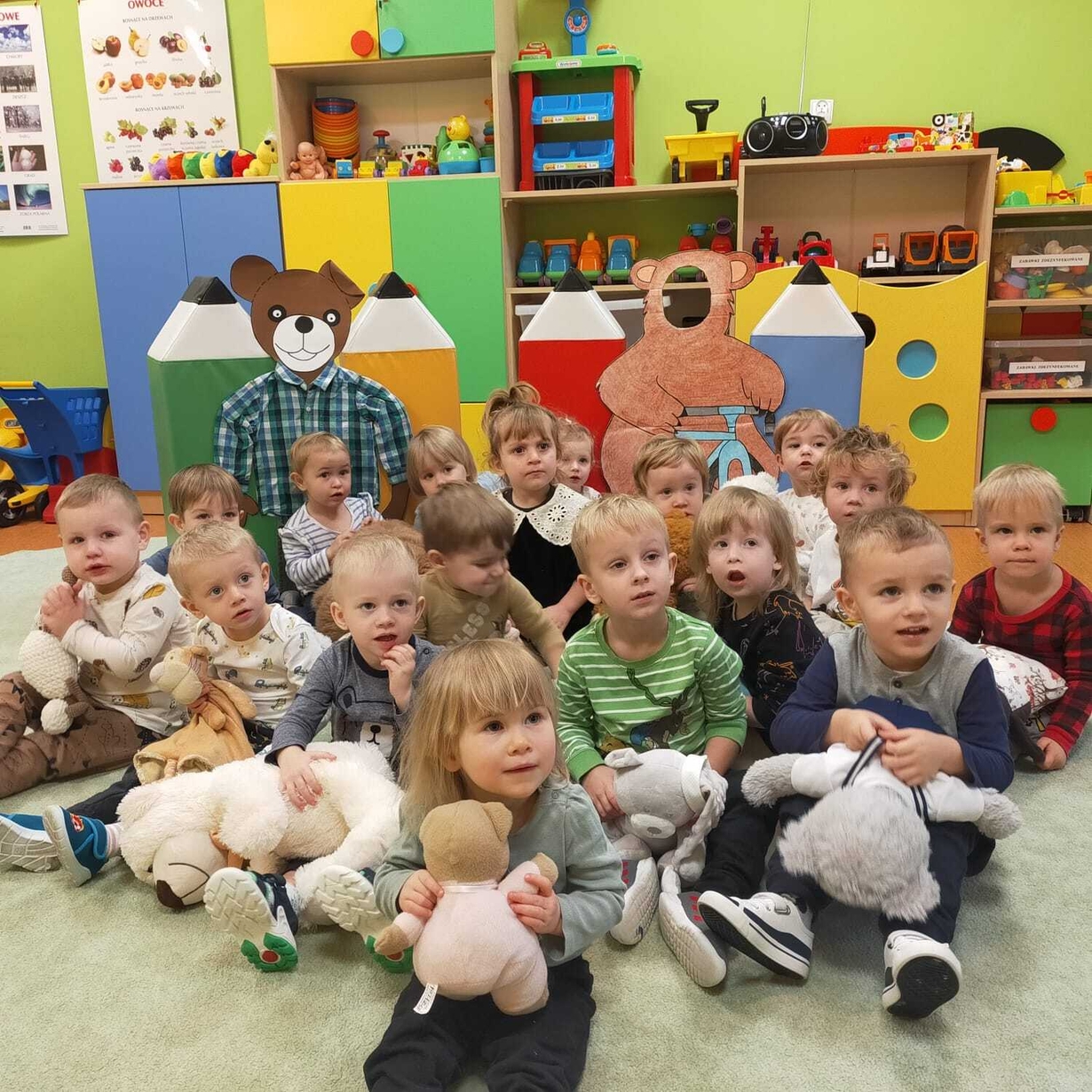 Pluszowy Miś to najlepszy przyjaciel każdego dziecka, ukochana maskotkana dobre i złe chwile. Z tej okazji w dniu 23.11 2023 w grupie Rybek, dzieci brały udział w obchodach "Światowego Dnia Pluszowego Misia". Każde dziecko przyniosło swojego pluszowego przyjaciela. W tym dniu czekało na nich wiele atrakcji. Zostały zaproszone do wspólnej zabawy ze swoimi Misiami i bawiły się do znanych, misiowych przebojów oraz próbowały nakarmić Misia plastrami miodu. Na zakończenie wykonały piękne prace plastyczne.