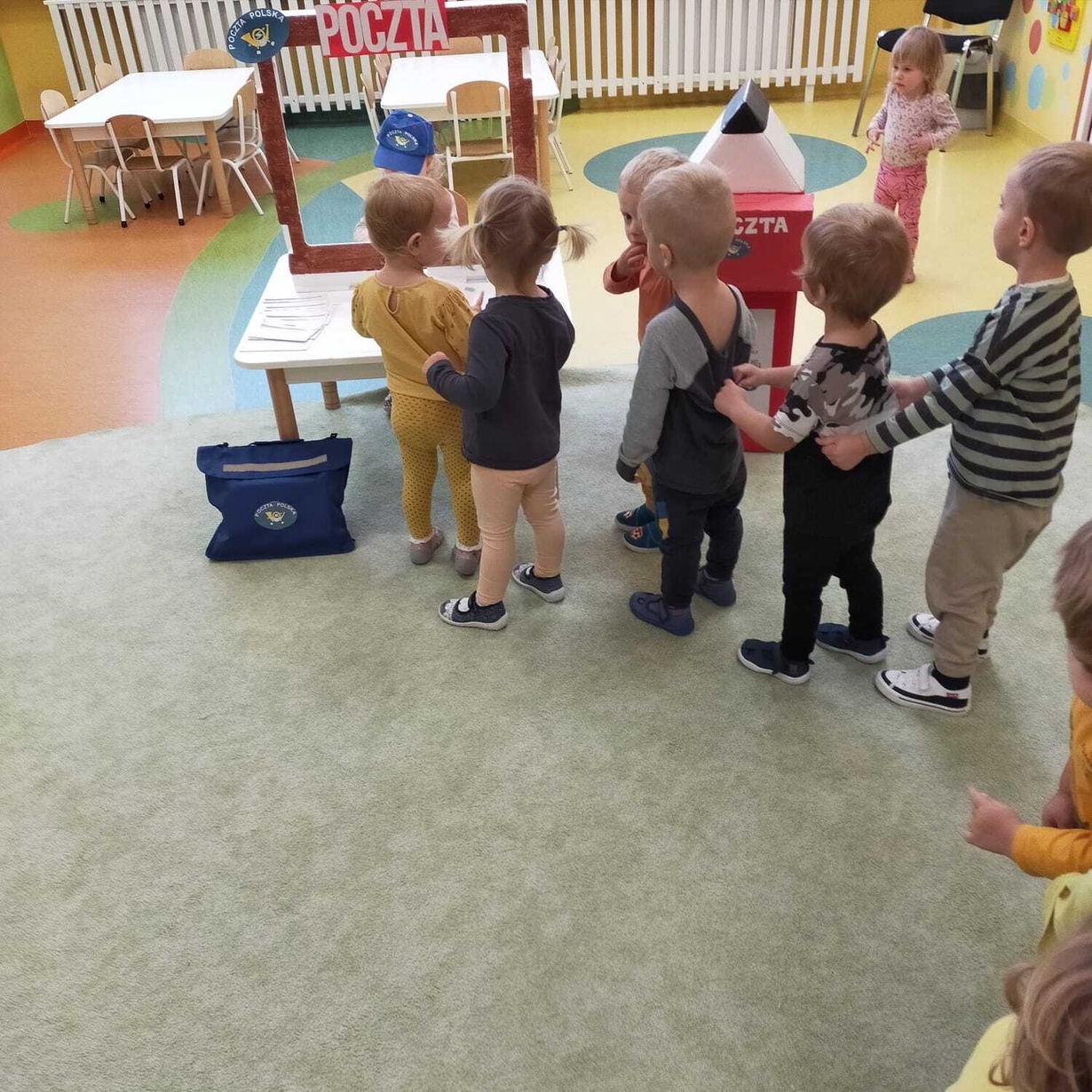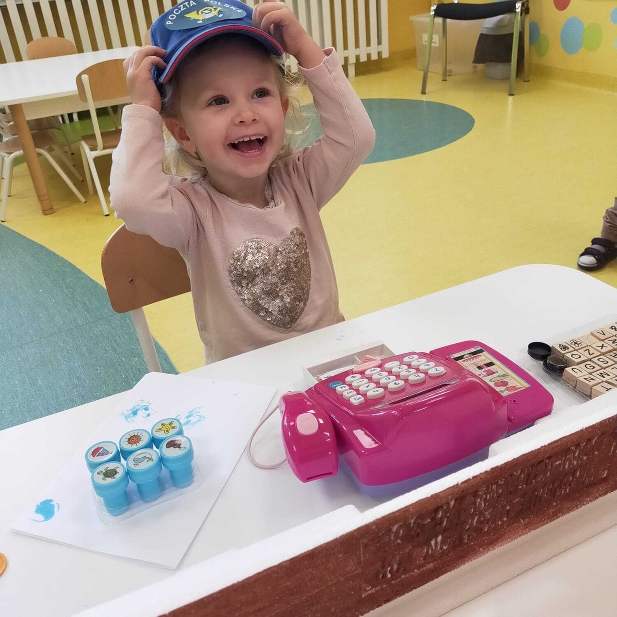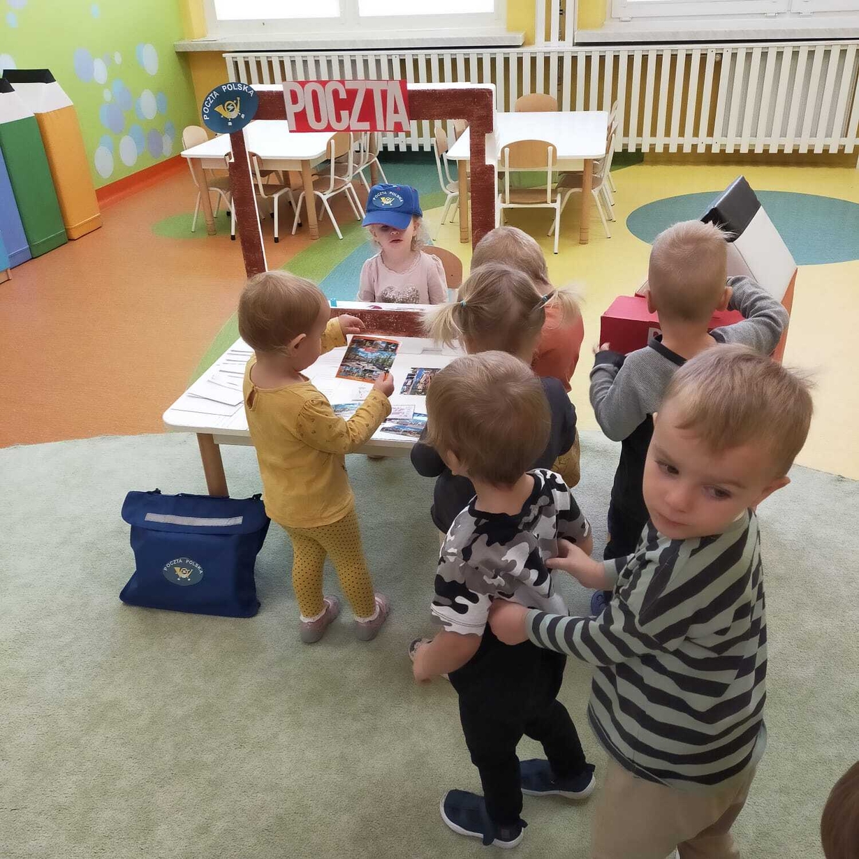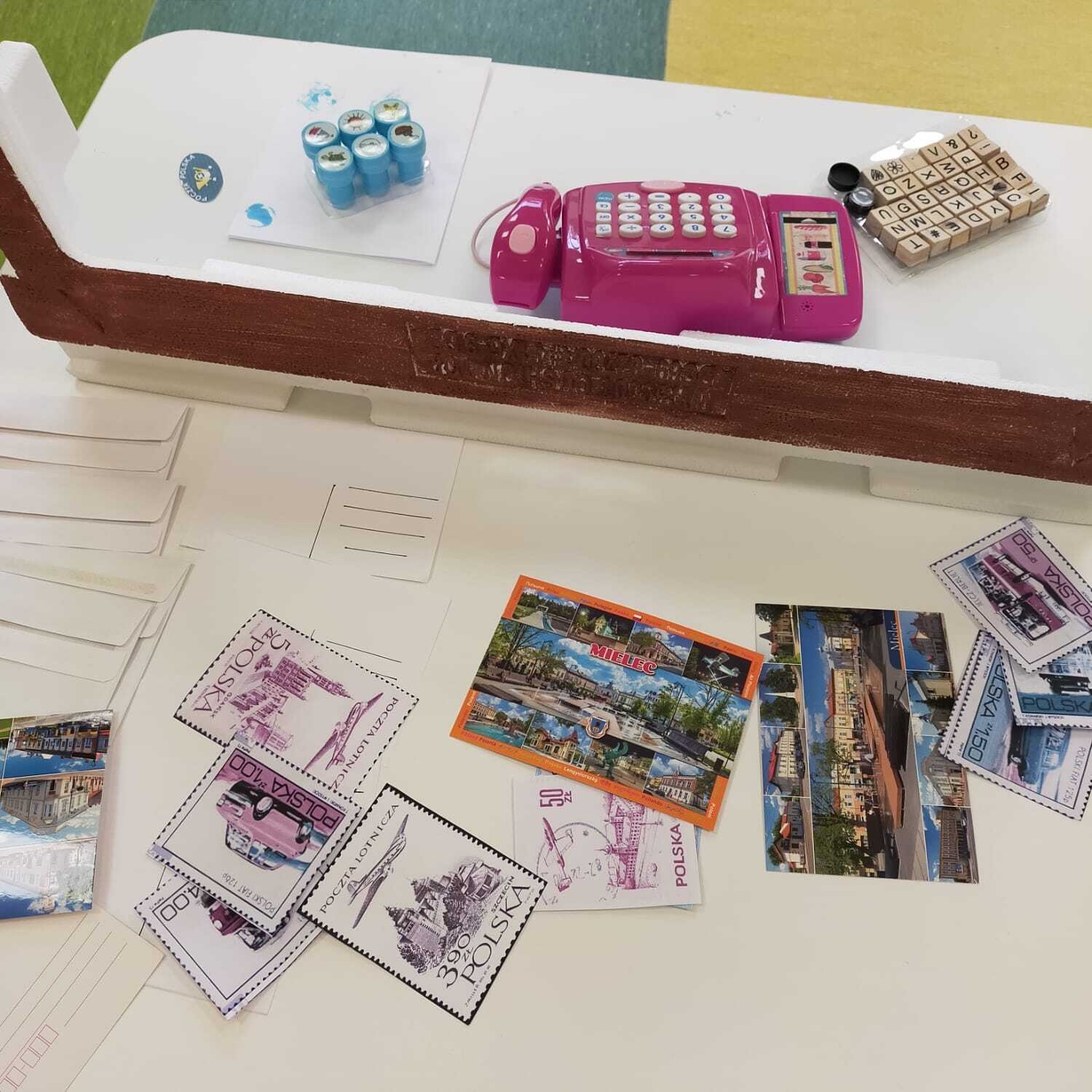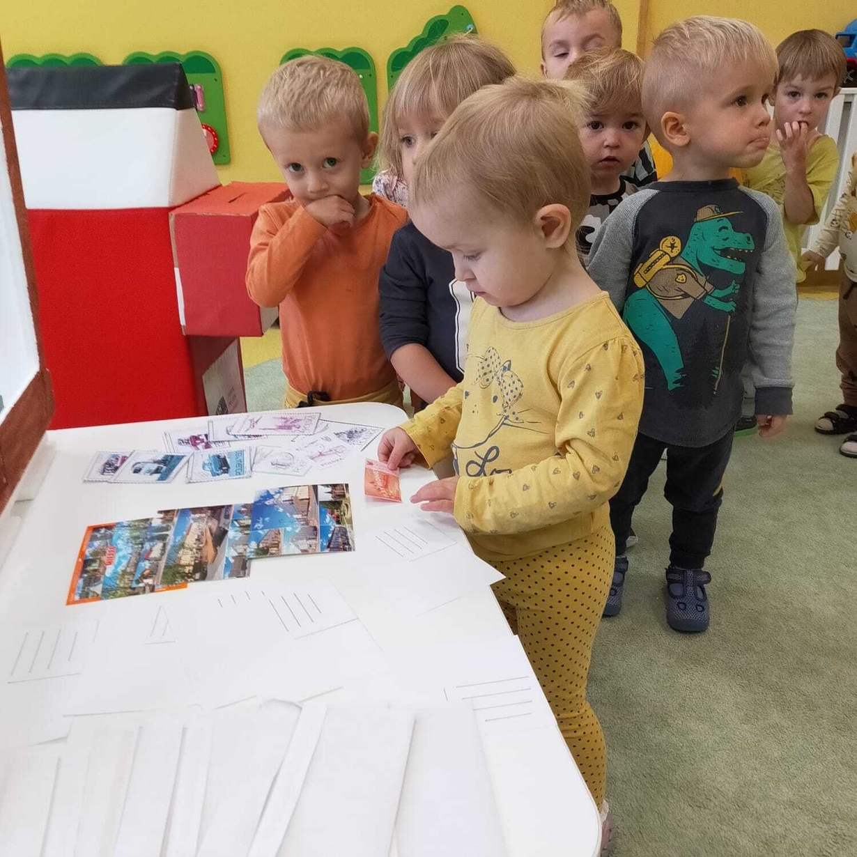 18 października obchodziliśmy Dzień Poczty Polskiej oraz Dzień Listonosza. Z tej okazji dzieci z grupy Rybek uczestniczyły w zajęciach, podczas których poznały zawód listonosza i jego obowiązki. Wybraliśmy się na zaaranżowaną pocztę i wcieliliśmy się w rolę listonosza. Na koniec dzieci z radością same zaprojektowały swój znaczek pocztowy i w ramach wrzucały listy do skrzynki.