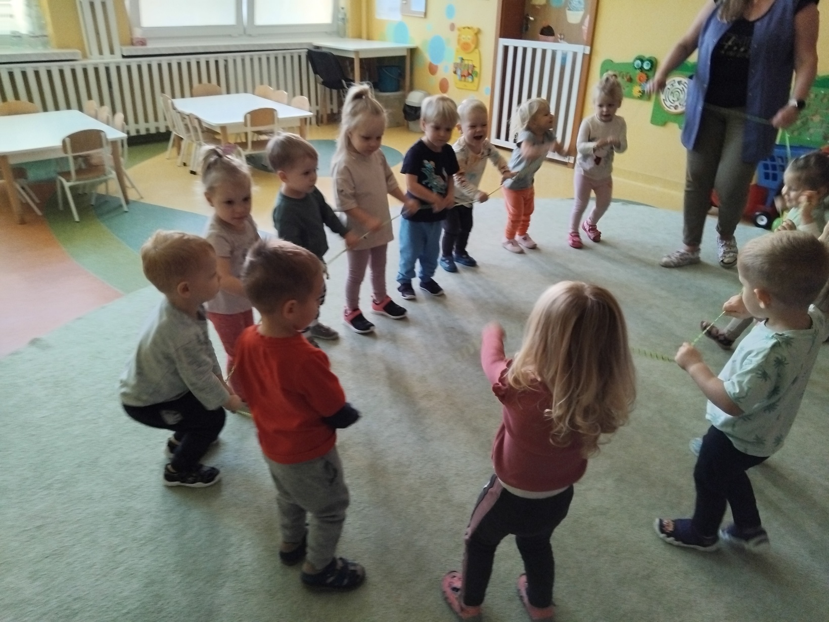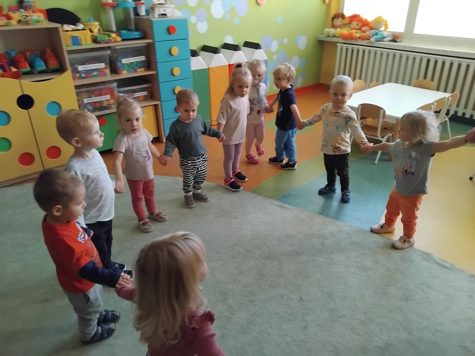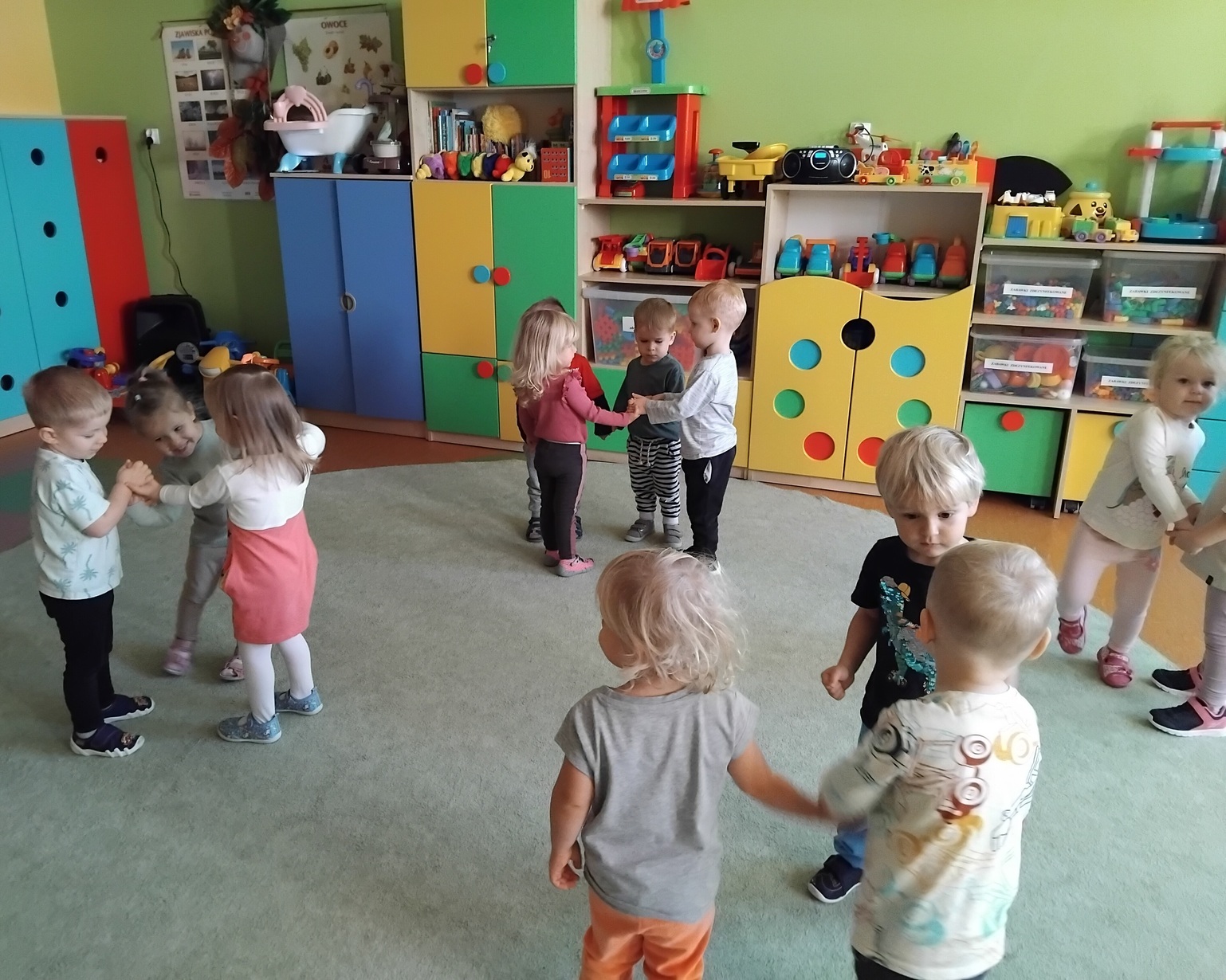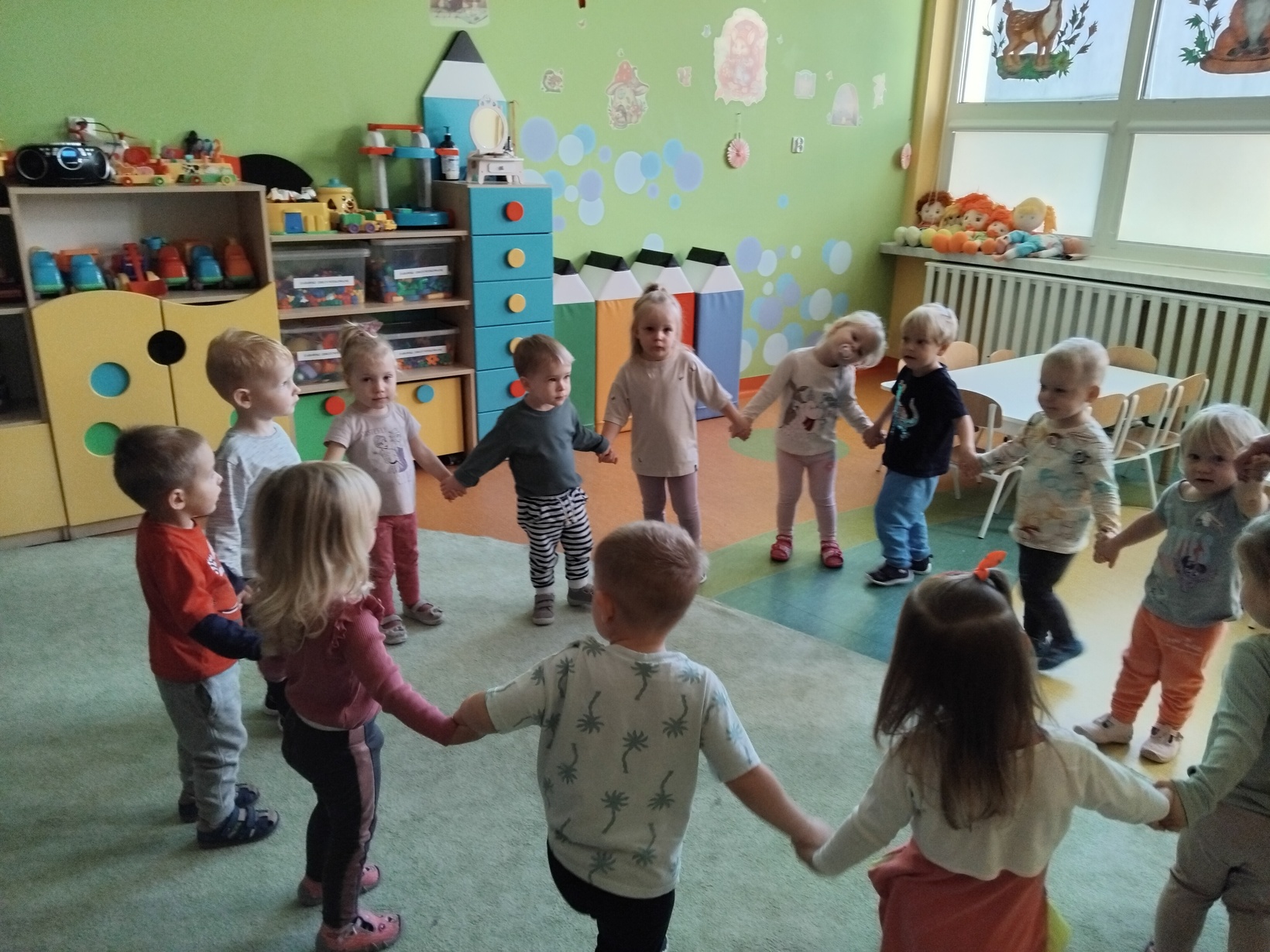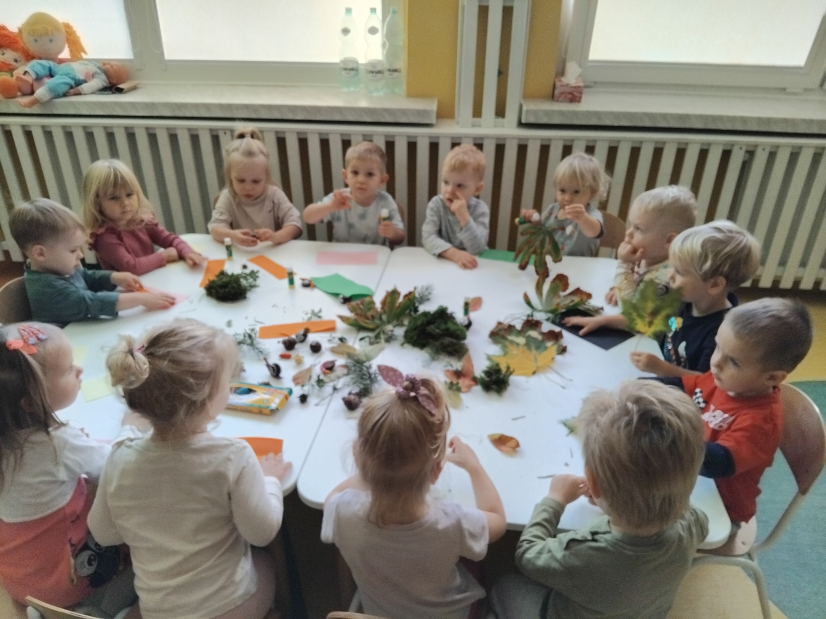 Jesienna aura zachęca do spacerów i podziwiania zmian zachodzących w przyrodzie. Dzieci z grupy Rybki wykorzystując słoneczną pogodę wybrały się wraz z opiekunkami na spacer, który był połączeniem przyjemnego z pożytecznym. Na spacerze dzieci zbierały kolorowe liście i kasztany. Po powrocie do żłobka z zebranych darów jesieni przy użyciu plasteliny, kleju i kolorowego papieru wykonały śmieszne kasztanowe zwierzątka. Nasze zajęcia zakończyliśmy wspólnymi tańcami do piosenek o tematyce jesiennej.Zapraszamy do galerii zdjęć.
