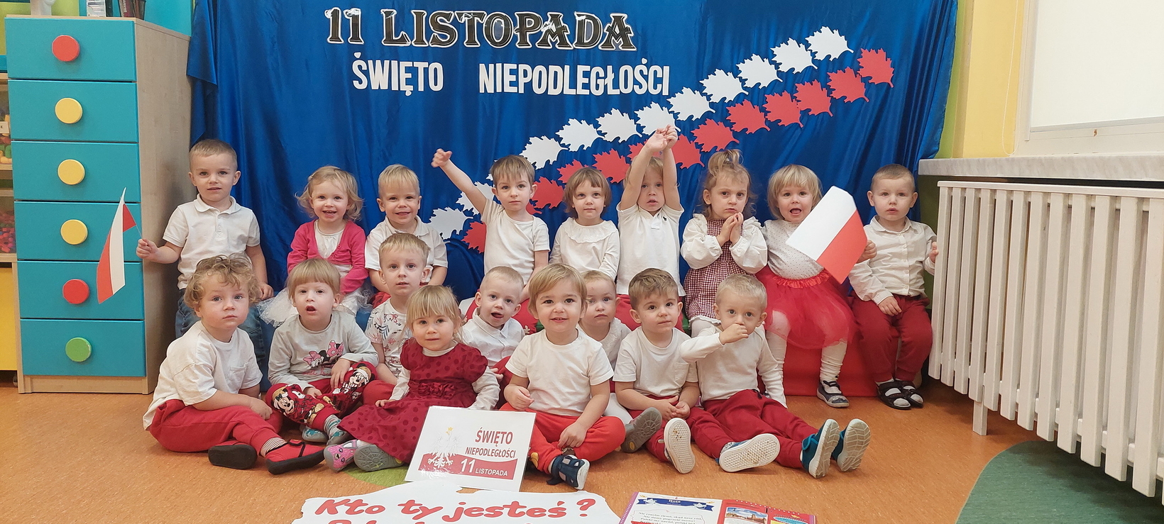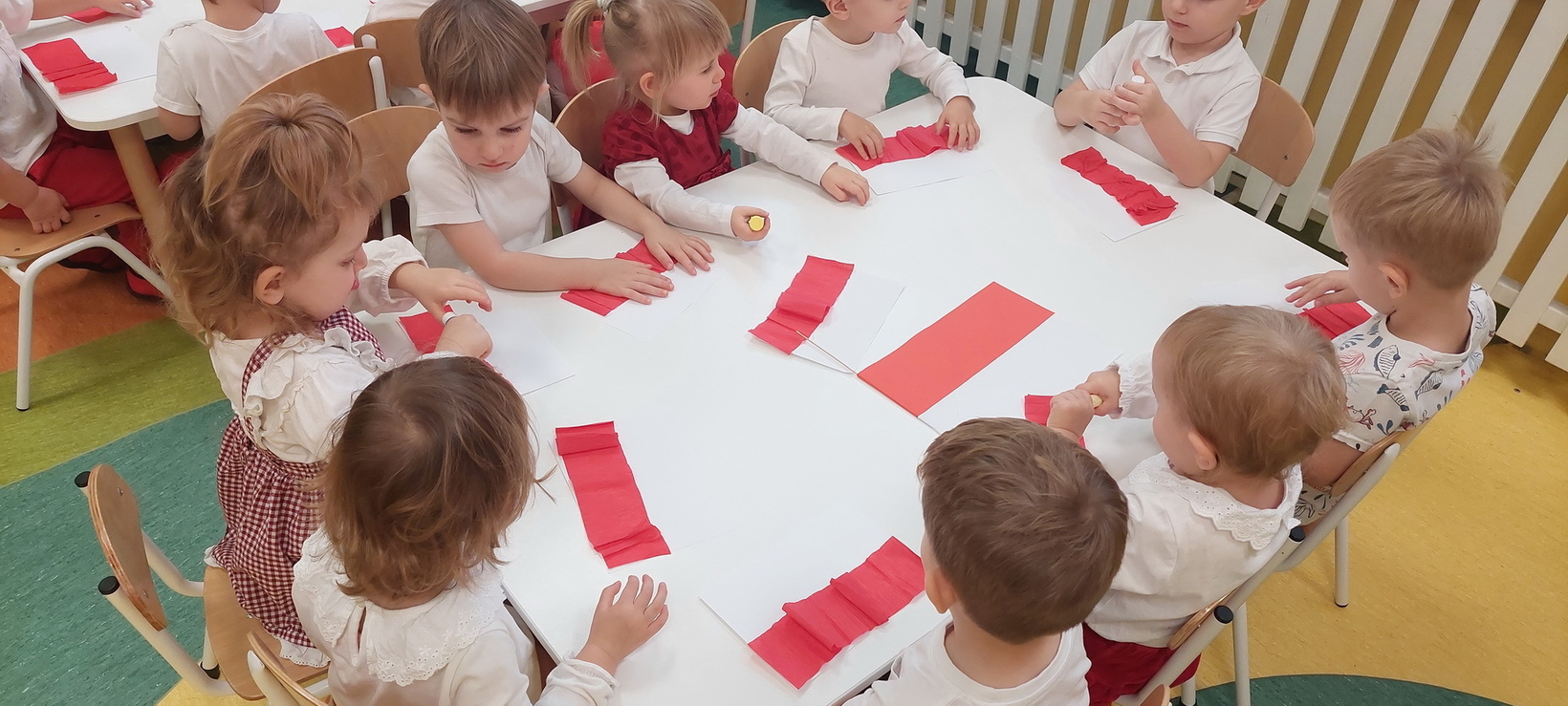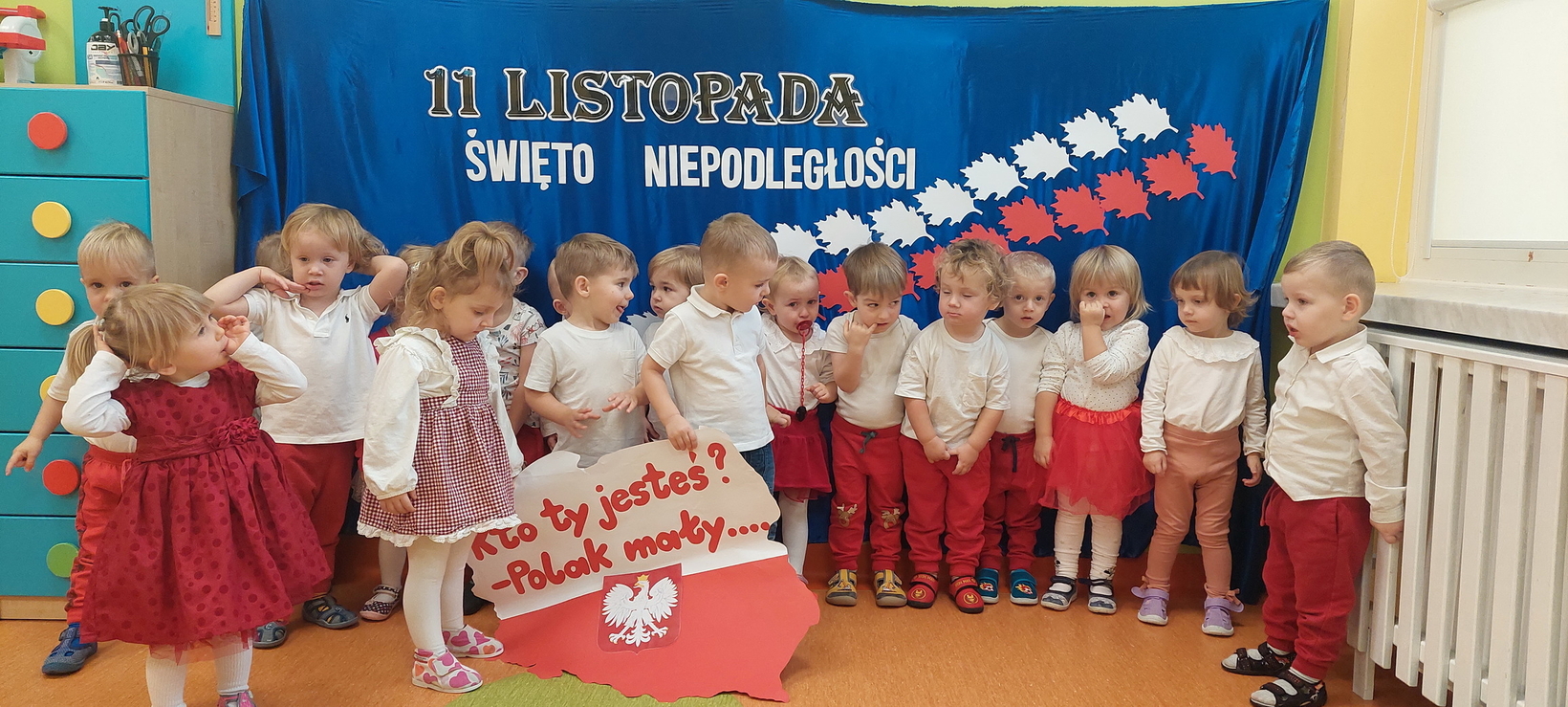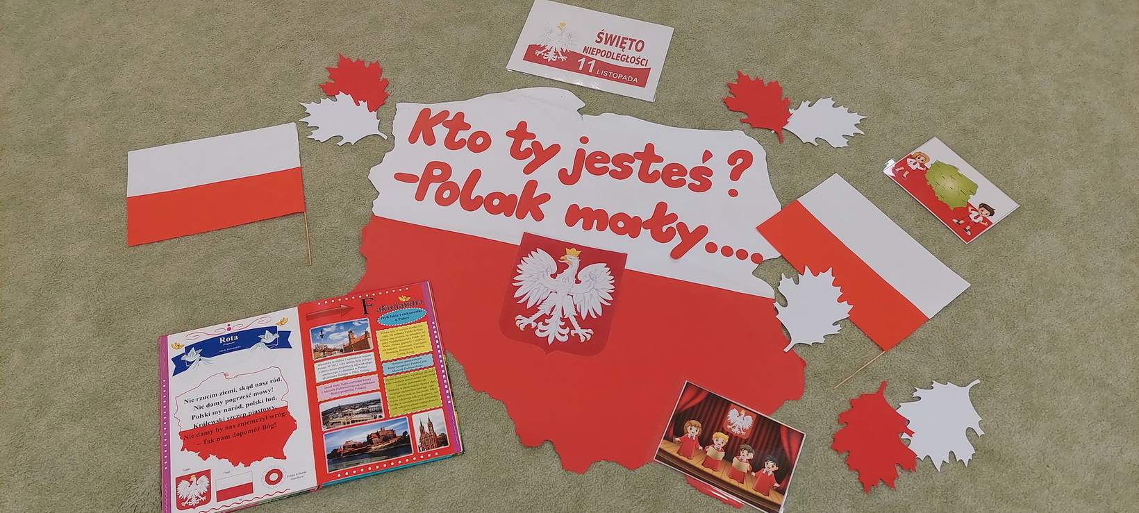 Dzisiaj w grupie starszaków świętowaliśmy Narodowe Święto Niepodległości. Głównym celem tej uroczystości było kształtowanie przywiązania do kraju ojczystego, jego kultury i tradycji. Dzięki udziałowi w tego typu uroczystościach dzieci od najmłodszych lat uczą się patriotyzmu, kształtują pozytywne postawy i uczucia patriotyczne. Dzieci zapoznały się z symbolami narodowymi oraz wykonały pracę plastyczną.