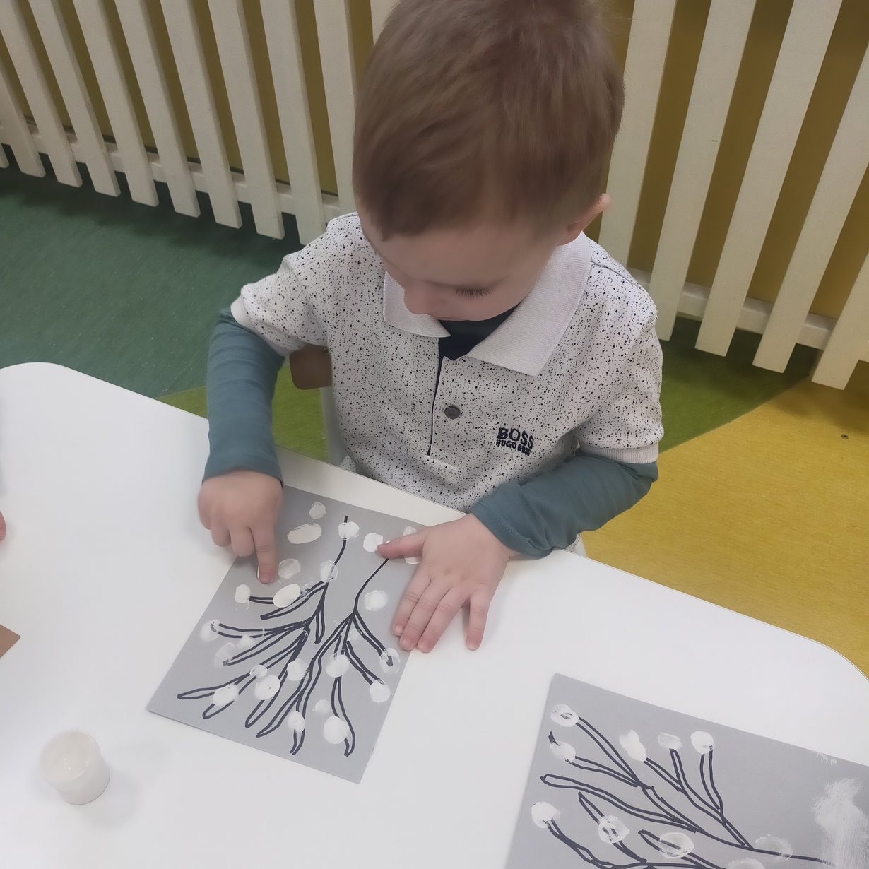Choć za oknem brakuje nam śniegu, dzieci z grupy Rybki mają ochotę powspominać tę piękną porę roku.
