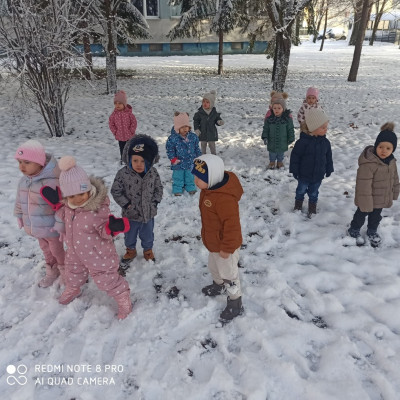 W dniu dzisiejszym dzieci z Grupy 3 Rybki wybrały się na zimowy spacer .