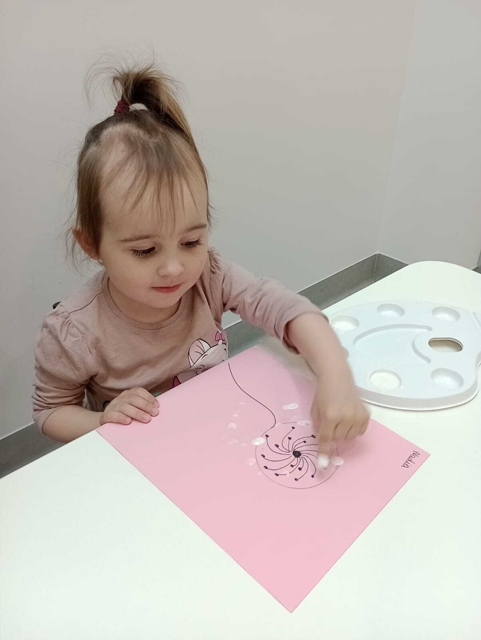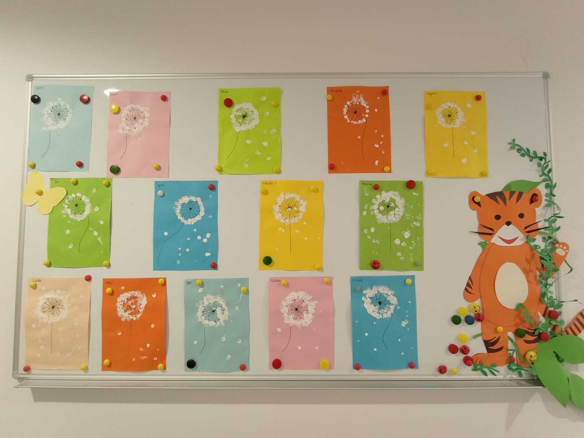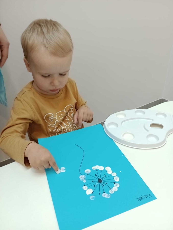 Nasi żłobkowicze bardzo lubią zajęcia plastyczne. Tym razem Tygryski wykonały piękne białe dmuchawce.