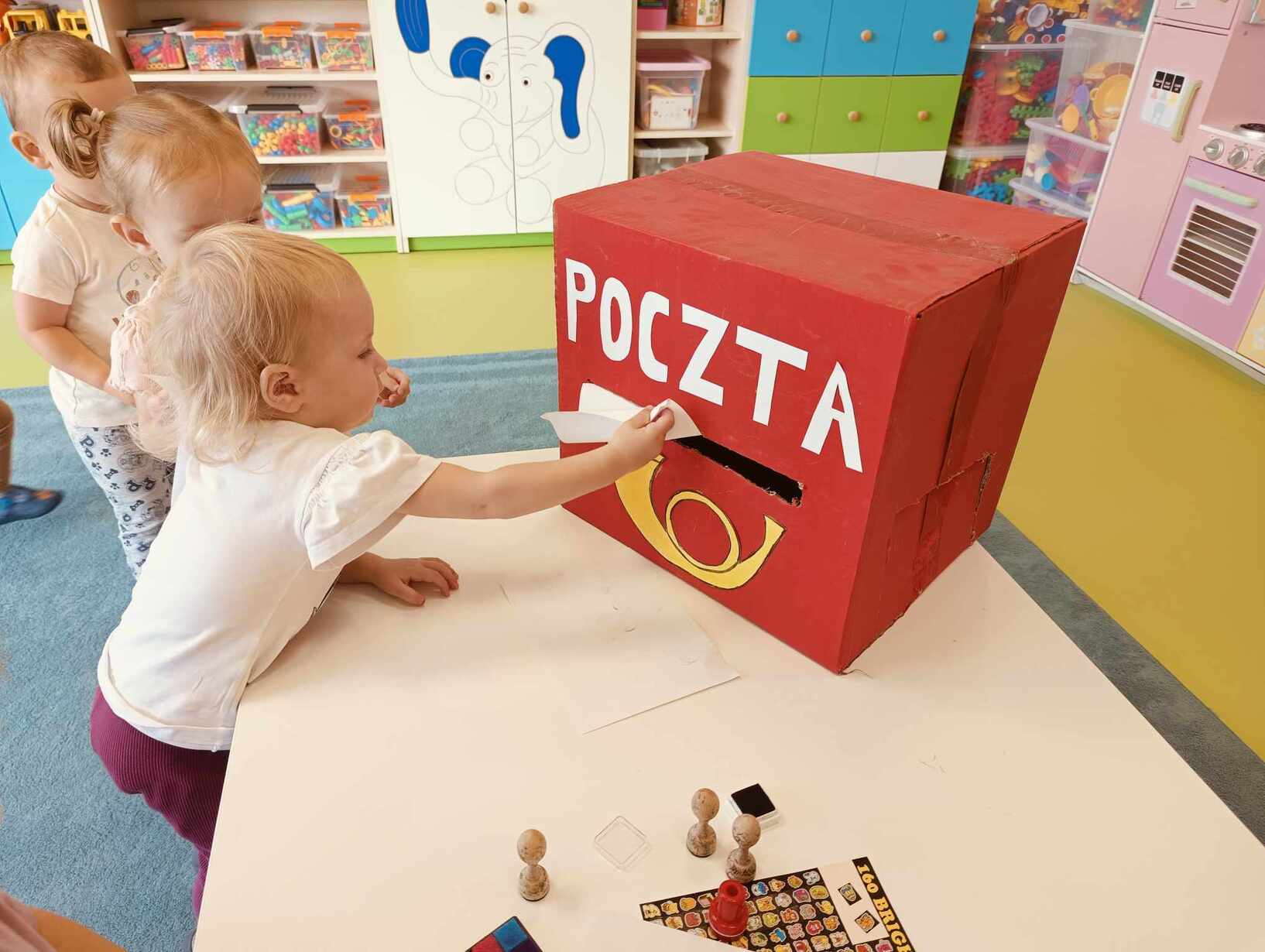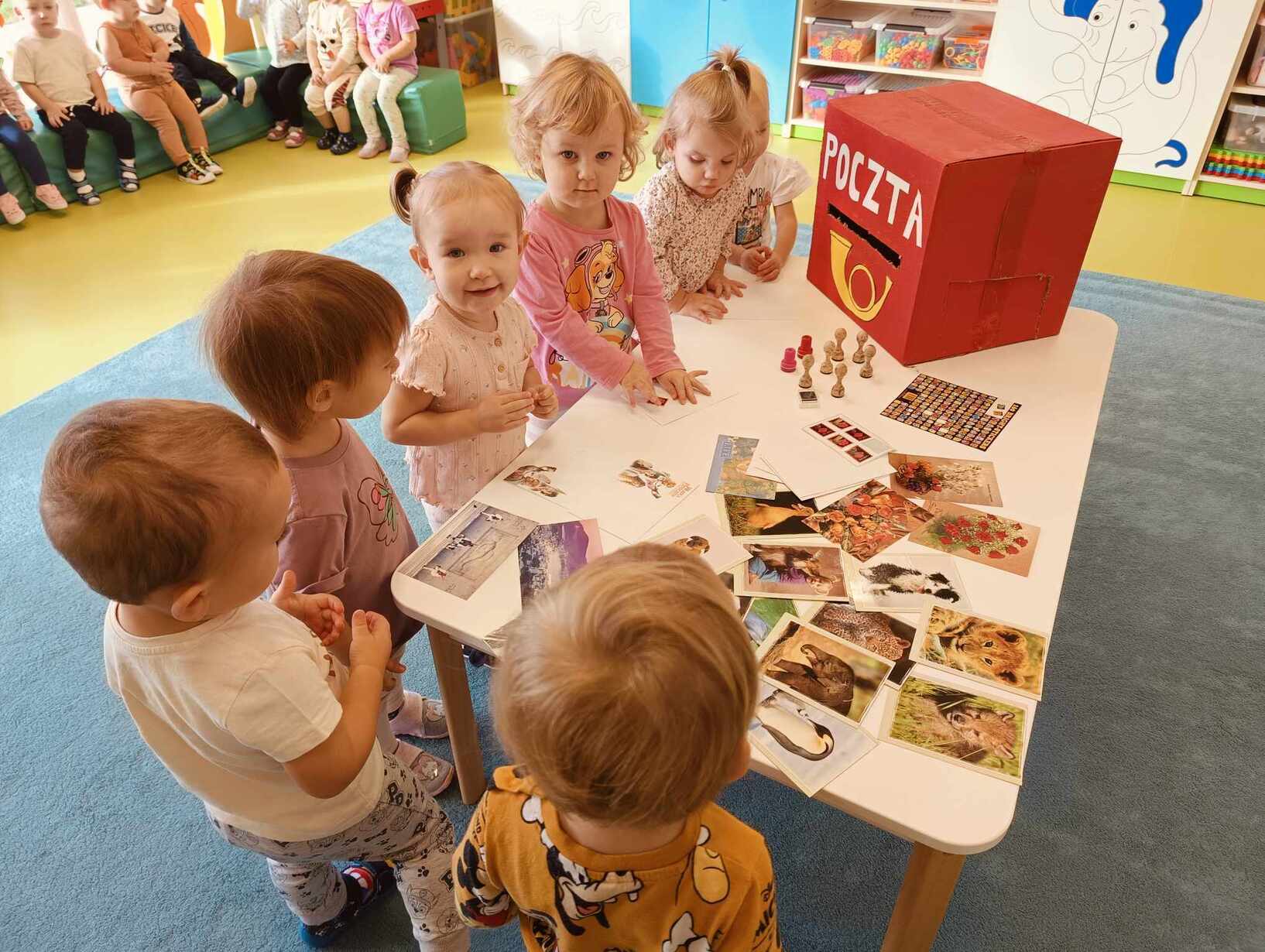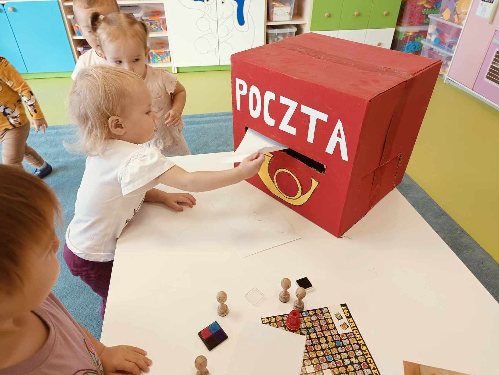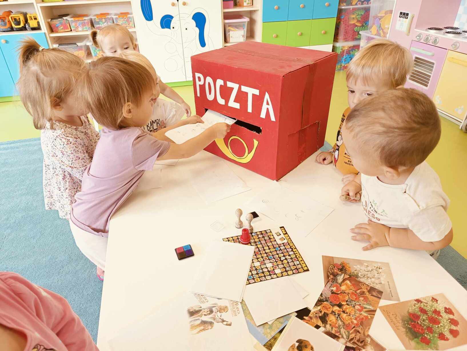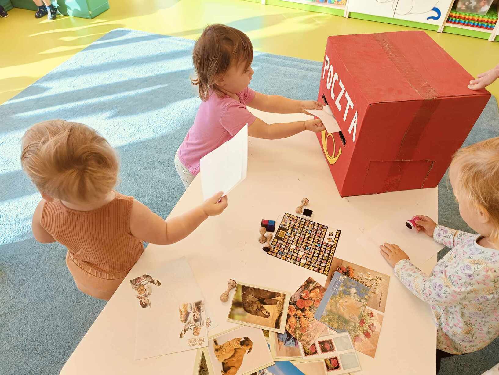 9 października obchodzimy Dzień Poczty Polskiej. Z tej okazji Tygryski podczas zajęć dydaktycznych zapoznały się ze specyfiką pracy listonosza oraz dowiedziały się jak wygląda praca na poczcie. Każde z dzieci miało okazję przykleić znaczek i przybić stempel, a następnie włożyć go do skrzynki. Tygryski były zachwycone i świetnie się bawiły.