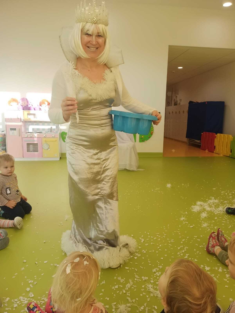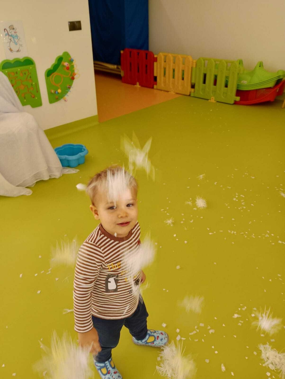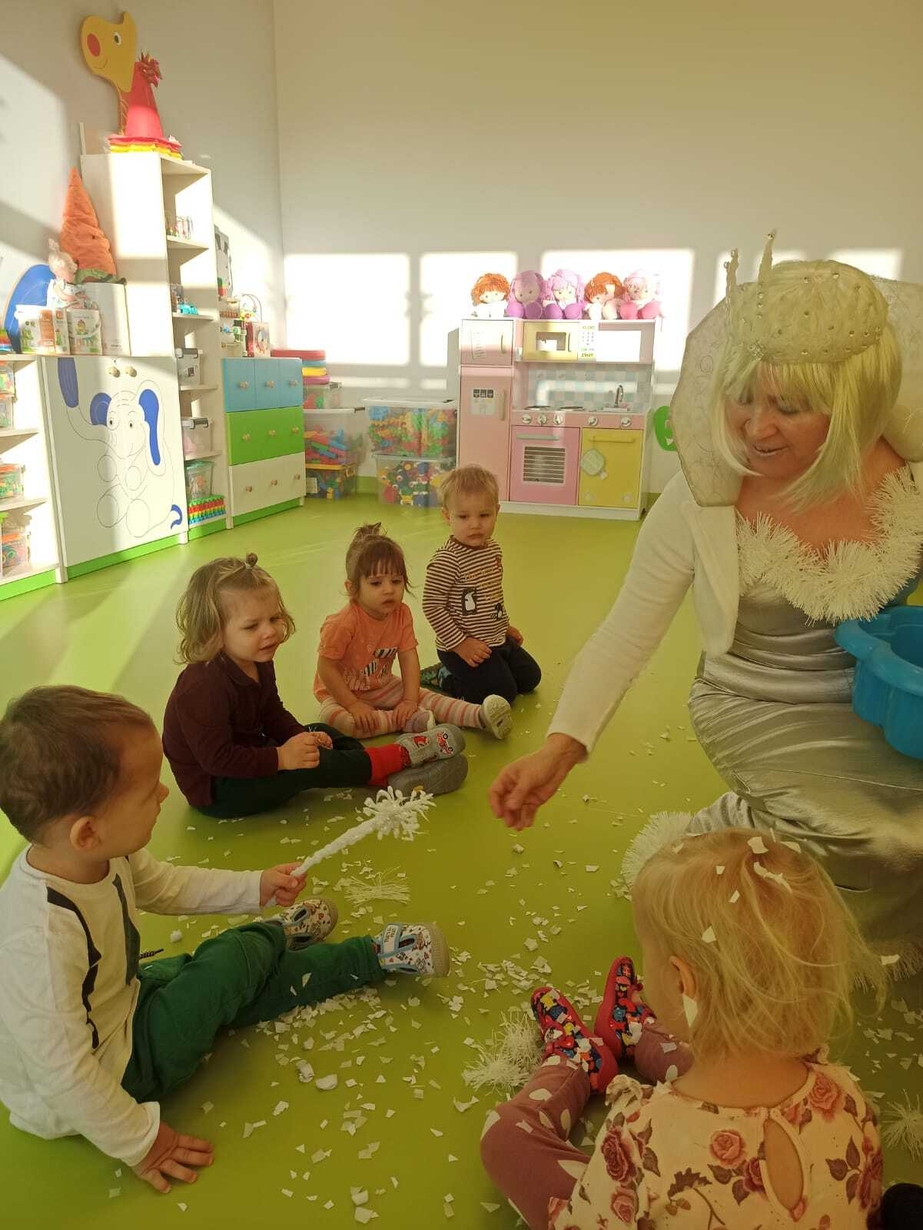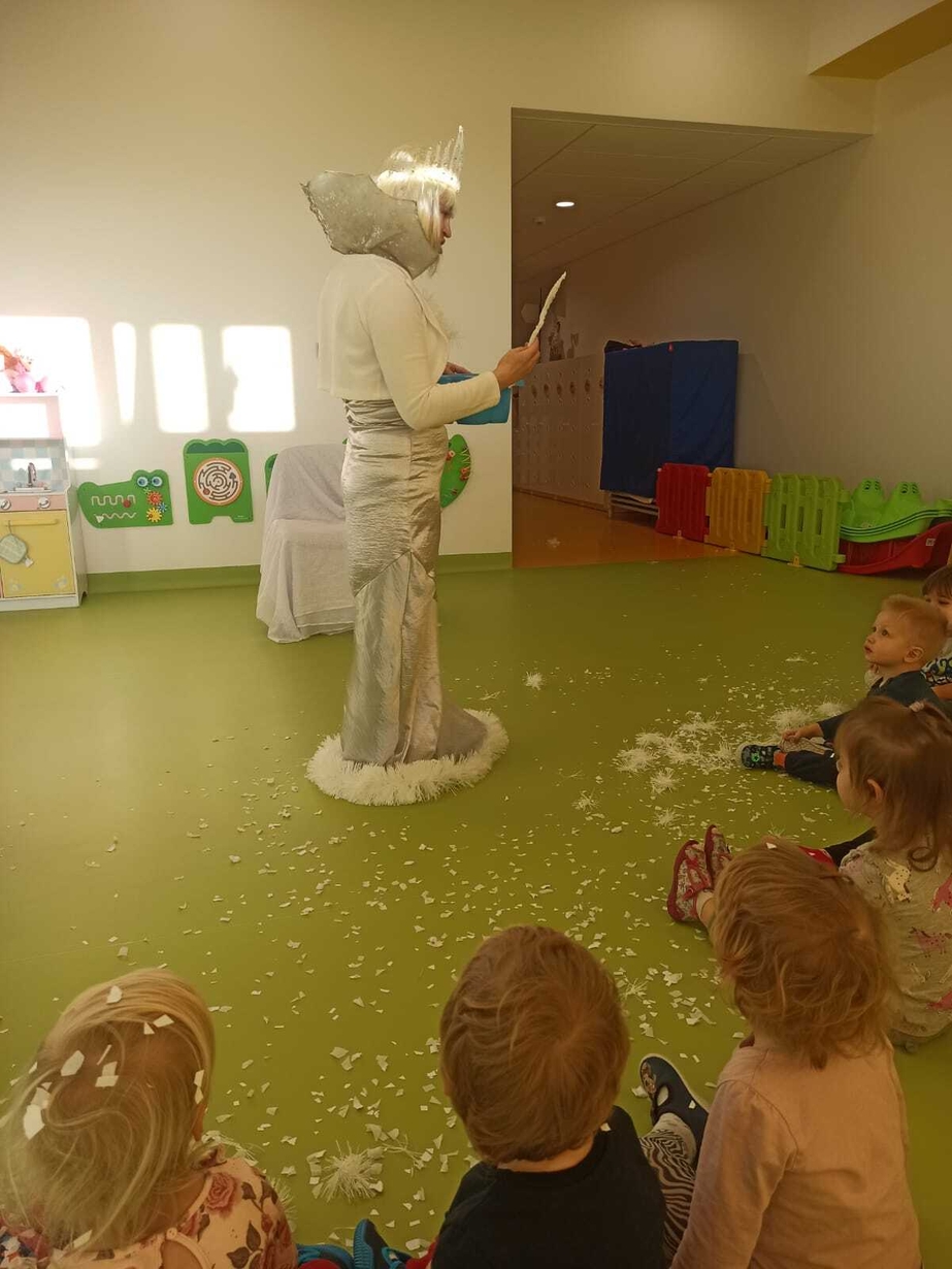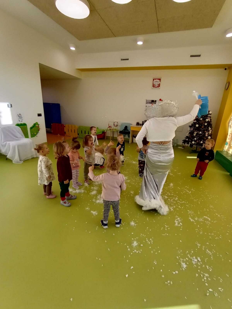 Do naszych maluchów w odwiedziny przyszła Pani Zima, która używając swojej magicznej różdżki wyczarowała dla dzieci śnieg!