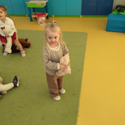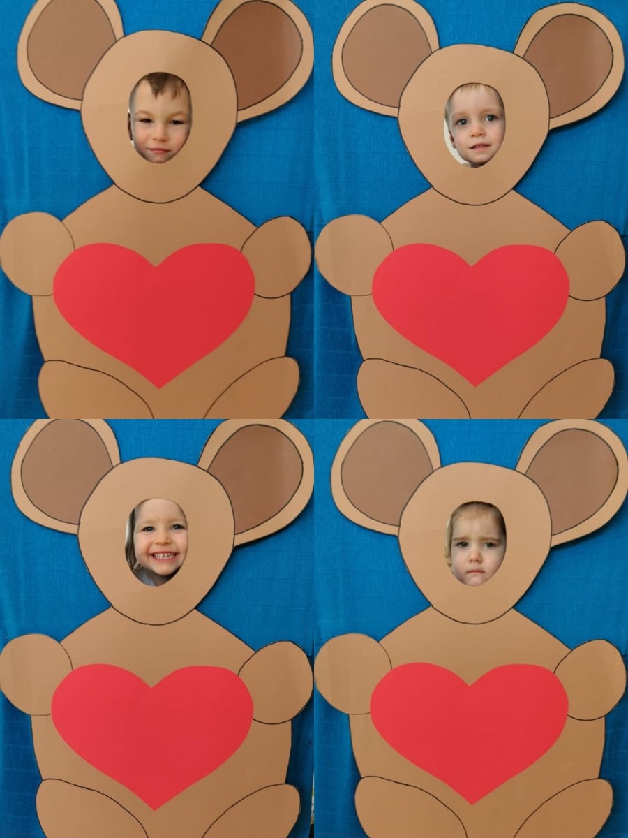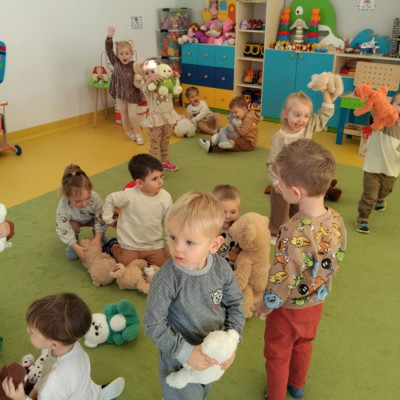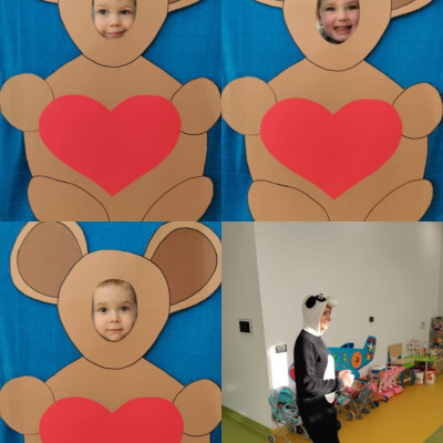 Zdjęcia przedstawiają dzieci świętujące Dzień Pluszowego Misia.