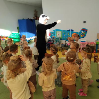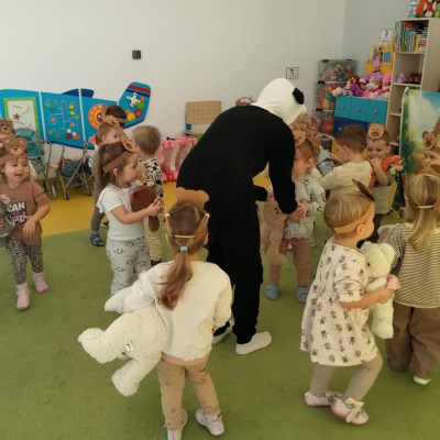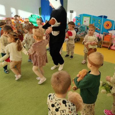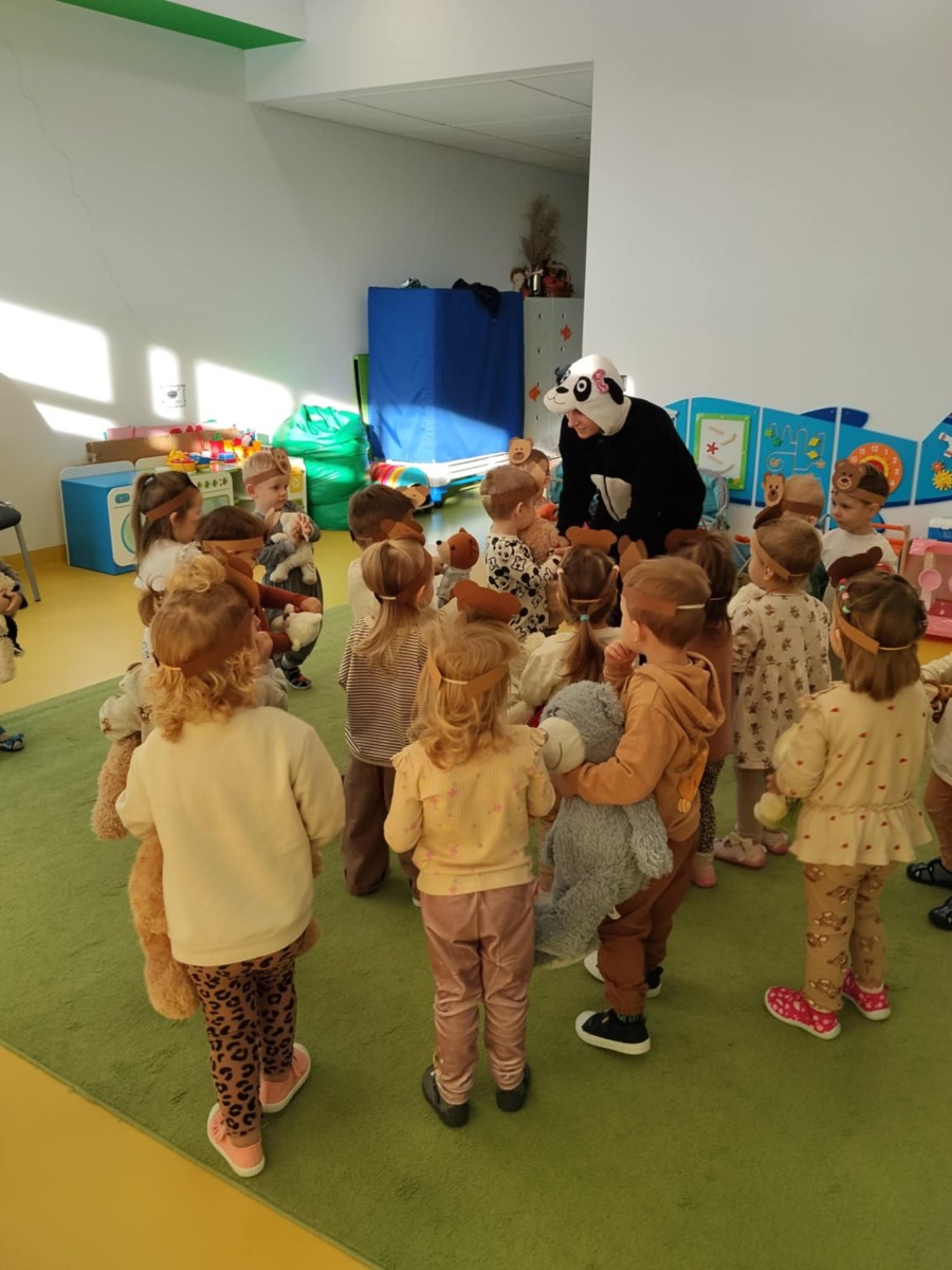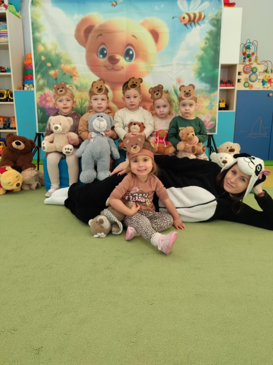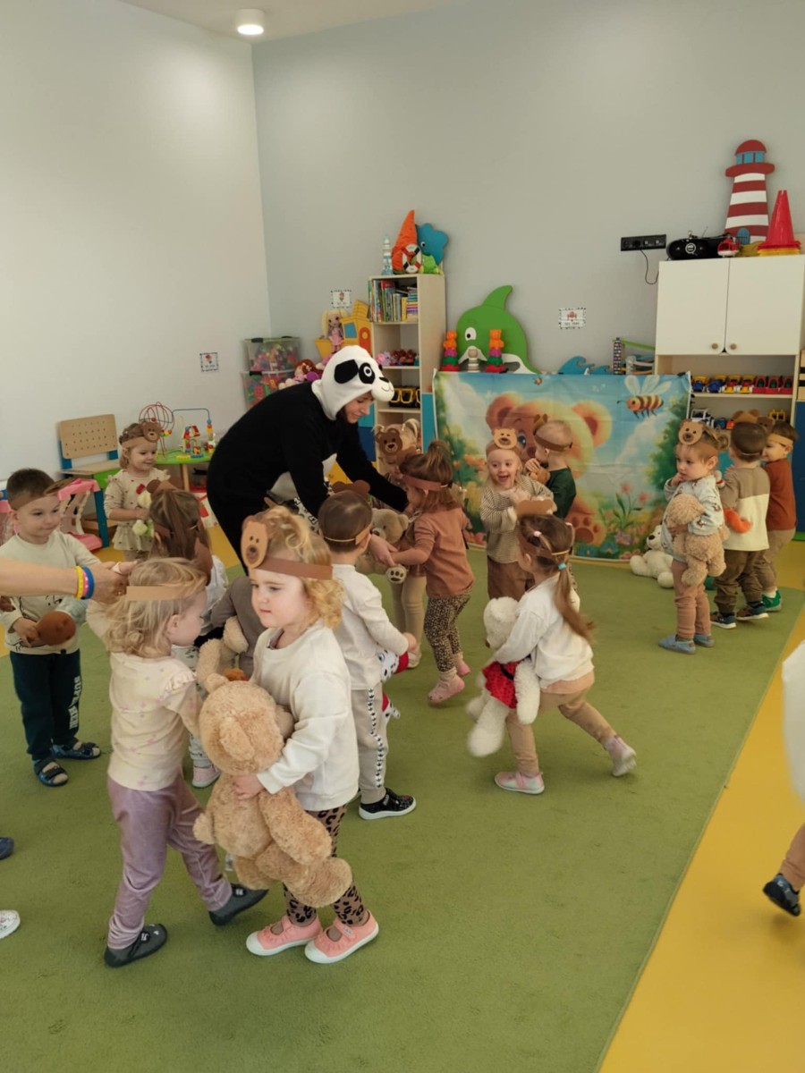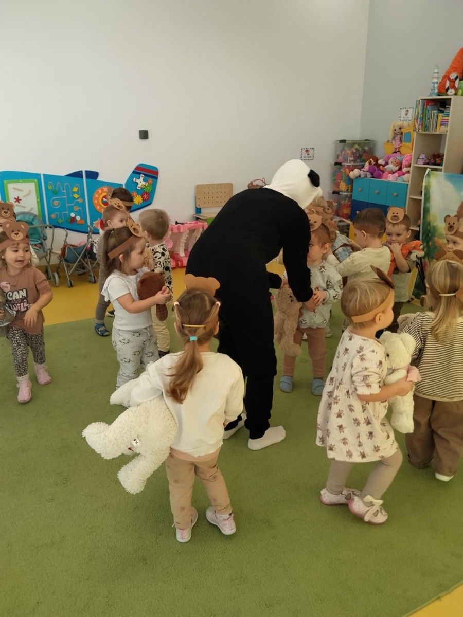 Z okazji Międzynarodowego Dnia PLUSZOWEGO MISIA do grupy Rybek zawitała Misia Pandzia 🐼 W tym dniu każde dziecko przyniosło swojego ukochanego misia by wspólnie świętować te radosne chwile . Na dzieci i misie czekało wiele atrakcji ; bawiły się przy misiowych piosenkach, uczestniczyły w zabawach i sesji zdjęciowej . Dzieci również wykonały pracę plastyczne pt.