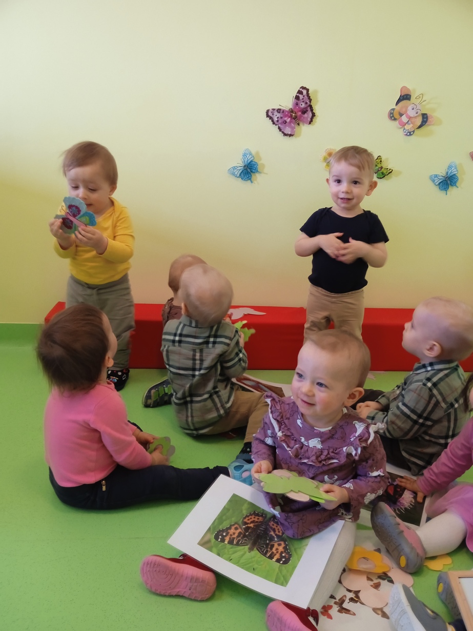 Motyle to piękne i pożyteczne owady. Ciocie zaśpiewały piosenkę ,,Daj rękę wiosenko".
