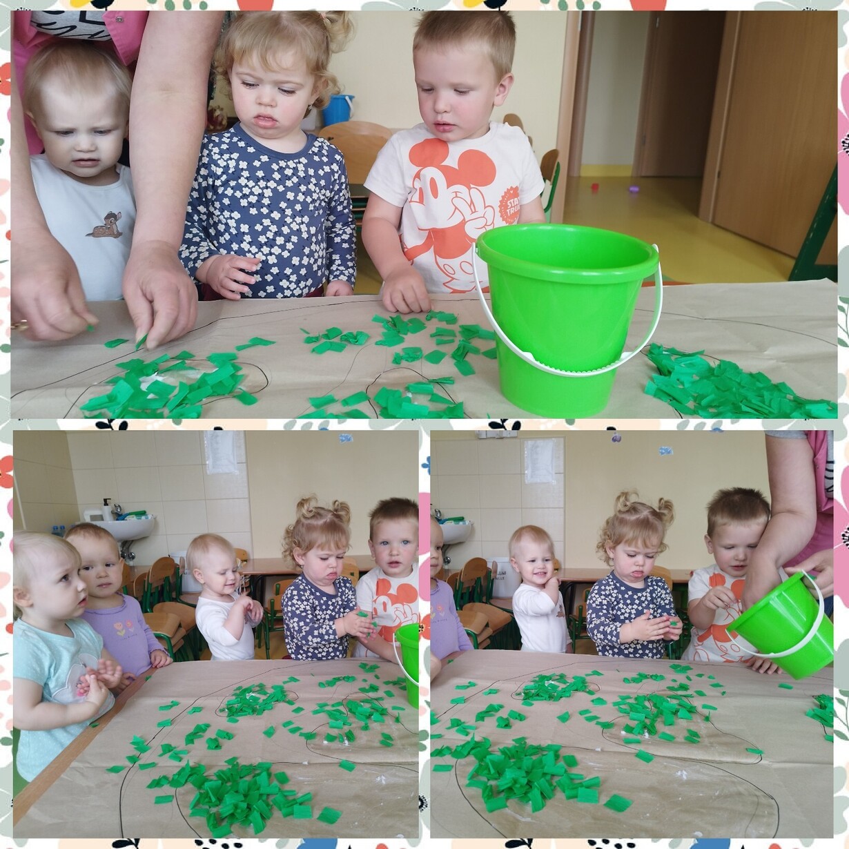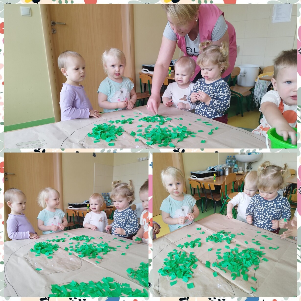 Ciocie krótko wprowadziły dzieci w temat ochrony naszej planety i jak poprzez różne drobne aktywności możemy ją chronić. Na przykład poprzez segregowanie śmieci, oszczędzanie wody i energii, czy dbanie o drzewa i rośliny.