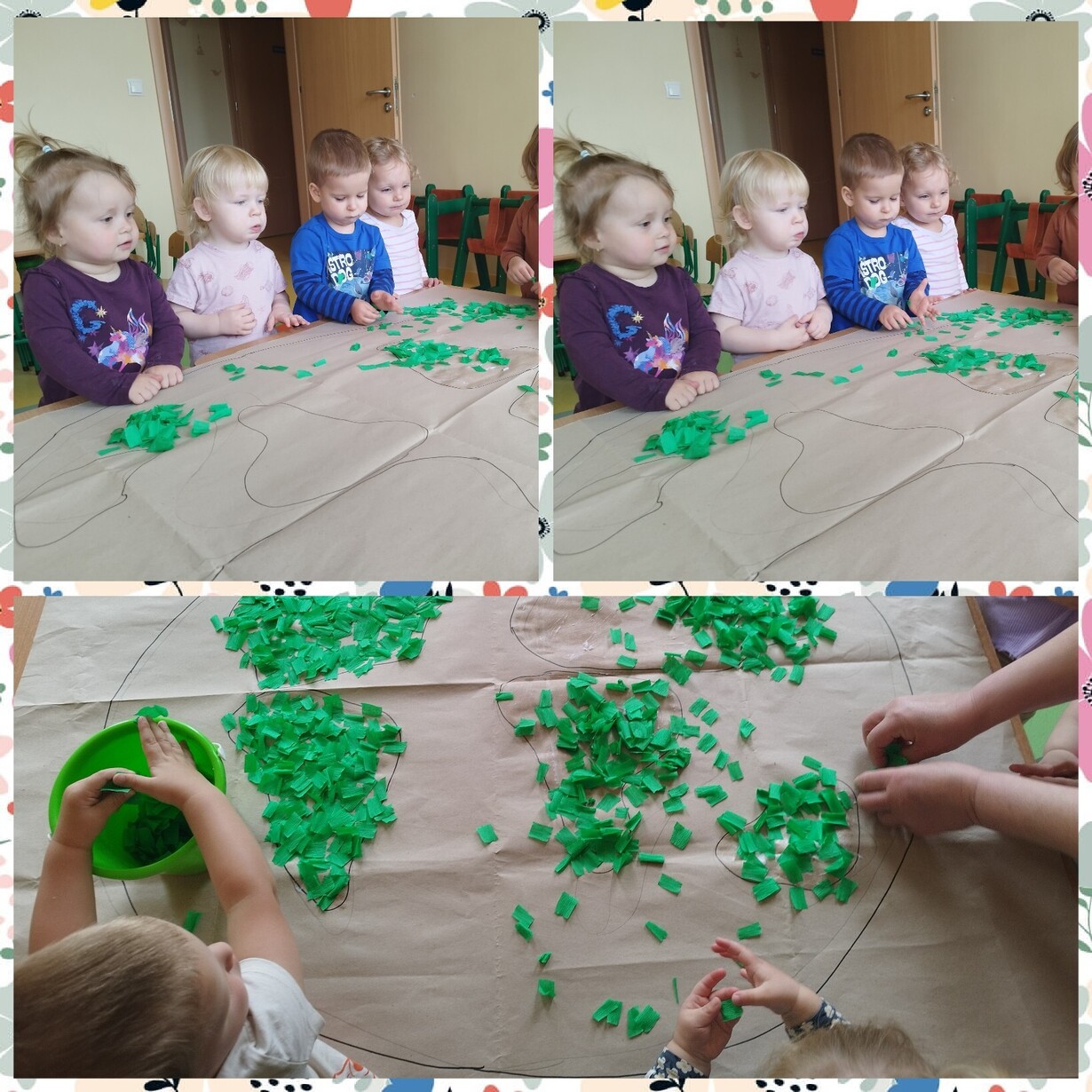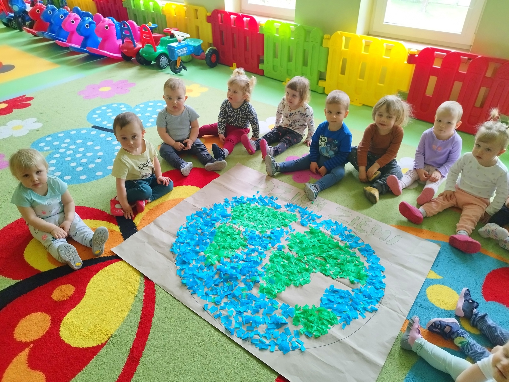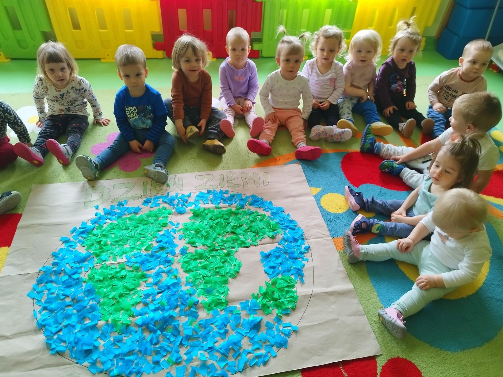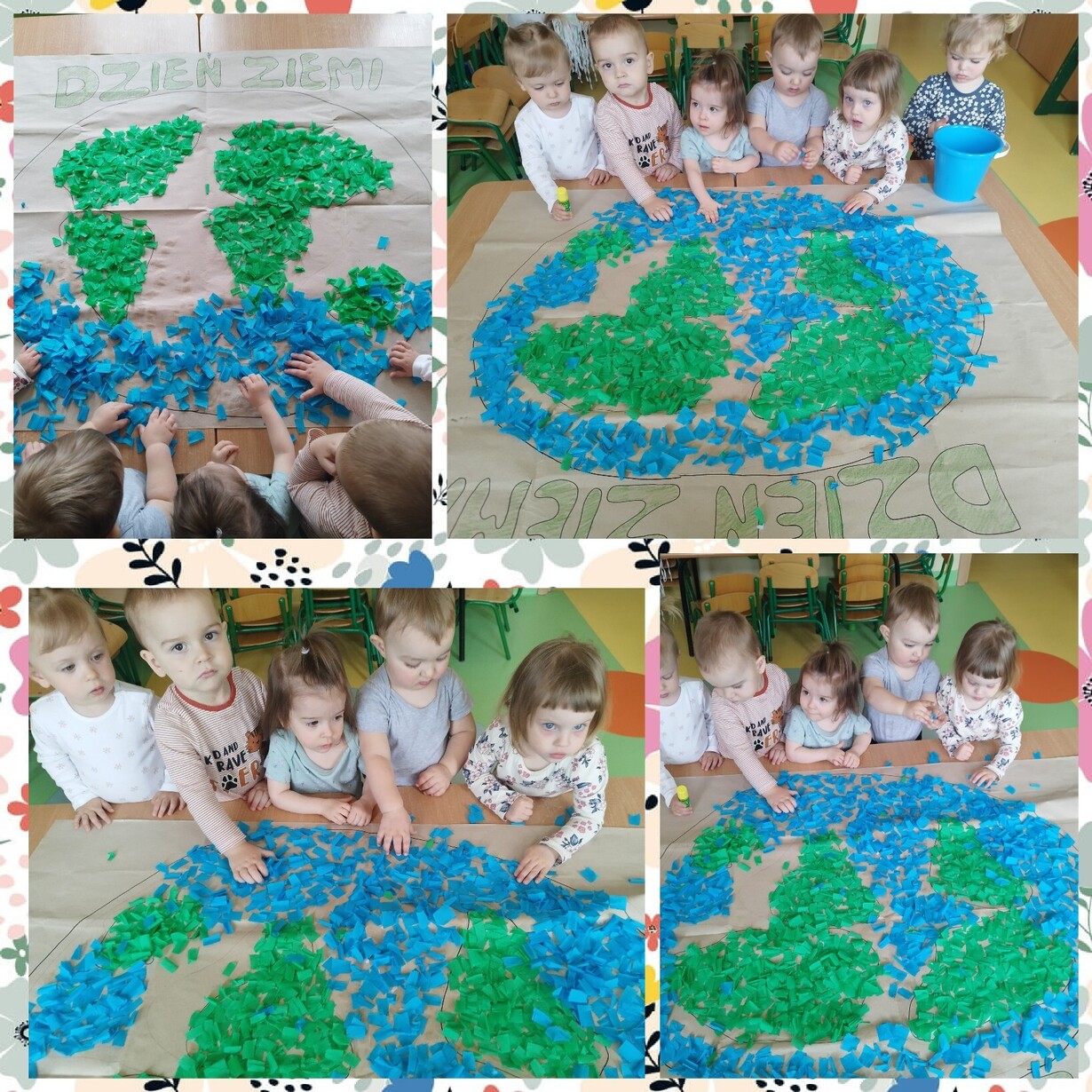 Na koniec zajęć dzieci z grupy Biedronki z pomocą cioć wykonały wspólną prace plastyczne przedstawiająca nasza piękna planetę.
