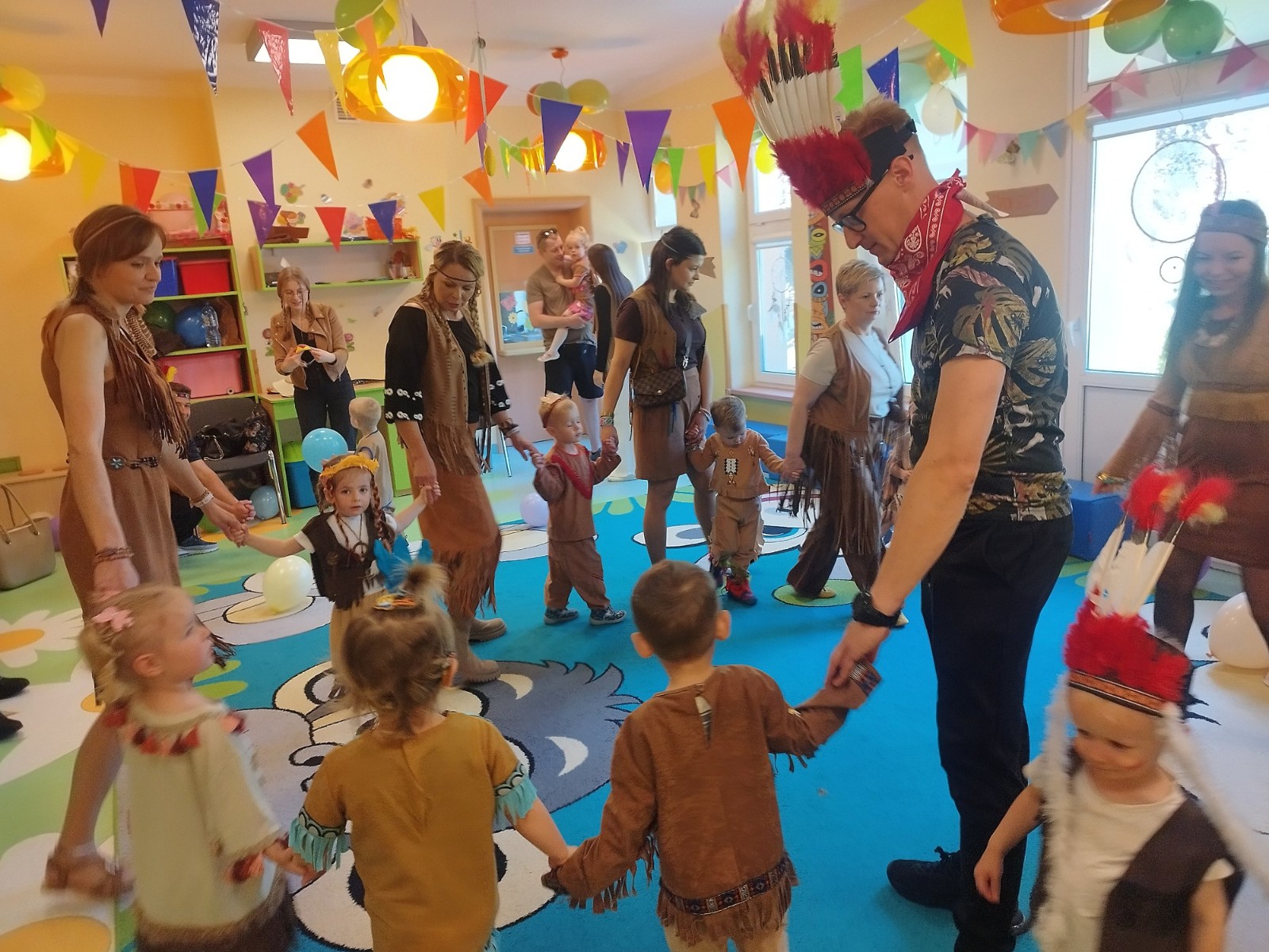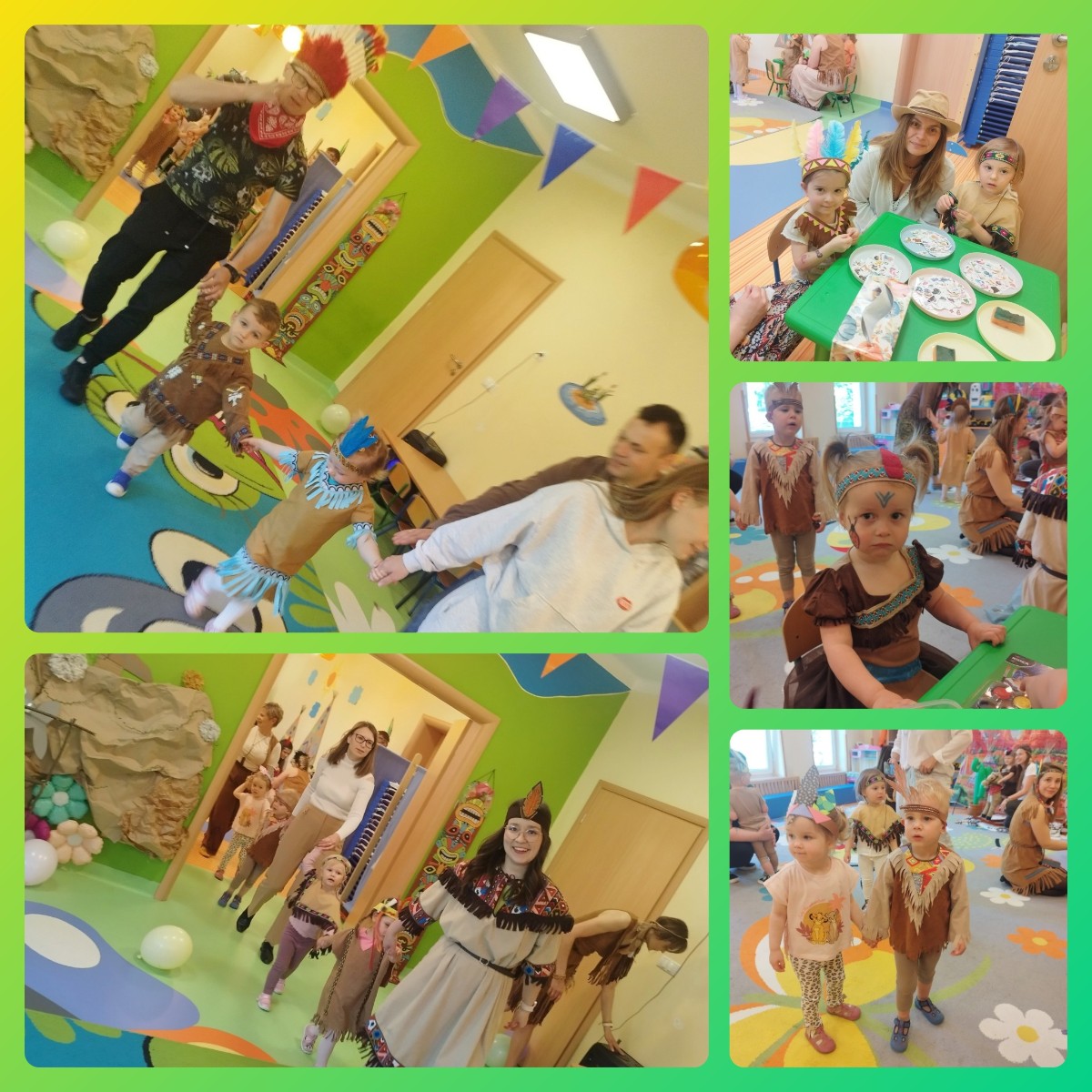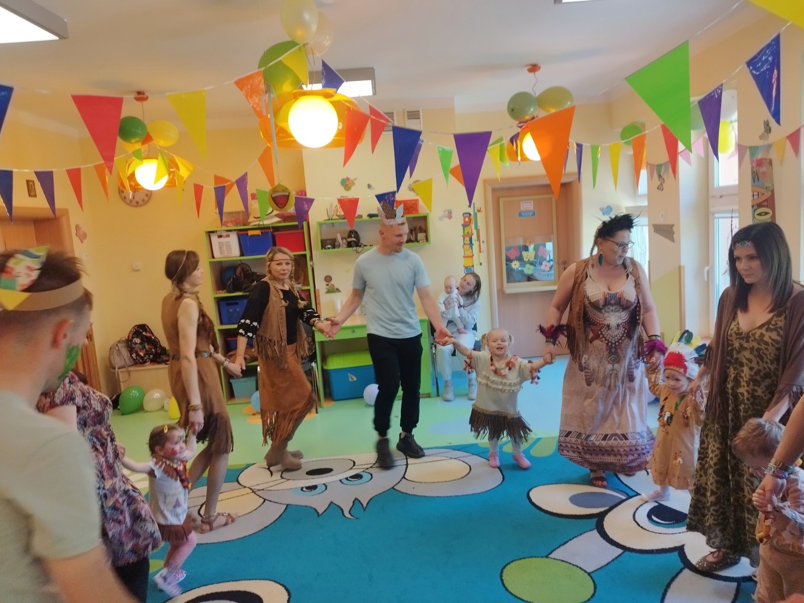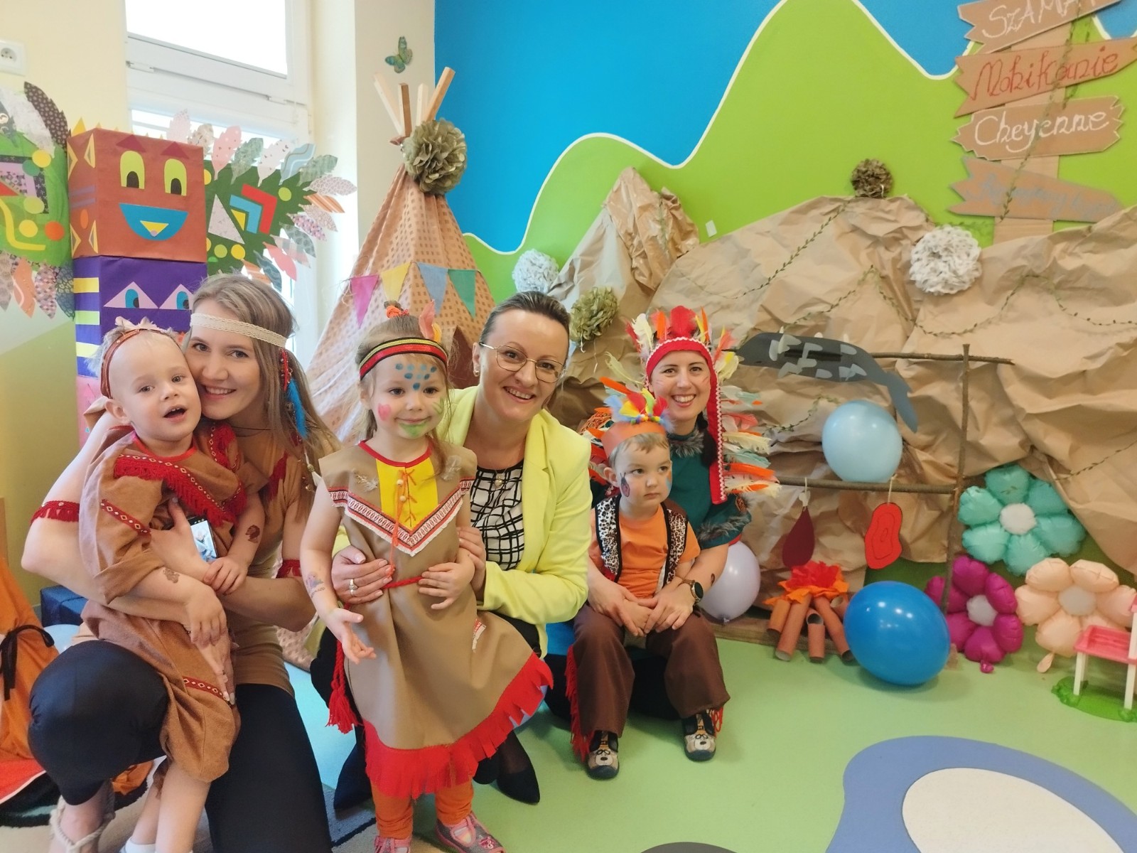 Dzień Dziecka to wielkie święto wszystkich dzieci i tych małych i tych dużych. Z tej okazji w grupie Muchomorki odbyła się wielka, wspaniała impreza, której tematem przewodnim była Indiańska wioska. Tego dnia wszyscy przenieśliśmy się do niezwykłego świata indiańskich plemion. Pośród tańców, dzieci mogły brać udział w różnych przygotowanych atrakcjach. We wspólnej zabawie wzięli udział rodzice naszych milusińskich, którzy także tego wyjątkowego dnia mogli poczuć się jak dzieci, bawiąc się wspólnie i zakładając stroje tematyczne. W końcu w Dzień Dziecka wszyscy jesteśmy dziećmi. To był dzień pełen wesołej zabawy, muzyki i śmiechu.
