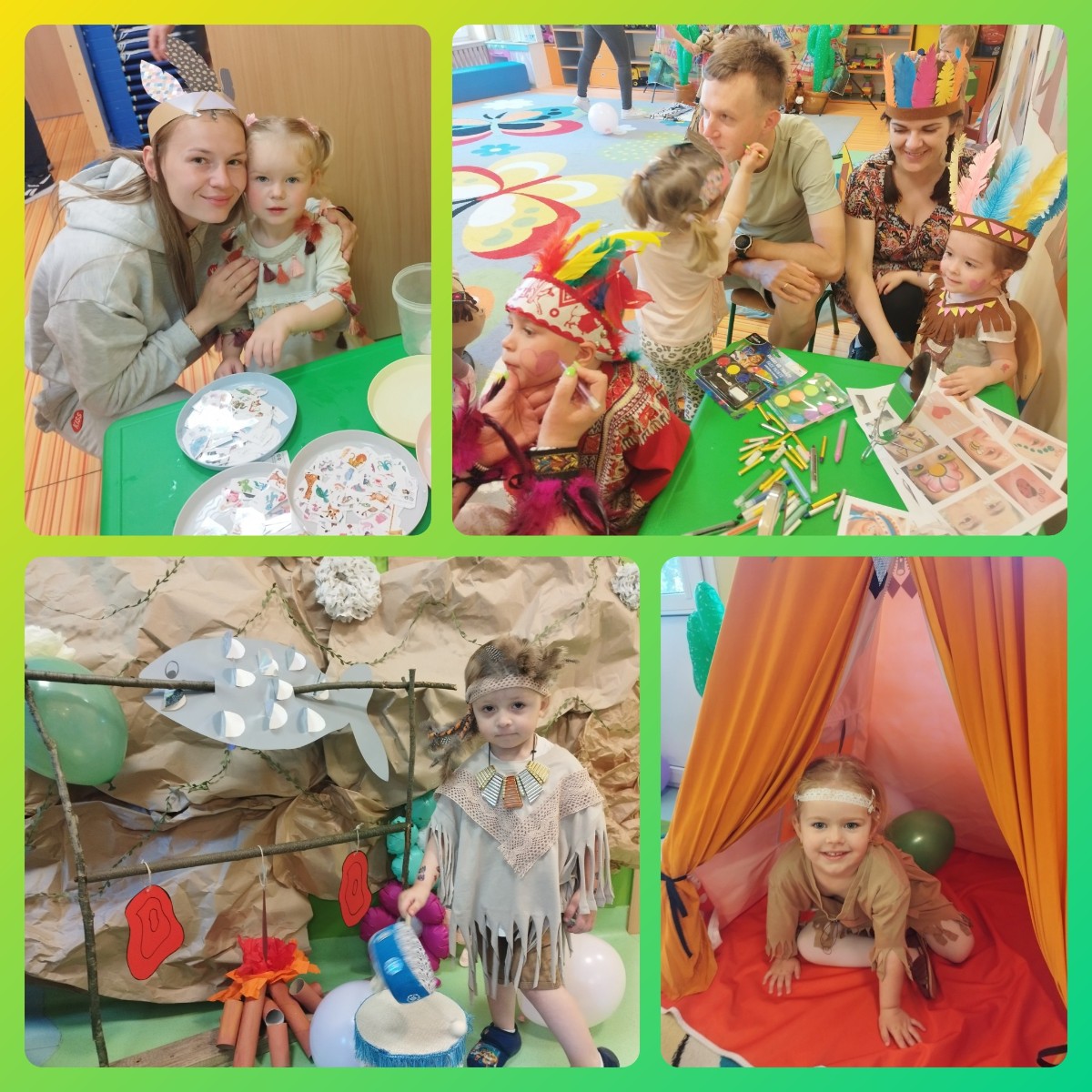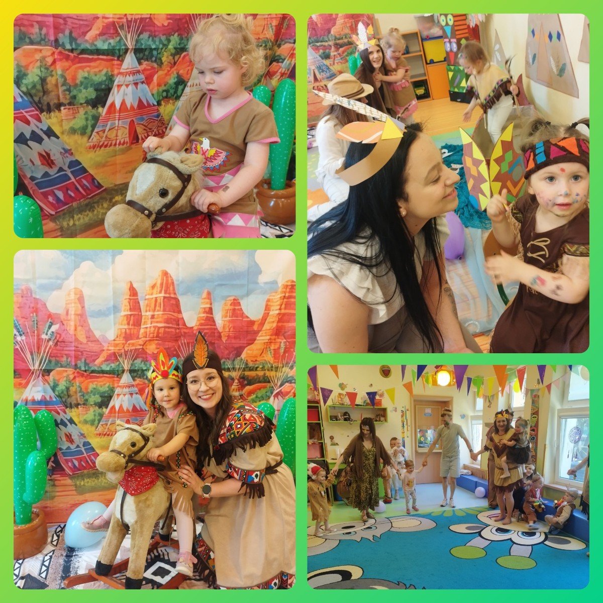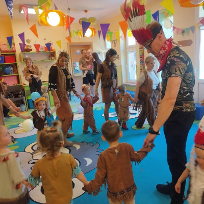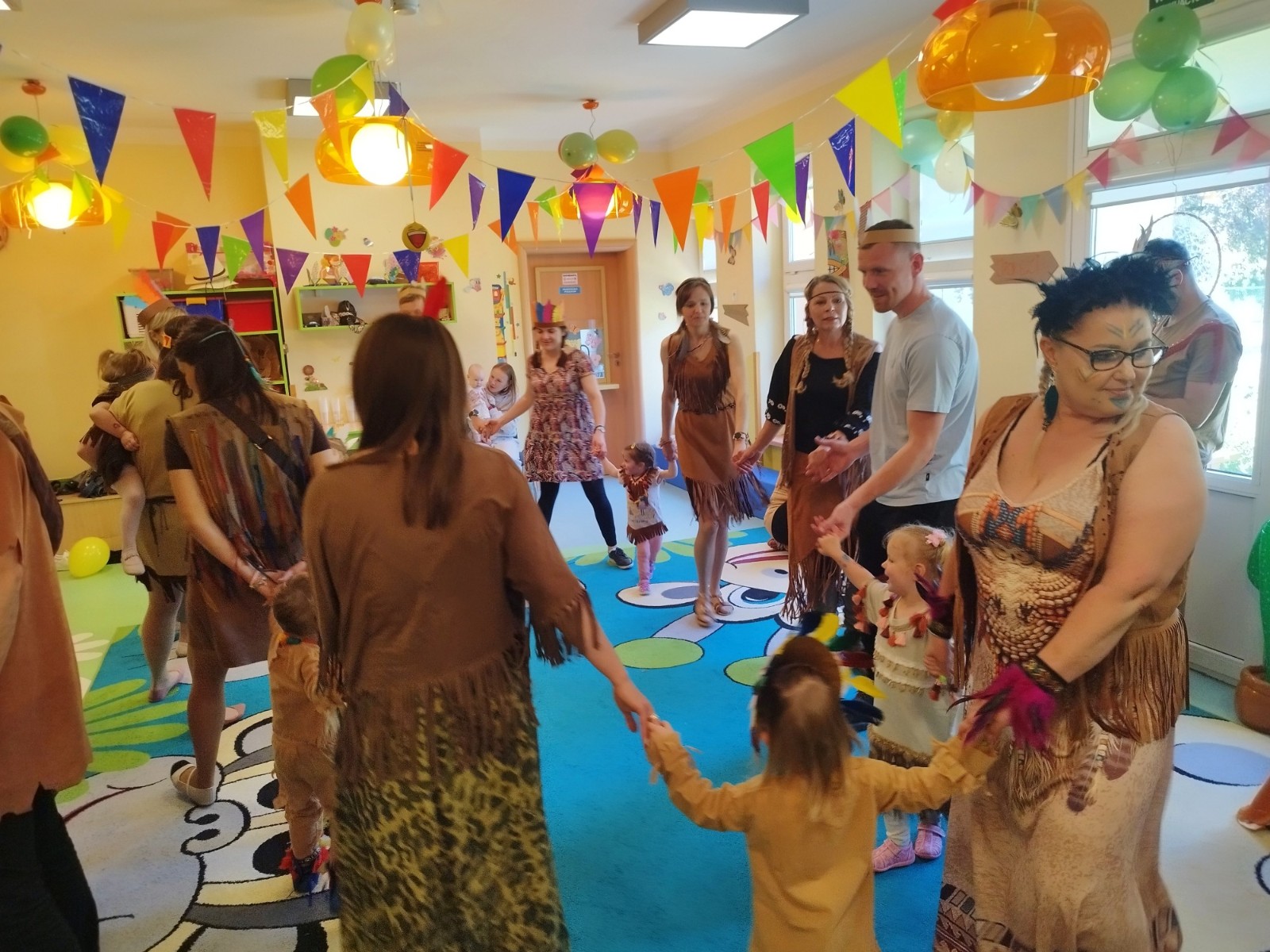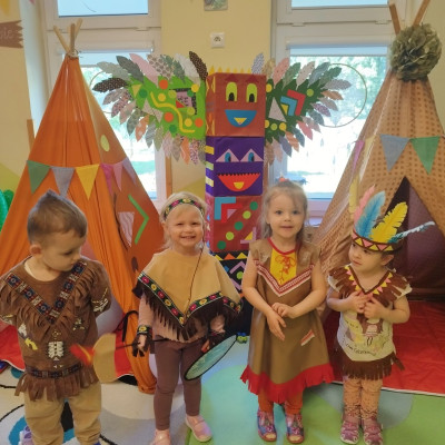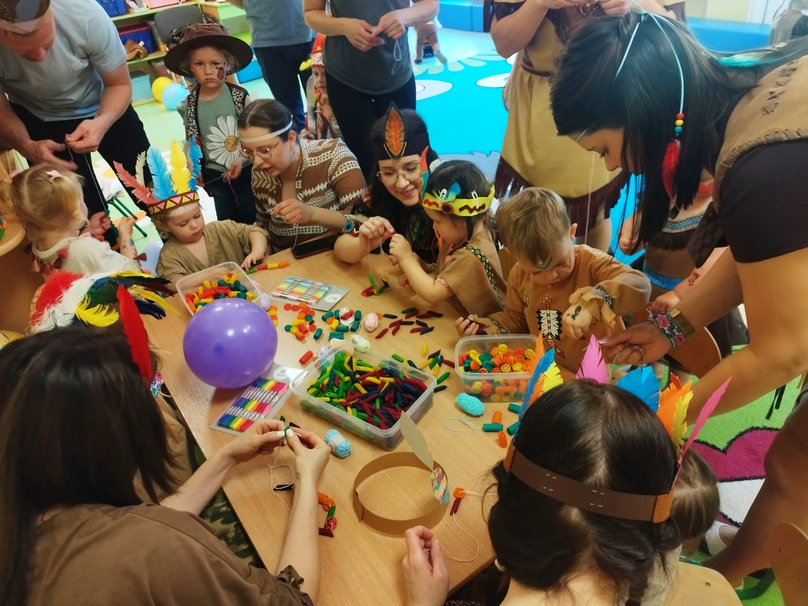 Dzień Dziecka to wielkie święto wszystkich dzieci i tych małych i tych dużych. Z tej okazji w grupie Muchomorki odbyła się wielka, wspaniała impreza, której tematem przewodnim była Indiańska wioska. Tego dnia wszyscy przenieśliśmy się do niezwykłego świata indiańskich plemion. Pośród tańców, dzieci mogły brać udział w różnych przygotowanych atrakcjach. We wspólnej zabawie wzięli udział rodzice naszych milusińskich, którzy także tego wyjątkowego dnia mogli poczuć się jak dzieci, bawiąc się wspólnie i zakładając stroje tematyczne. W końcu w Dzień Dziecka wszyscy jesteśmy dziećmi. To był dzień pełen wesołej zabawy, muzyki i śmiechu.
