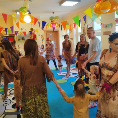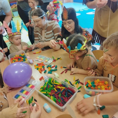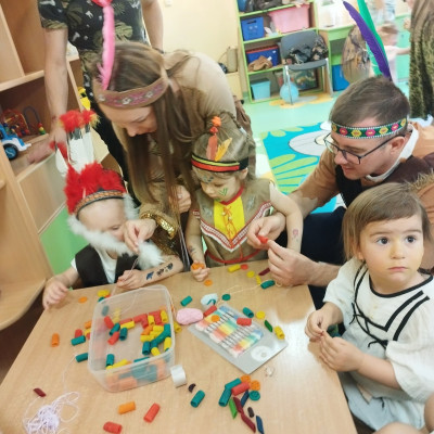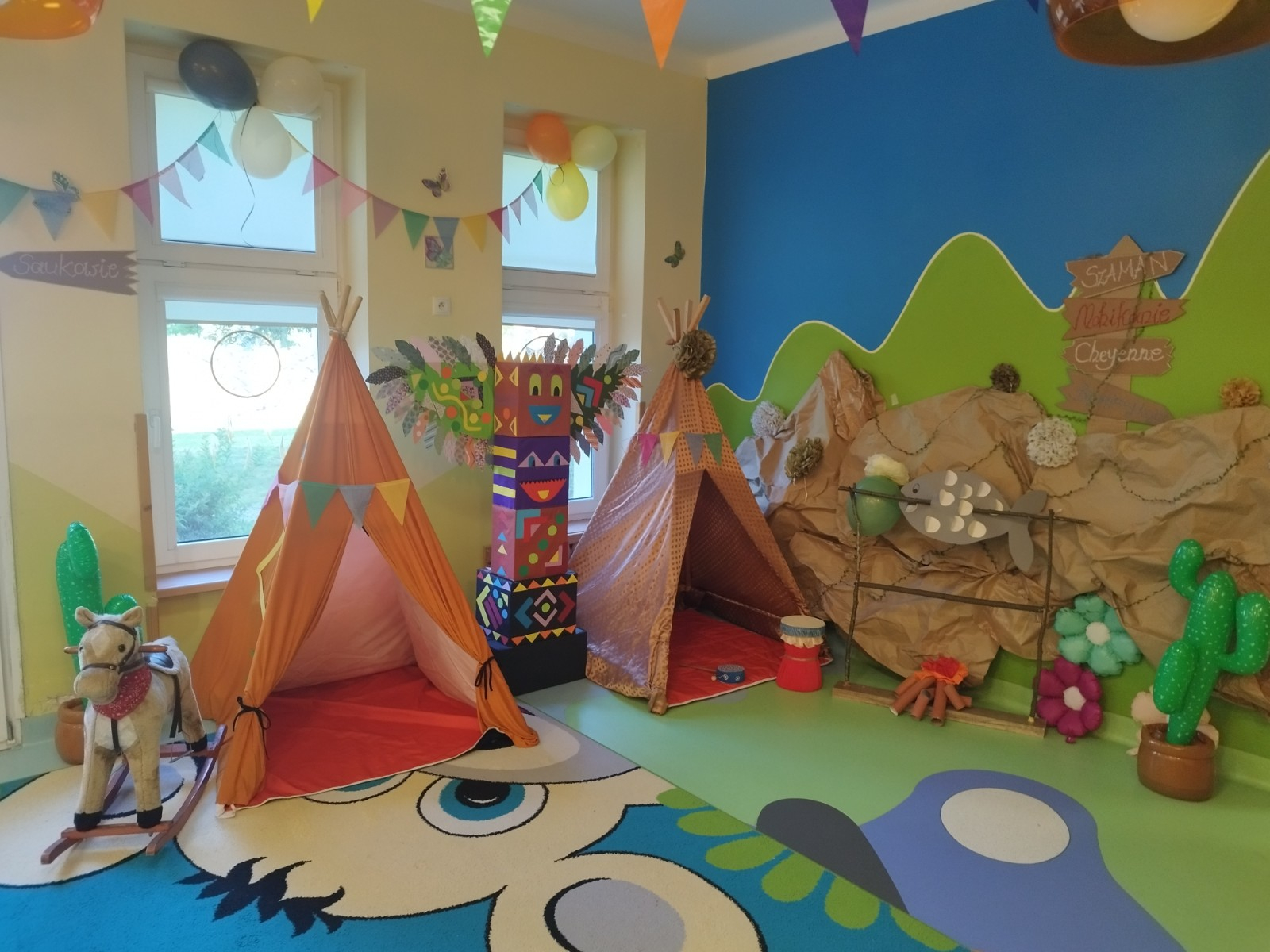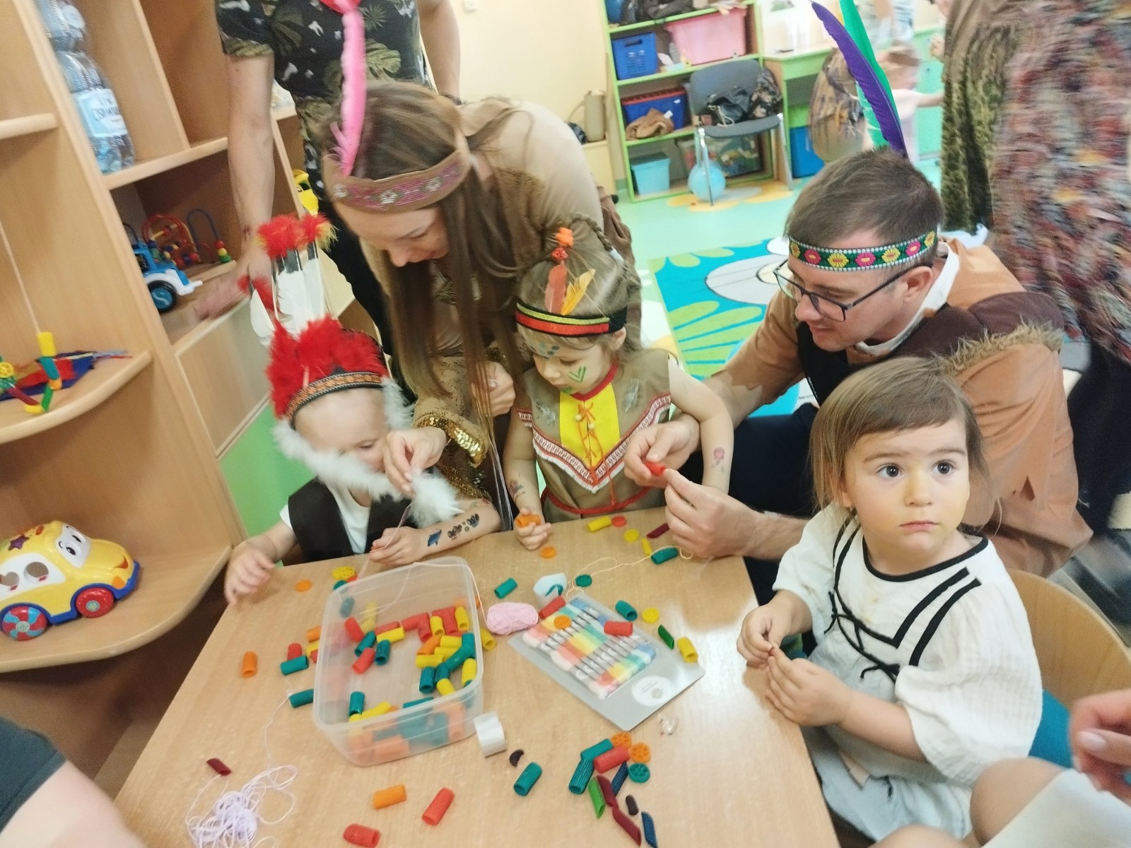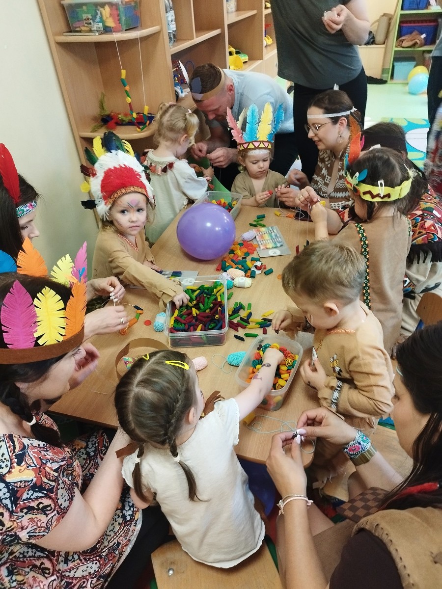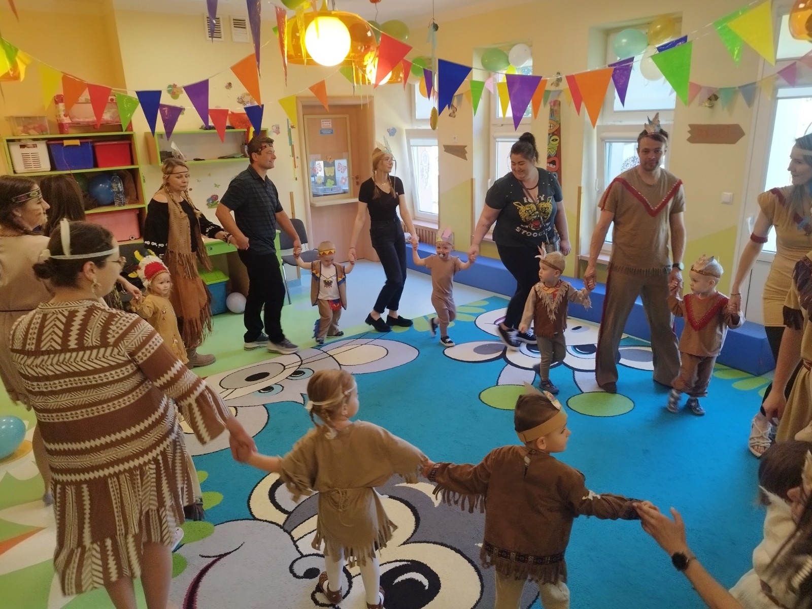 Dzień Dziecka to wielkie święto wszystkich dzieci i tych małych i tych dużych. Z tej okazji w grupie Muchomorki odbyła się wielka, wspaniała impreza, której tematem przewodnim była Indiańska wioska. Tego dnia wszyscy przenieśliśmy się do niezwykłego świata indiańskich plemion. Pośród tańców, dzieci mogły brać udział w różnych przygotowanych atrakcjach. We wspólnej zabawie wzięli udział rodzice naszych milusińskich, którzy także tego wyjątkowego dnia mogli poczuć się jak dzieci, bawiąc się wspólnie i zakładając stroje tematyczne. W końcu w Dzień Dziecka wszyscy jesteśmy dziećmi. To był dzień pełen wesołej zabawy, muzyki i śmiechu.