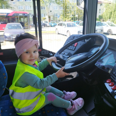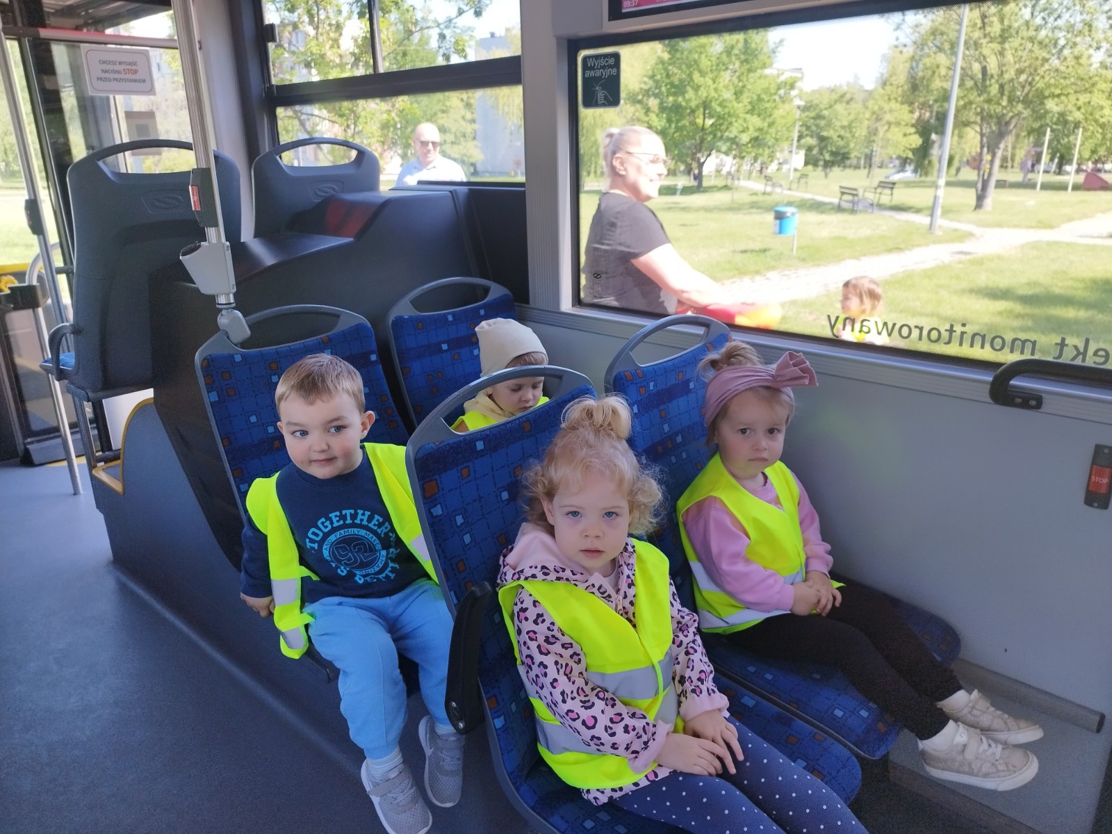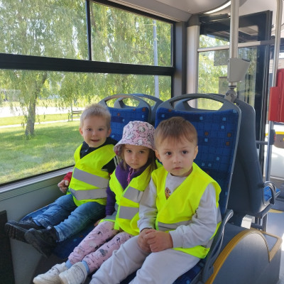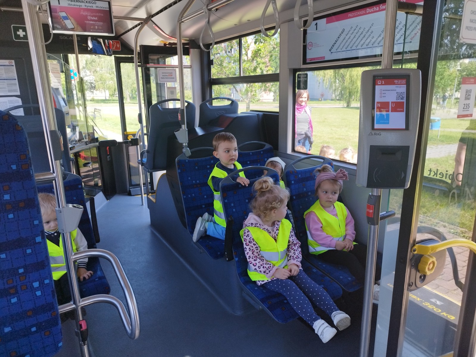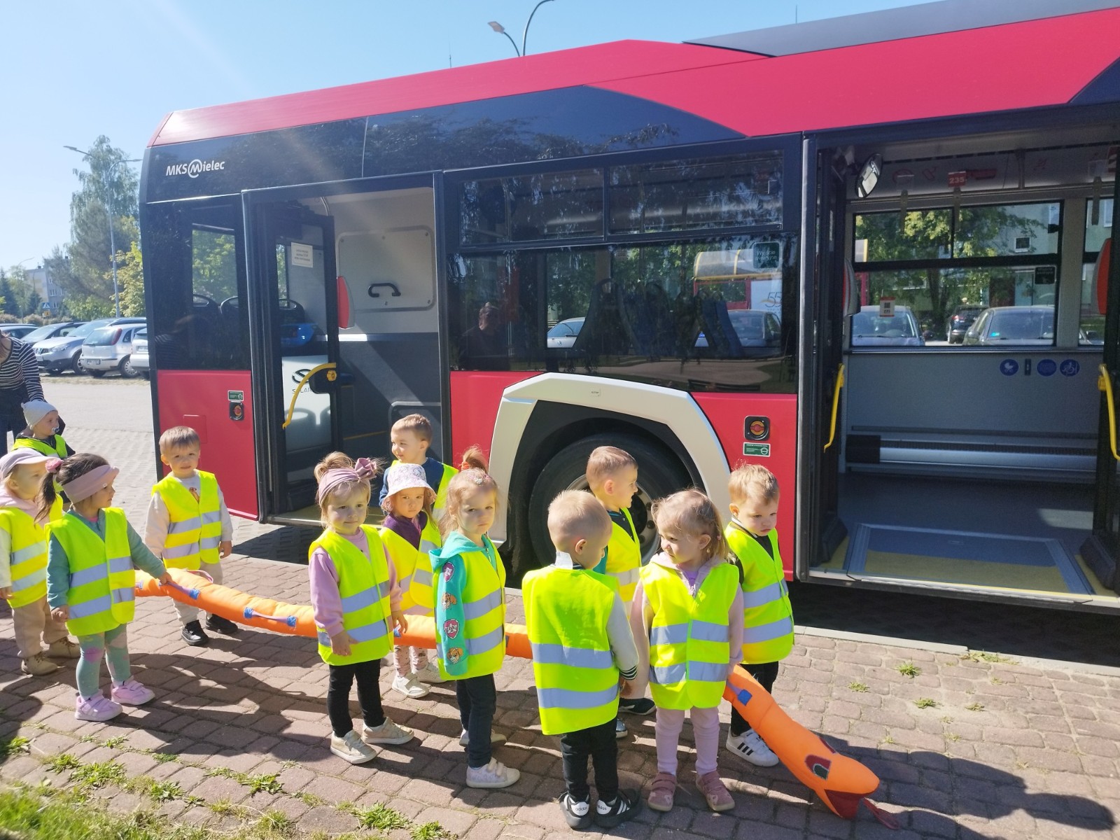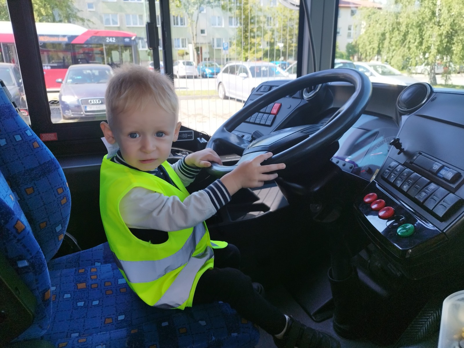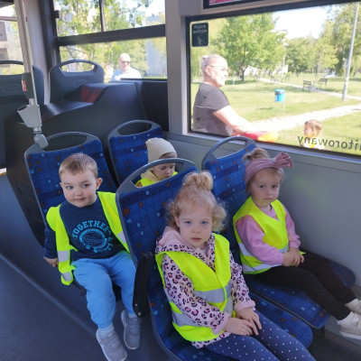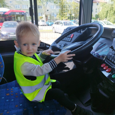 Spacerując po okolicy naszego żłobka Muchomorki zyskują okazję na poznanie ciekawych miejsc, atrakcji oraz ludzi. Rozwijają dzięki temu ciekawość świata oraz doświadczają różnych przygód. Tym razem podczas spaceru udało się zwiedzić miejski autobus, dzięki uprzejmości Pana Dawida - kierowcy. Dzieci mogły usiąść w środku i poczuć się jak pasażerowie oraz za kierownicą tego wielkiego pojazdu. To była wspaniała przygoda. Jeszcze raz dziękujemy Panu Dawidowi za uprzejmość i okazaną sympatię.