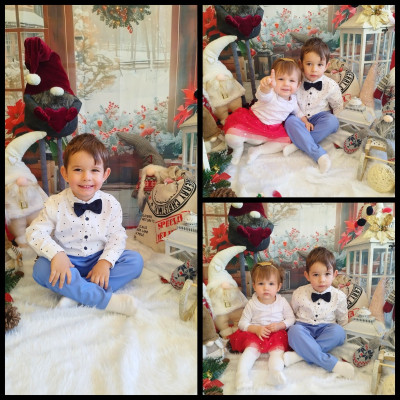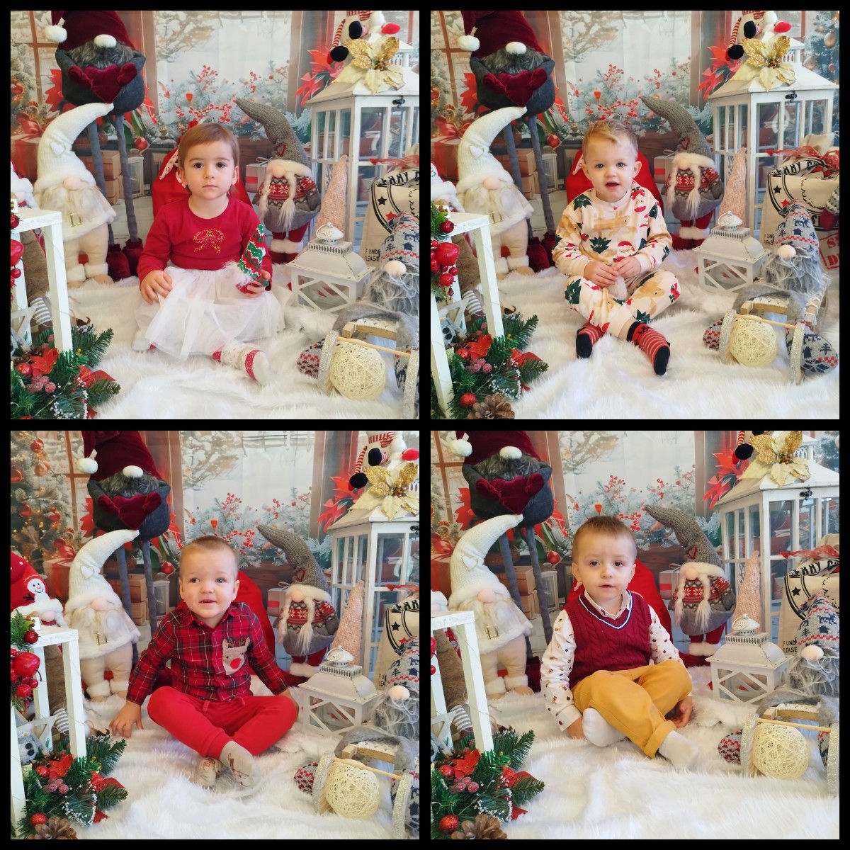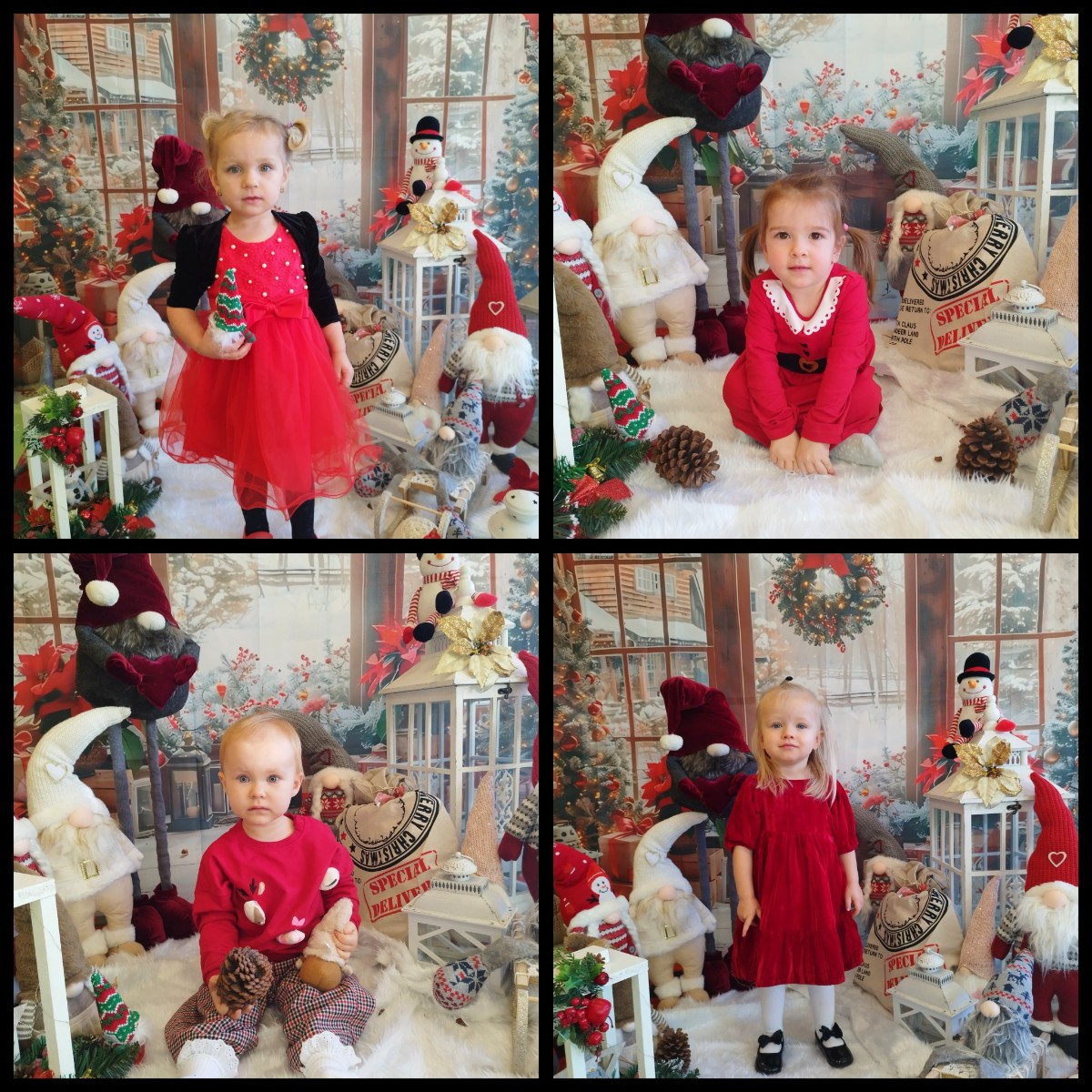 Zdjęcie przedstawia dzieci podczas świątecznej sesji zdjęciowej