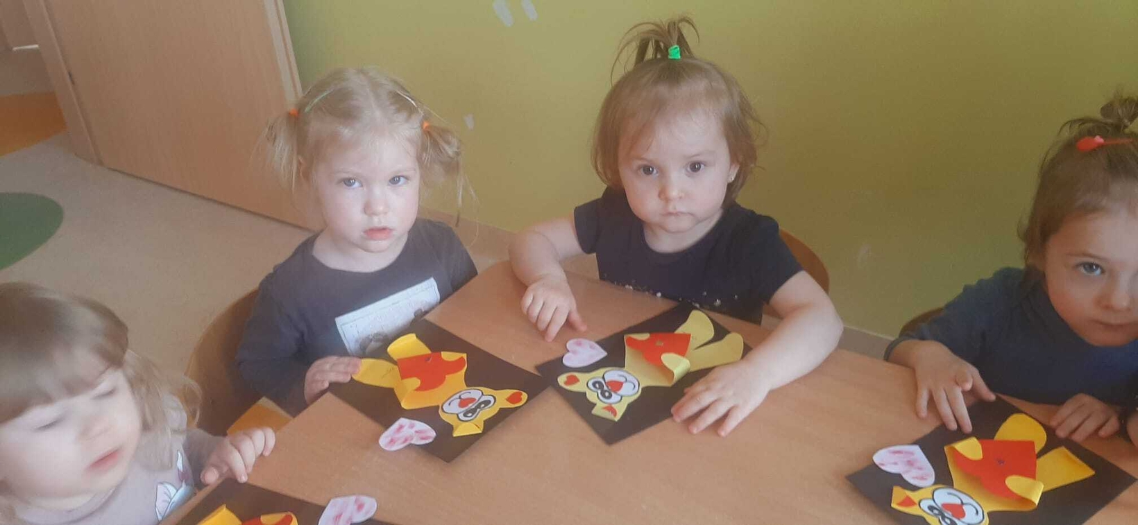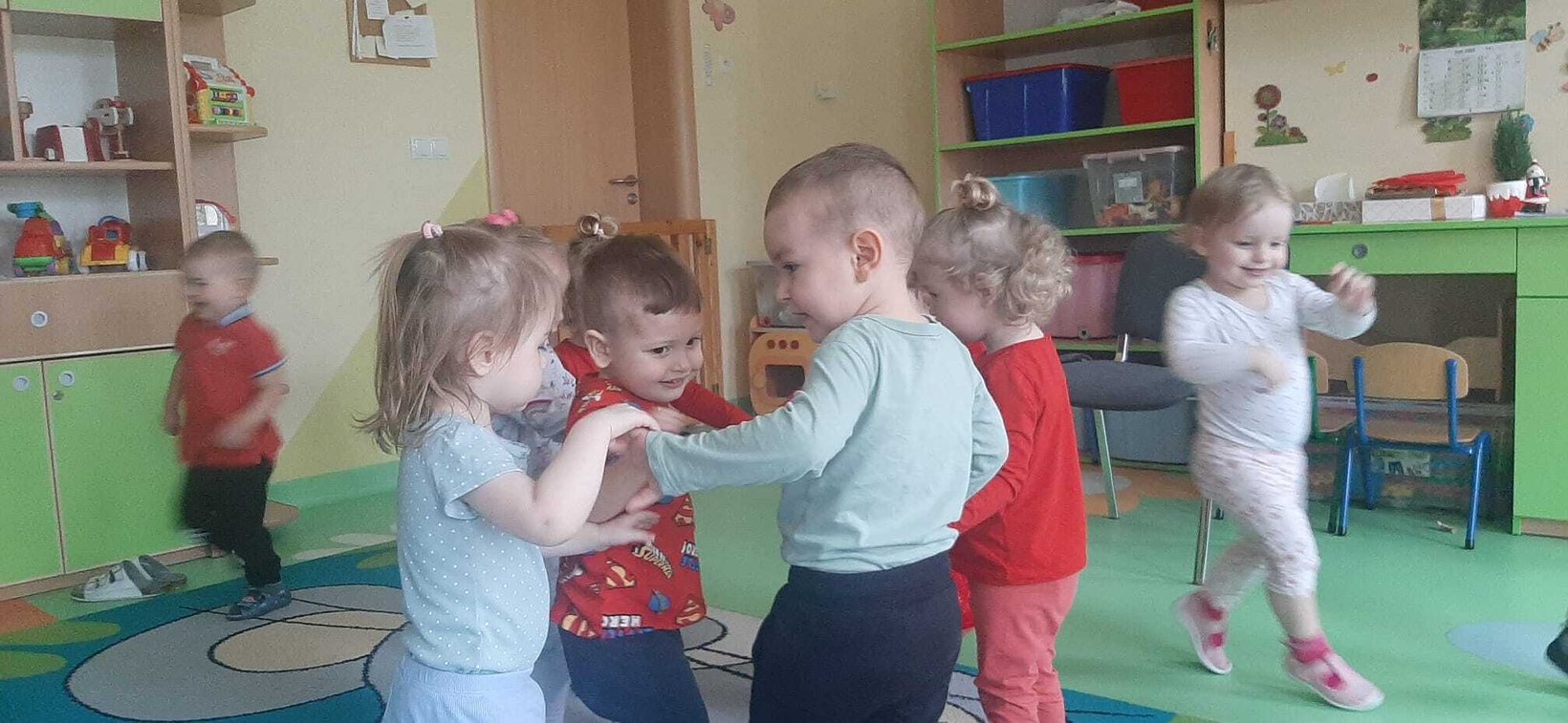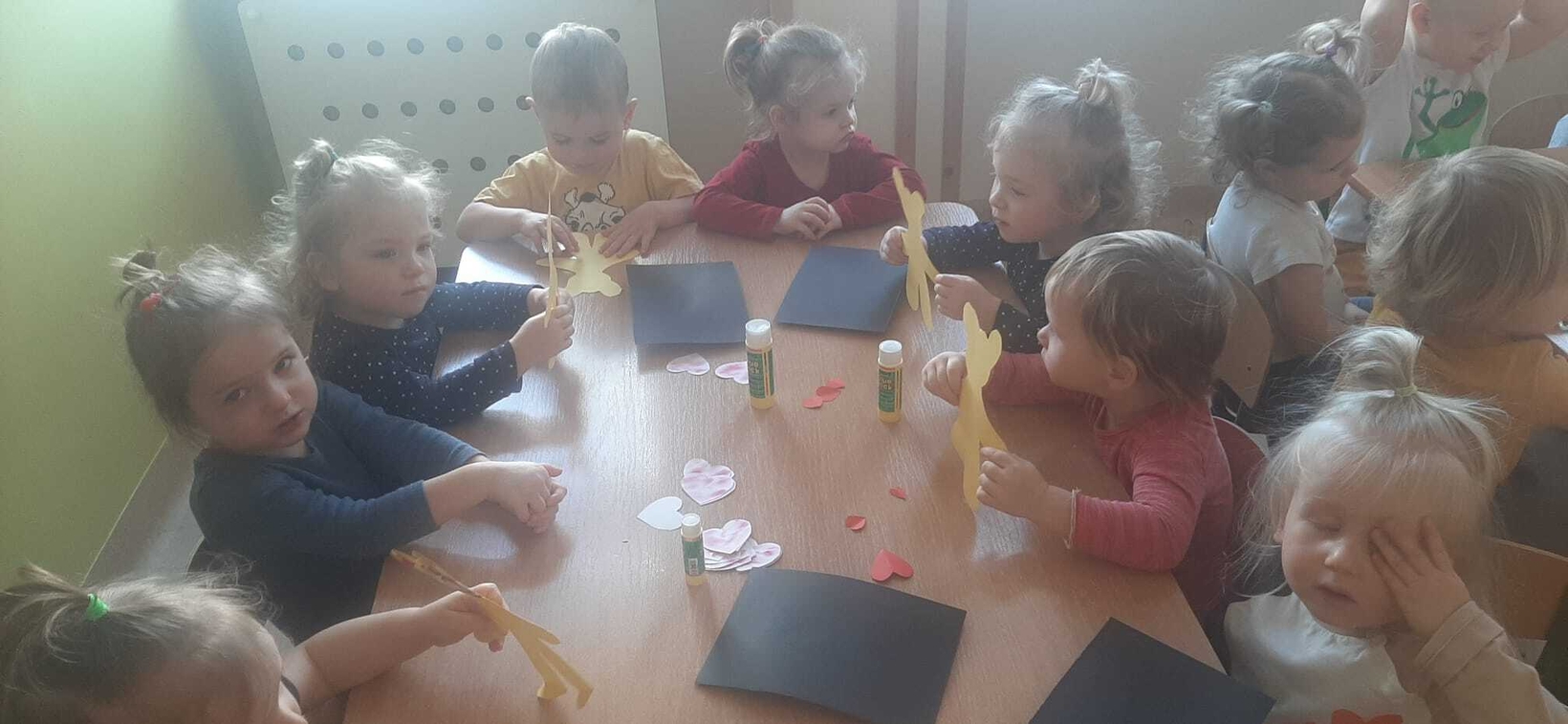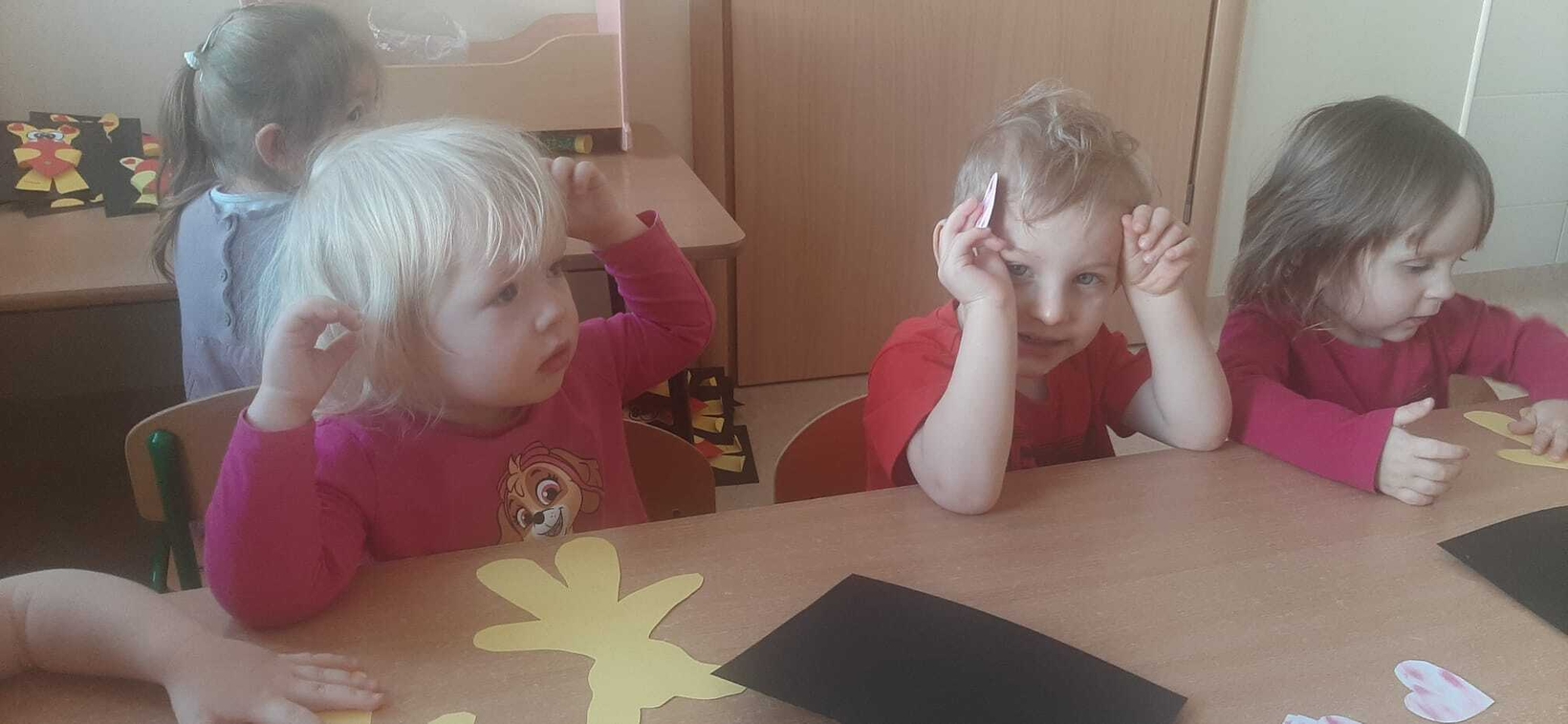 Radosna zabawa taneczna z okazji "WALENTYNEK".Nasze muchomorki w czerwonych strojach bawiły się przy dźwiękach muzyki.Od kilku dni trwały przygotowania do tego święta. Z tej okazji dzieci ozdabiały misia różnego rodzaju serduszkami.