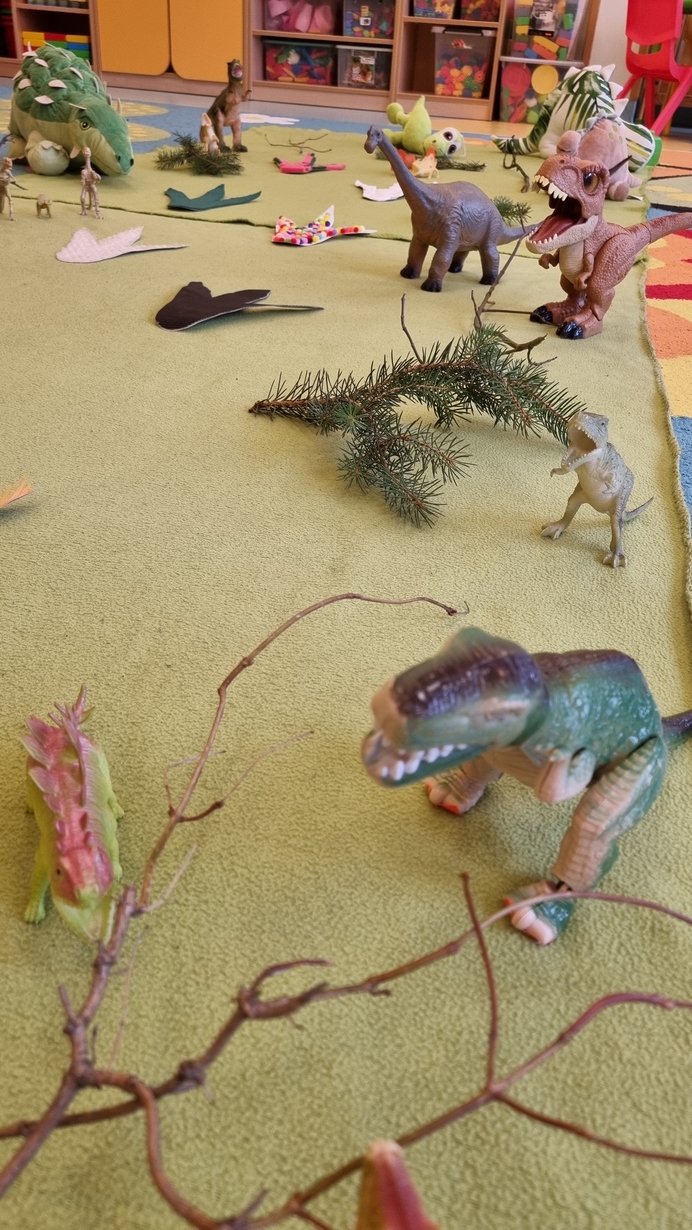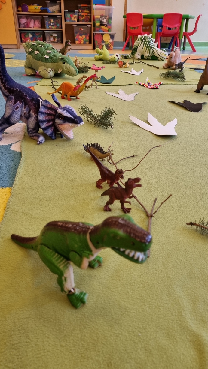 Dzisiaj w naszym żłobku, na grupie "Pszczółek" obchodziliśmy Dzień Dinozaura. Z tej okazji zorganizowaliśmy zajęcia, które wprowadziły dzieci w prehistoryczny świat i przybliżyły im życie tych wyjątkowych gadów. Dzieci dowiedziały się m.in. jak wyglądały, czym się żywiły. Nie zabrakło również ciekawych zabaw ruchowych oraz plastycznych związanych z tematyką zajęć.