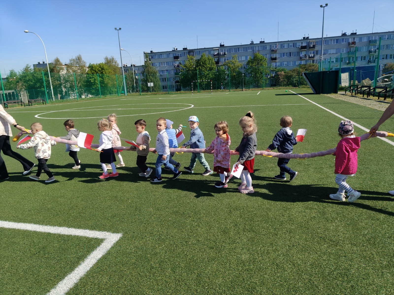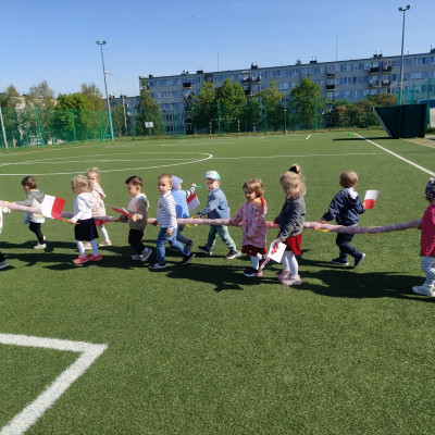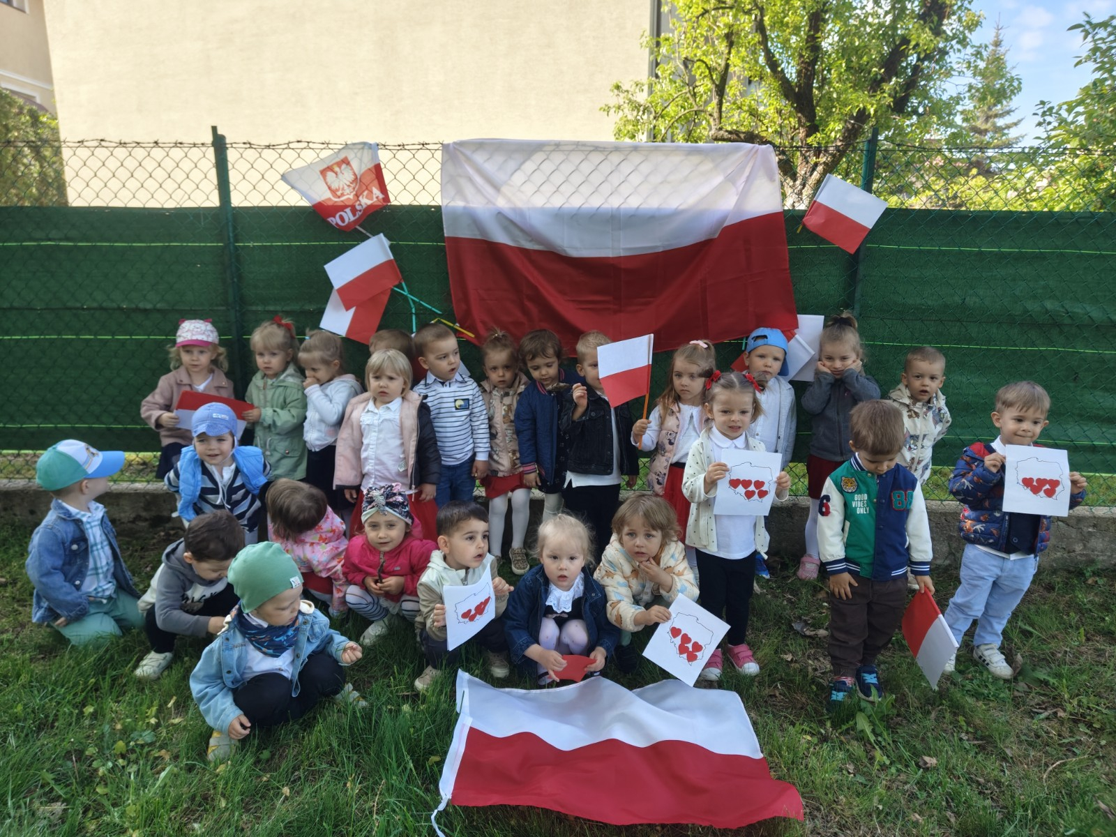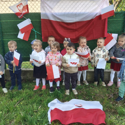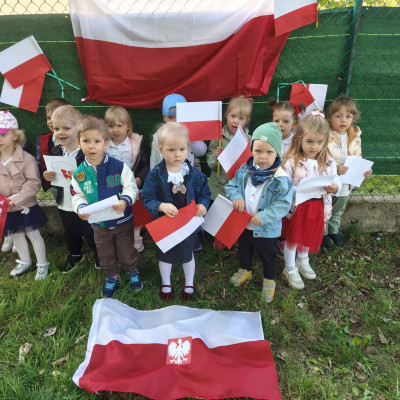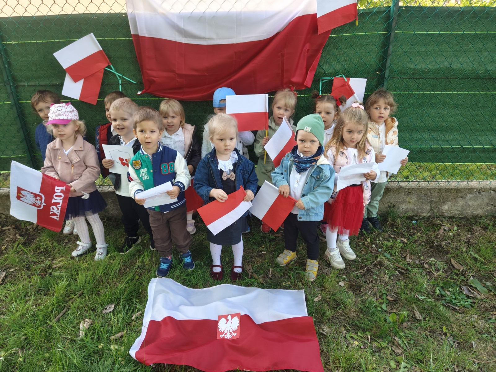 Podczas spaceru dzieci zaśpiewały hymn oraz odbyła się pogadanka na temat polskich symboli narodowych.