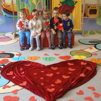 Zdjęcie przedstawia dzieci świętujące Dzień Mamy.