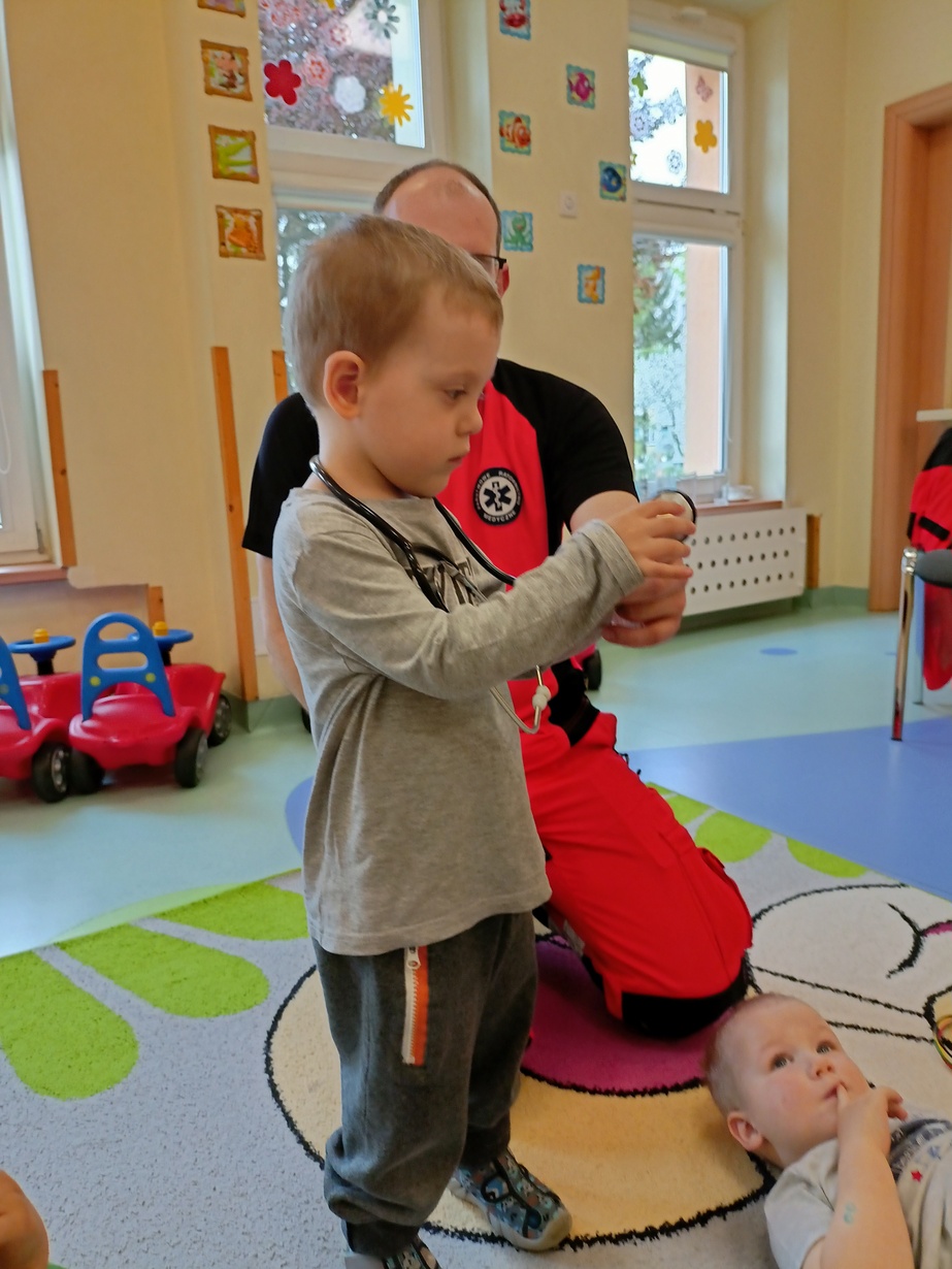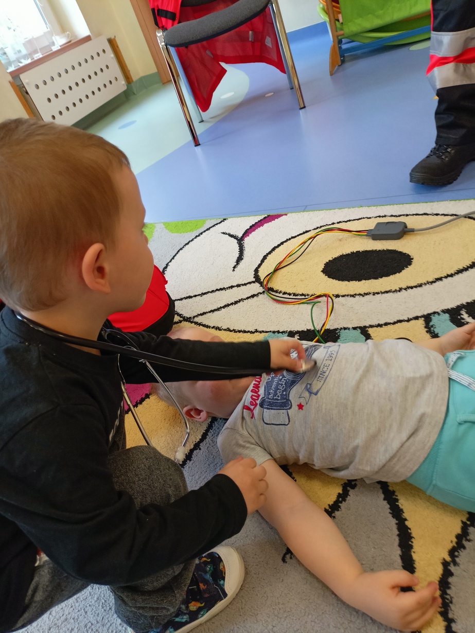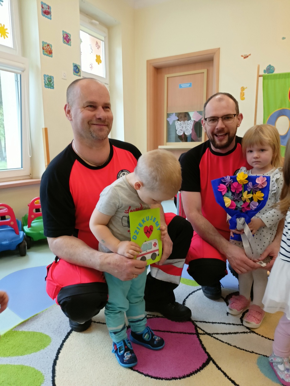 W dniu dzisiejszym obchodziliśmy"Dzień Służby Zdrowia". Na tą okoliczność odwiedzili nas Ratownicy Medyczni,których dzieci powitały piosenką pod tytułem "Numer alarmowy".Dzieci z uwagą słuchały pogadanki na temat pracy ratowników.Chetnie oglądały karetkę i sprzęt medyczny.Pozowały do zdjęć? jak również wcielały się w rolę ratownik-pacjet.Na zakończenie dzieci wręczyły laurki w zamian dostały dyplomy i naklejki?.
