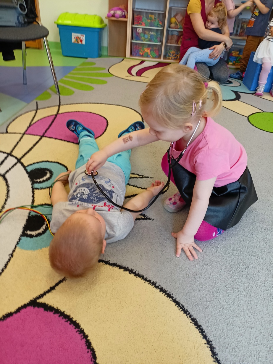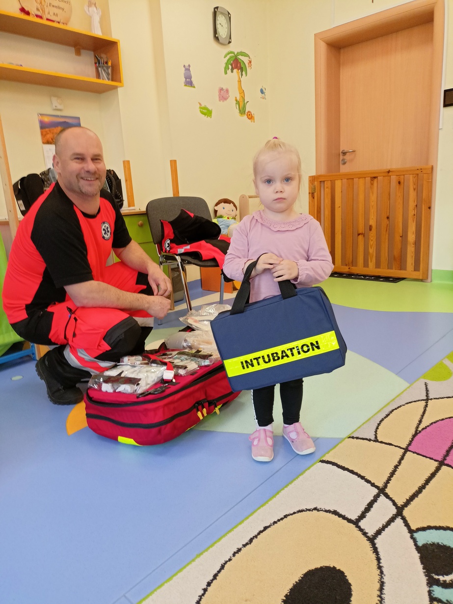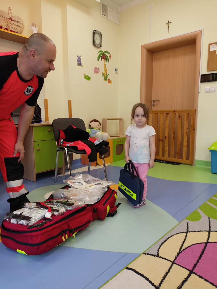 W dniu dzisiejszym obchodziliśmy"Dzień Służby Zdrowia". Na tą okoliczność odwiedzili nas Ratownicy Medyczni,których dzieci powitały piosenką pod tytułem "Numer alarmowy".Dzieci z uwagą słuchały pogadanki na temat pracy ratowników.Chetnie oglądały karetkę i sprzęt medyczny.Pozowały do zdjęć? jak również wcielały się w rolę ratownik-pacjet.Na zakończenie dzieci wręczyły laurki w zamian dostały dyplomy i naklejki?.