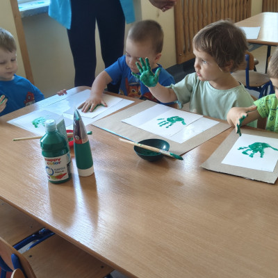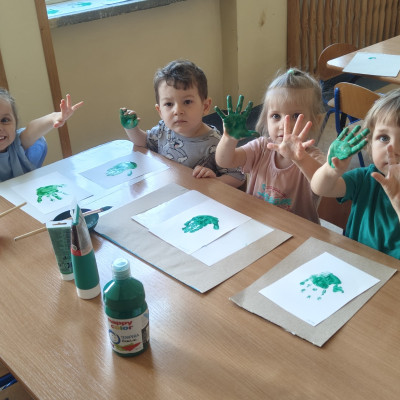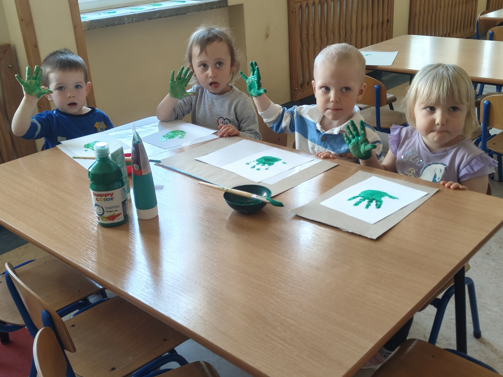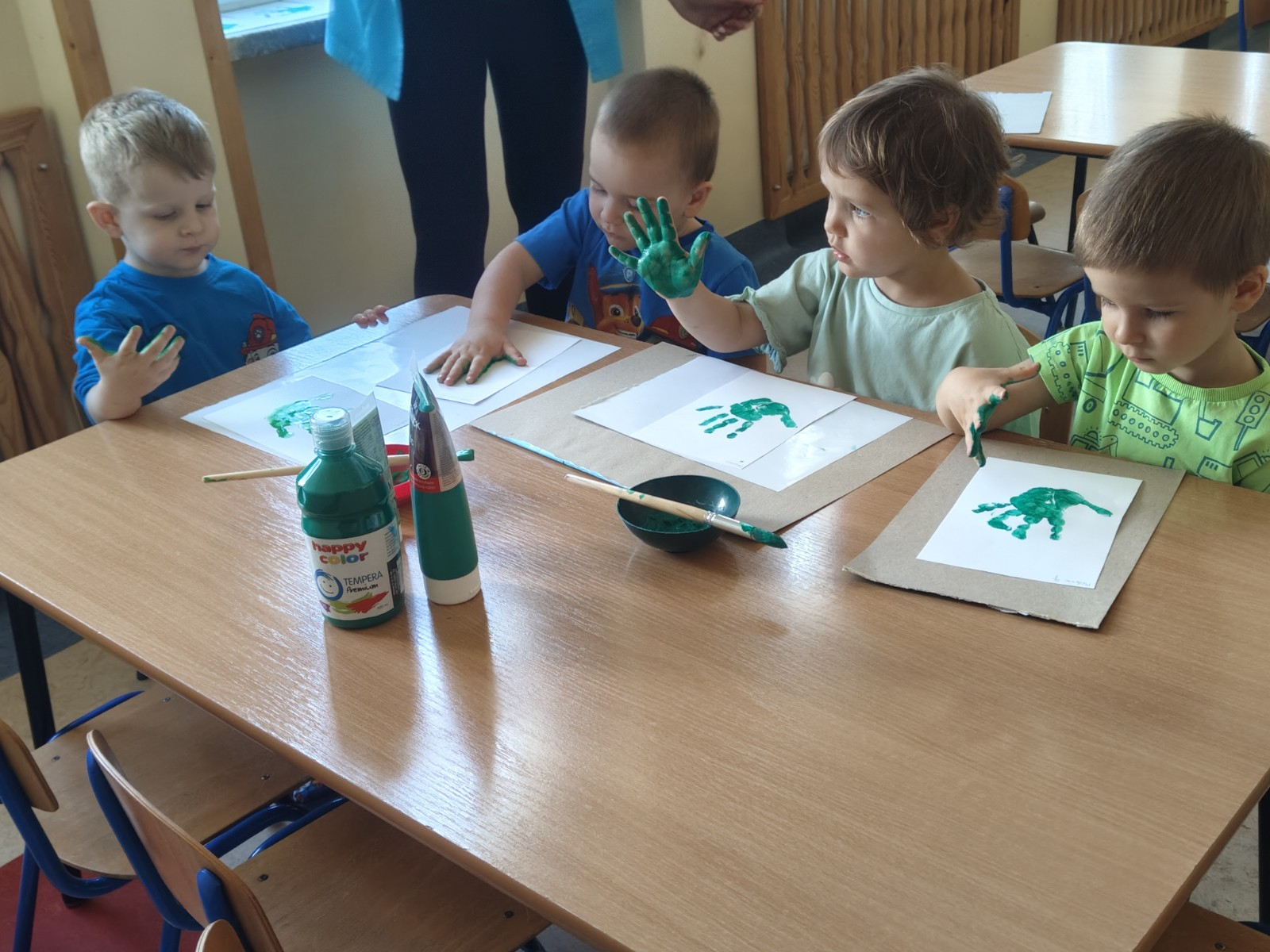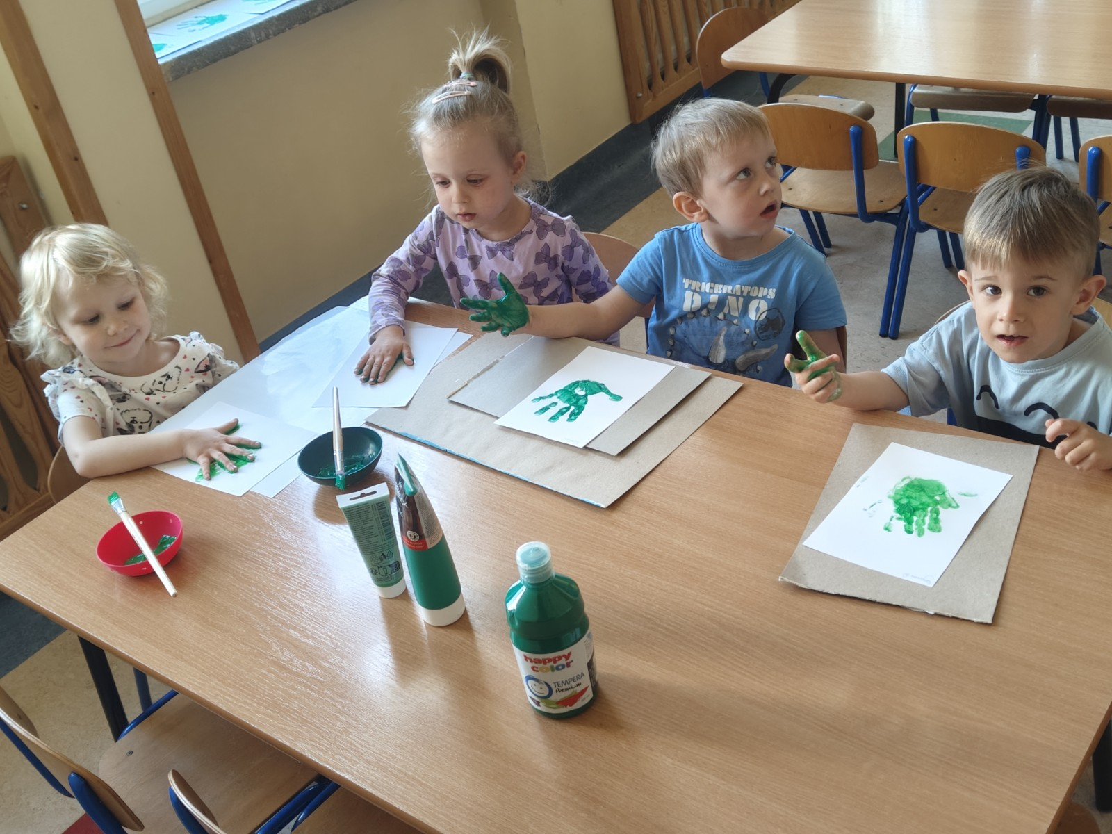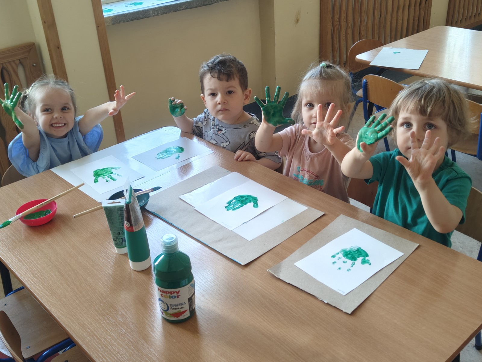 Zdjęcie przedstawia dzieci wykonujące pracę plastyczną