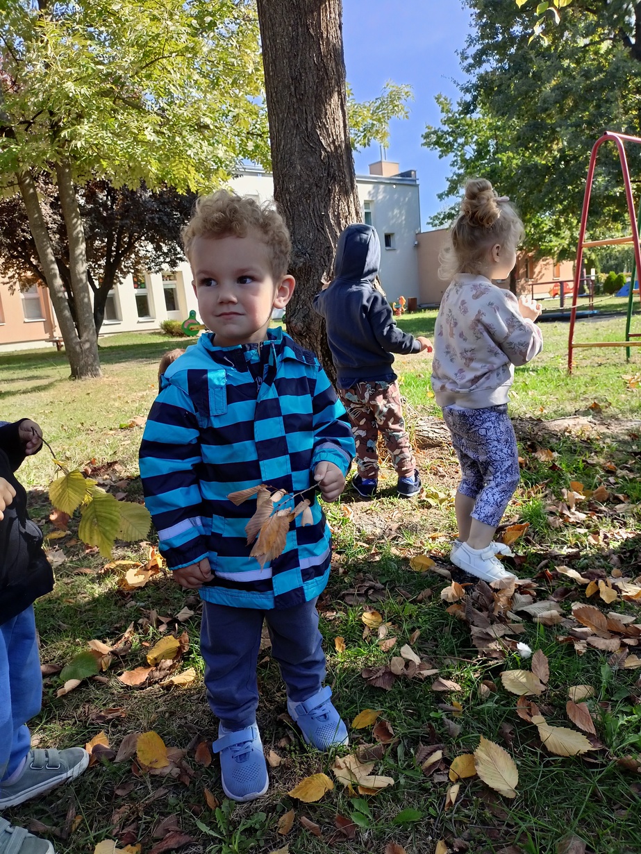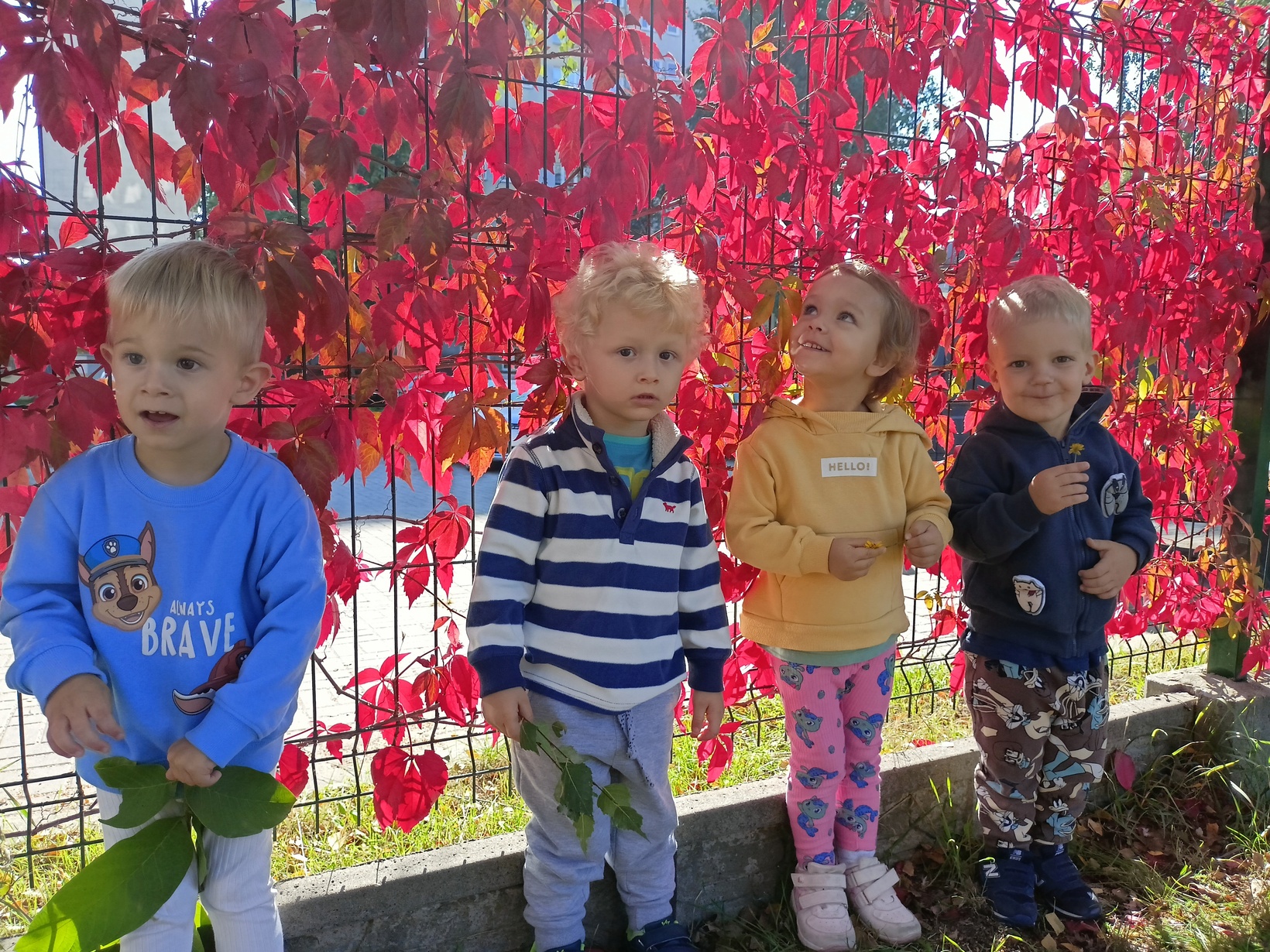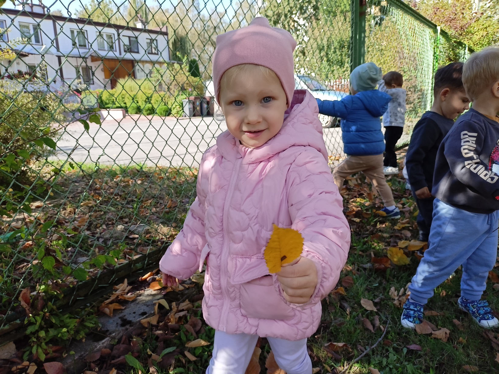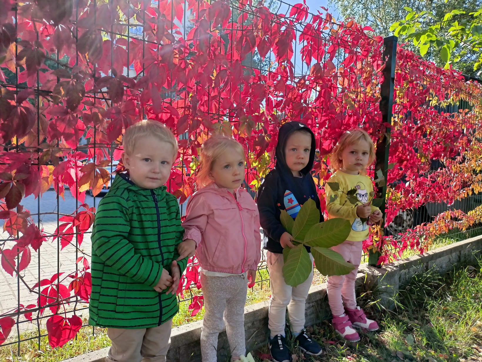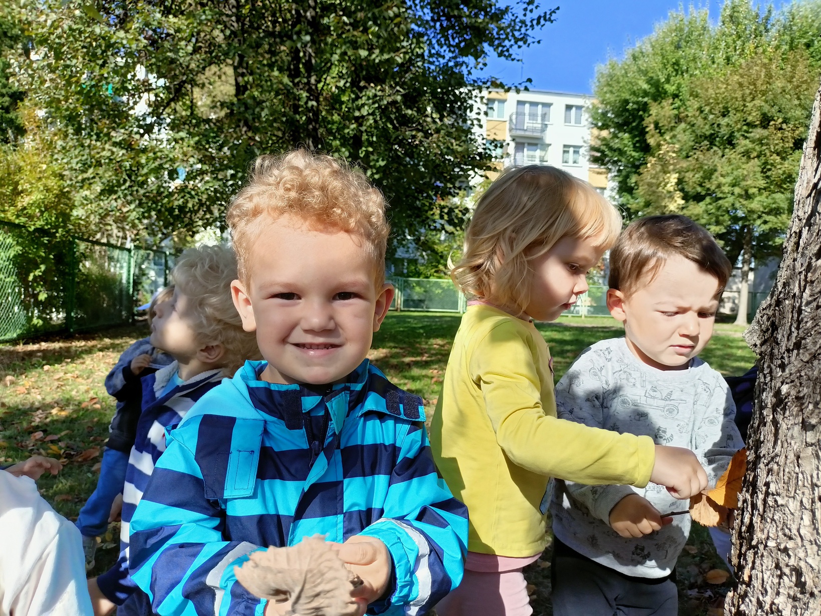 Pszczółki cieszą się słonecznym, jesiennym dniem. Korzystając z pięknej pogody spacerujemy po terenie naszego żłobka.