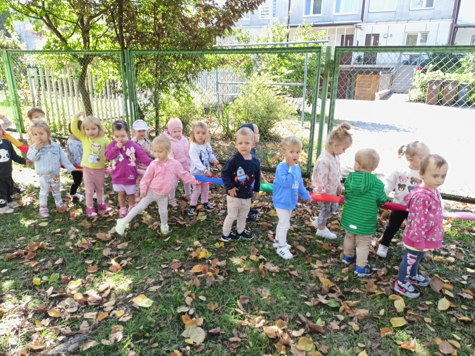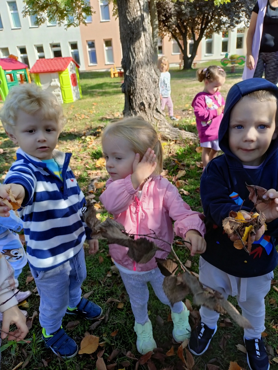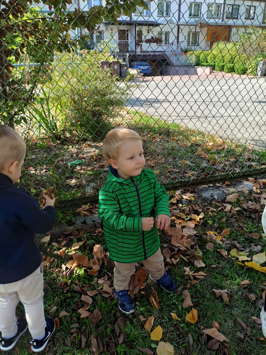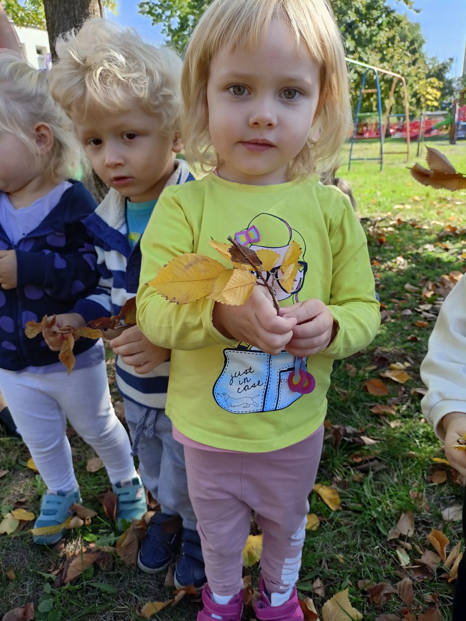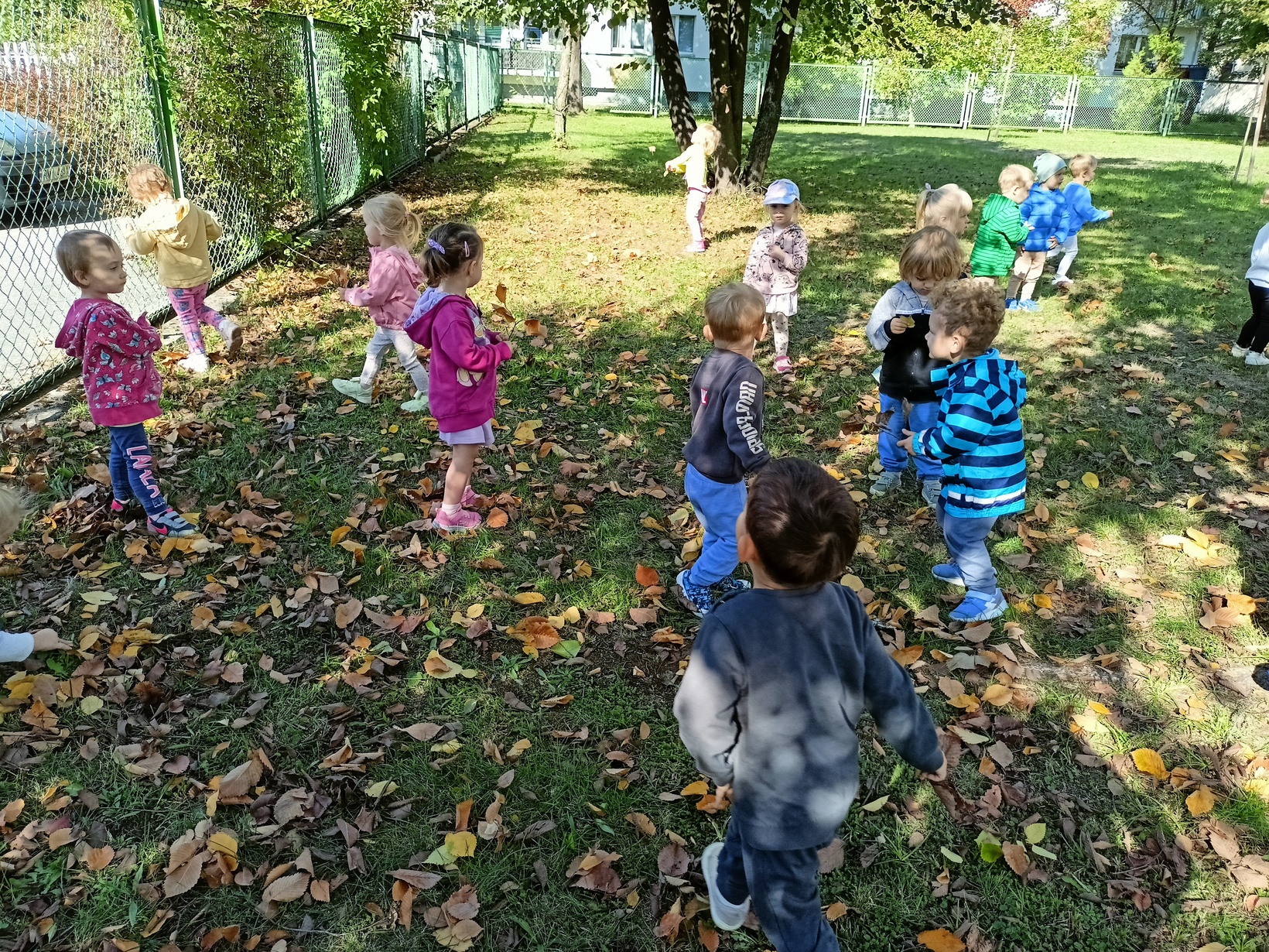 Pszczółki cieszą się słonecznym, jesiennym dniem. Korzystając z pięknej pogody spacerujemy po terenie naszego żłobka.