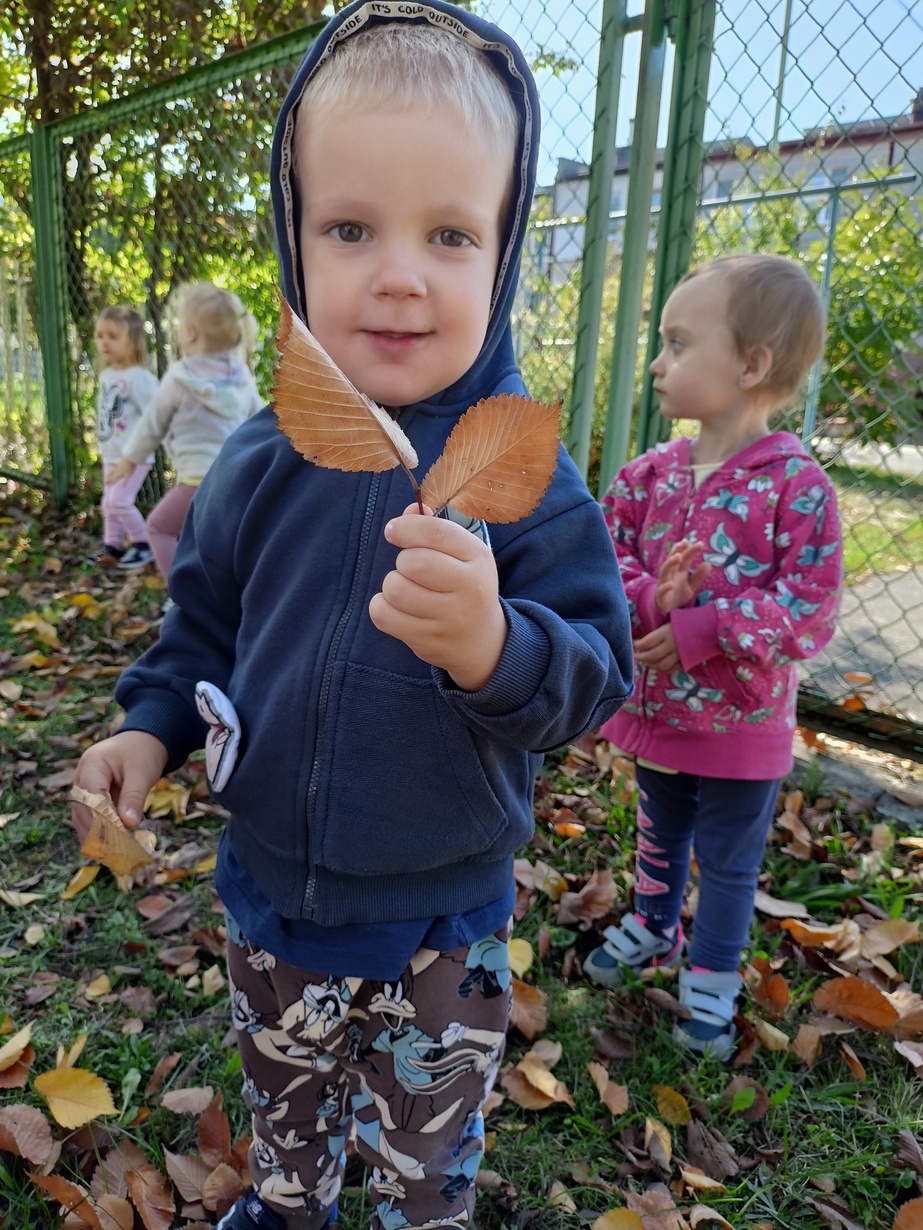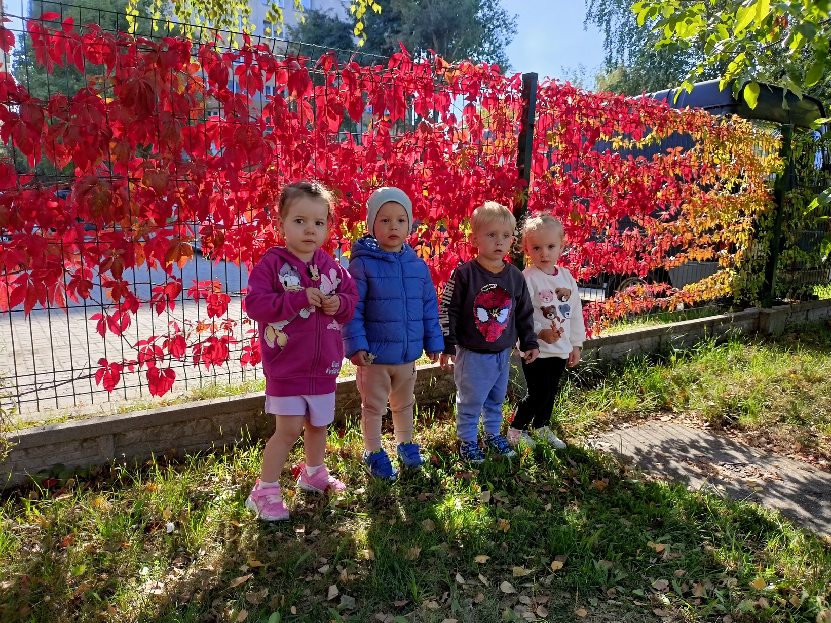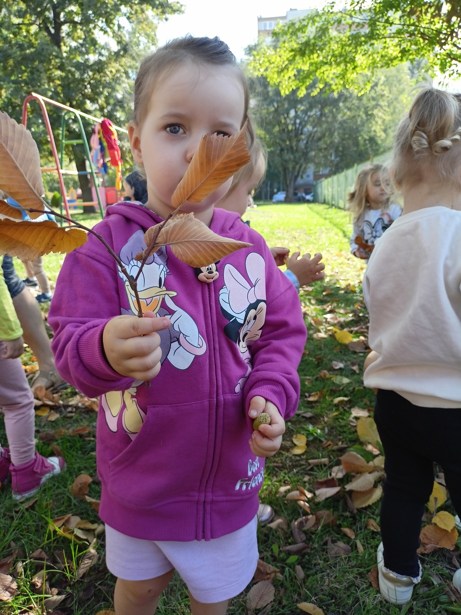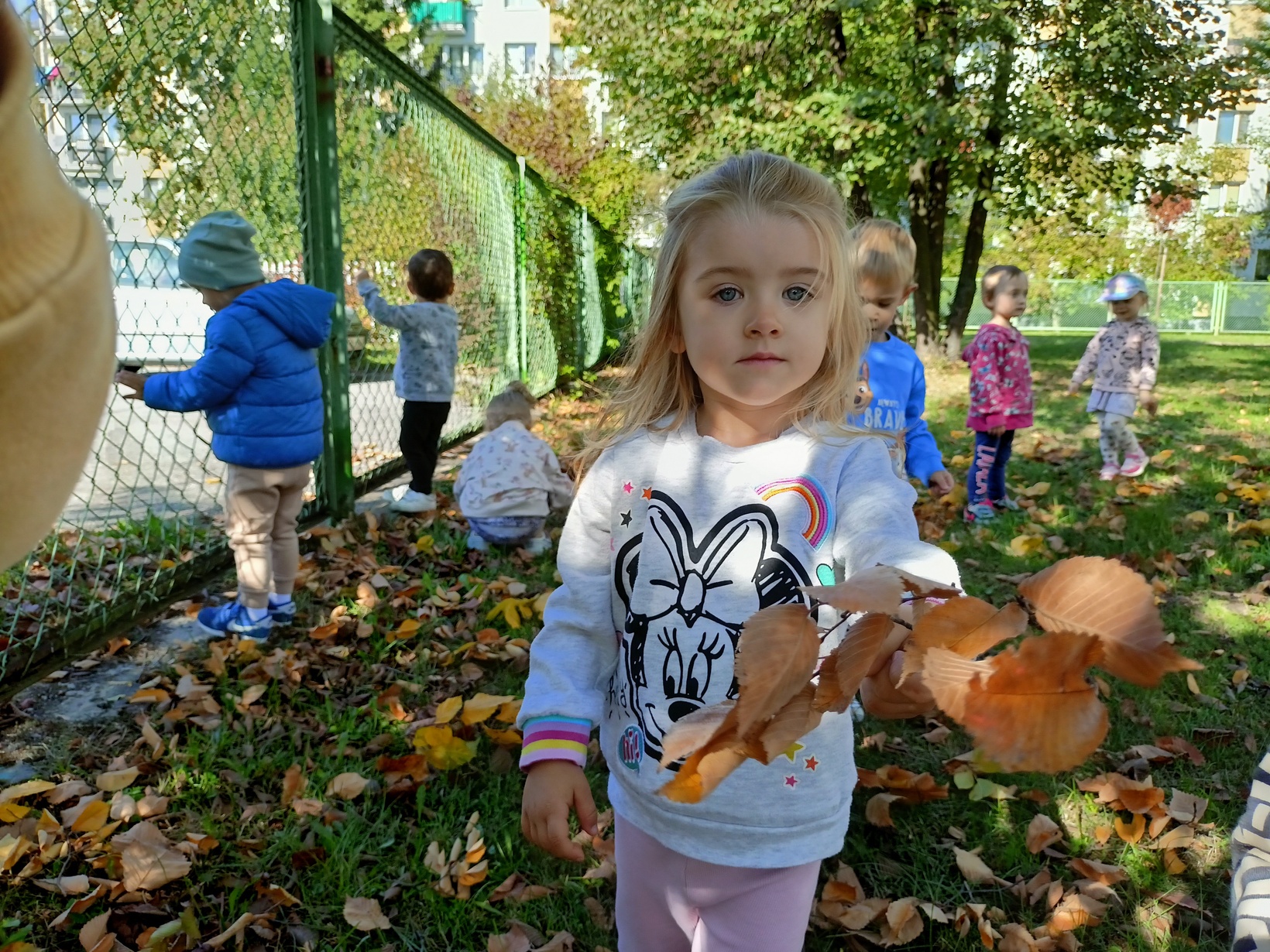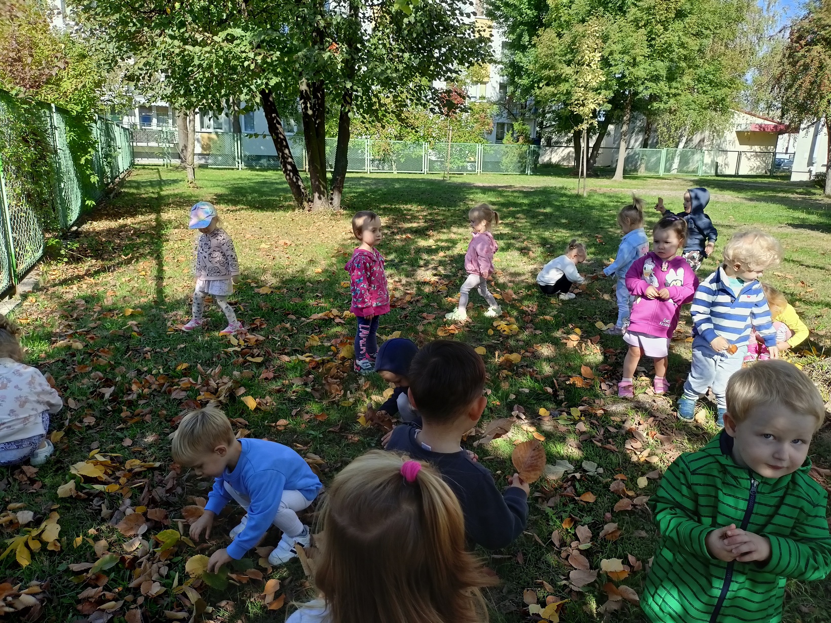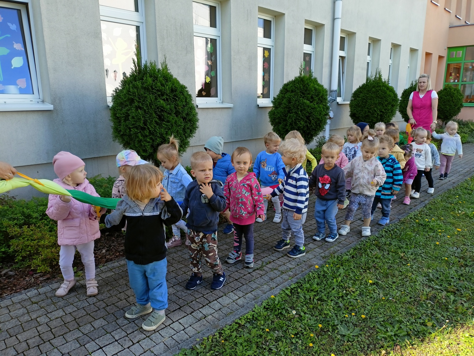 Pszczółki cieszą się słonecznym, jesiennym dniem. Korzystając z pięknej pogody spacerujemy po terenie naszego żłobka.