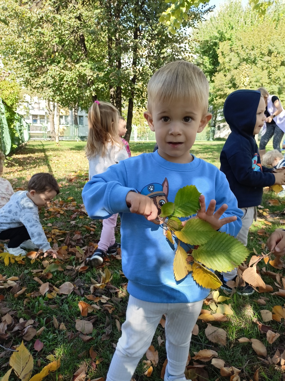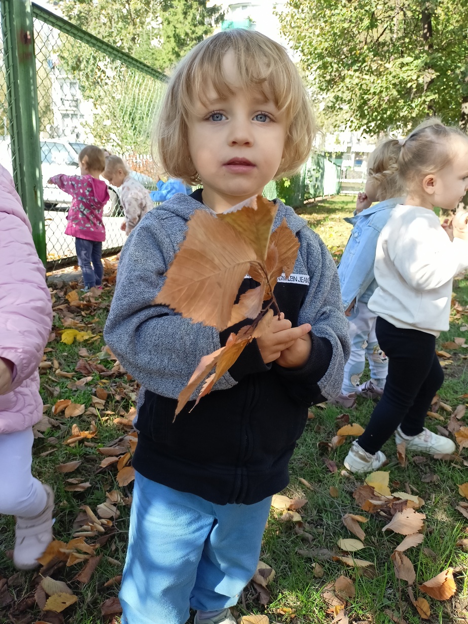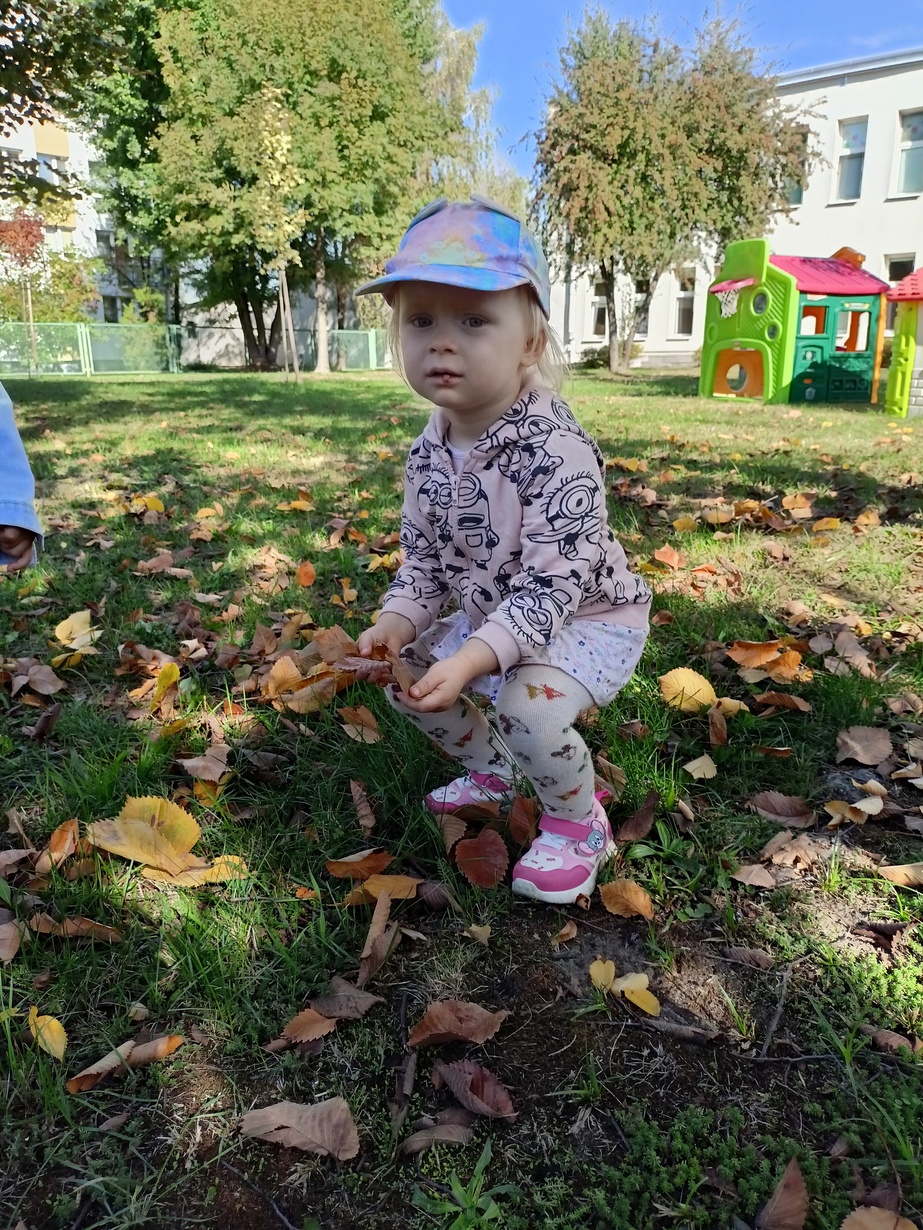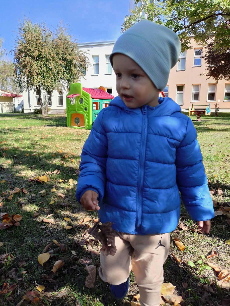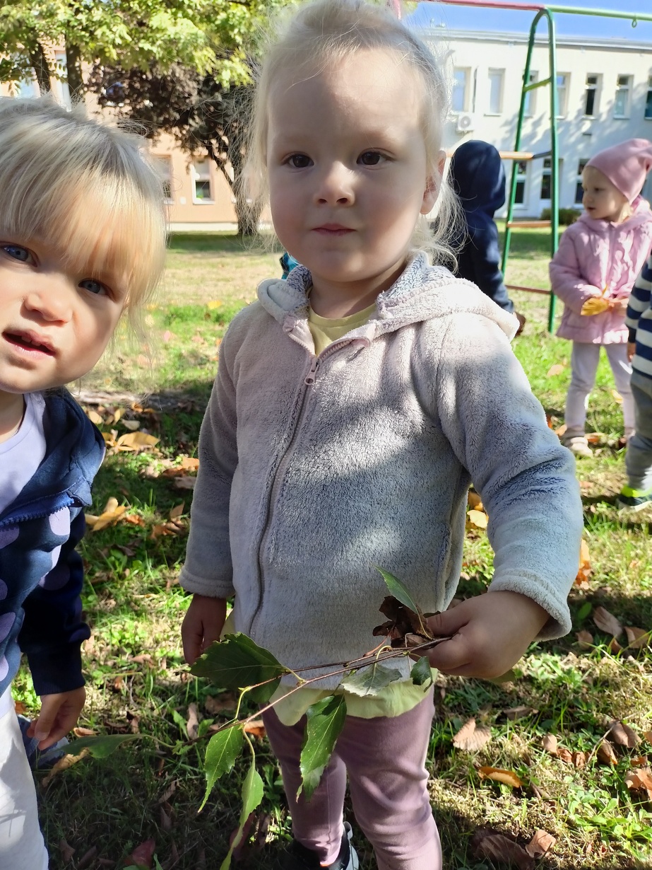 Pszczółki cieszą się słonecznym, jesiennym dniem. Korzystając z pięknej pogody spacerujemy po terenie naszego żłobka.