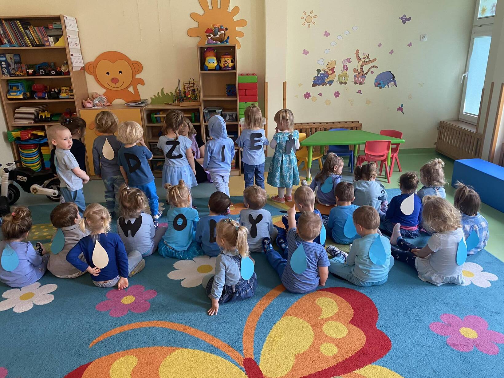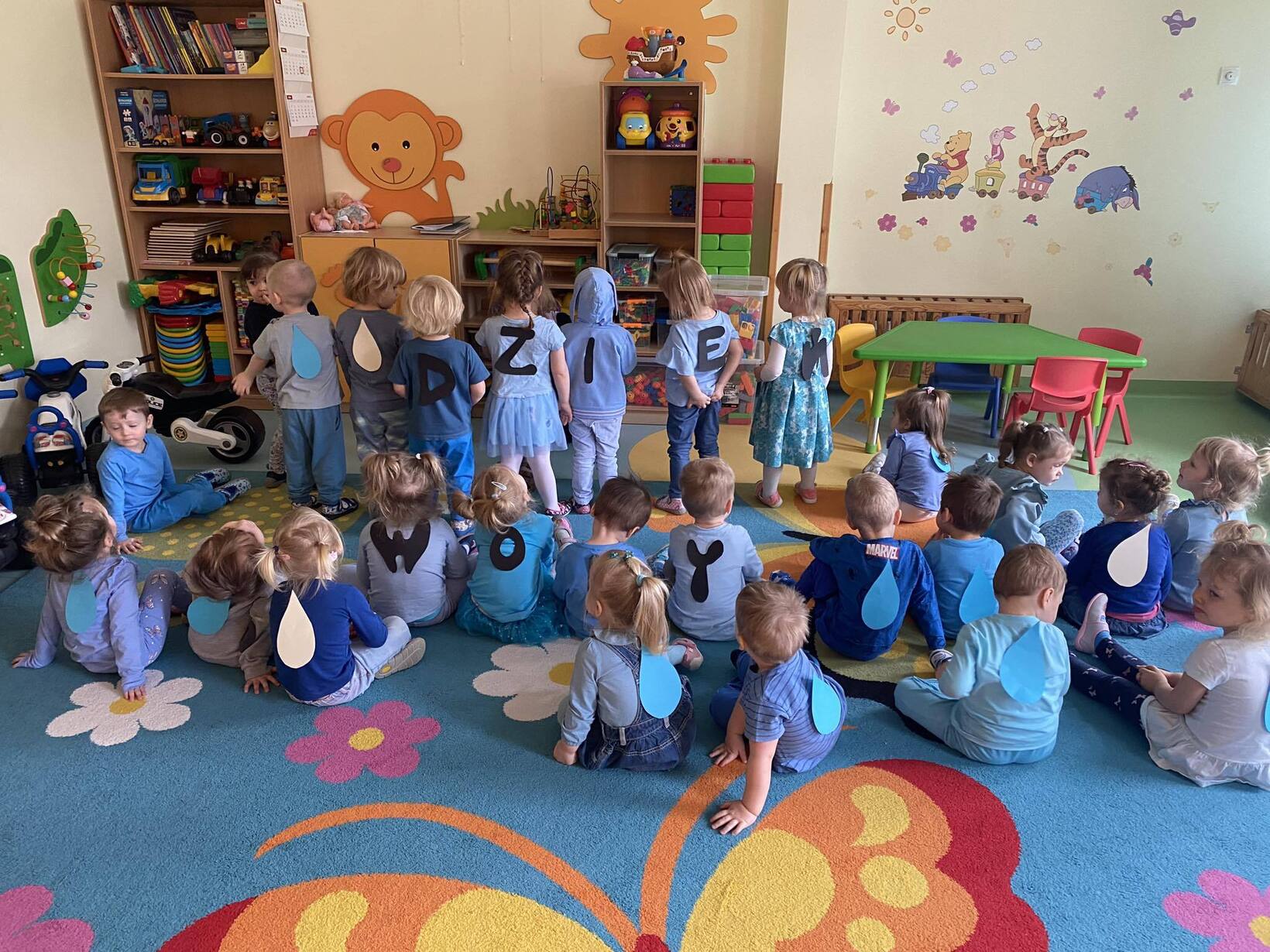 Każde dziecko przyniosło swoją butelkę wody. Dzieci z uwagą słuchały tych informacji a na koniec były zabawy i kropelkowe tańce ?.