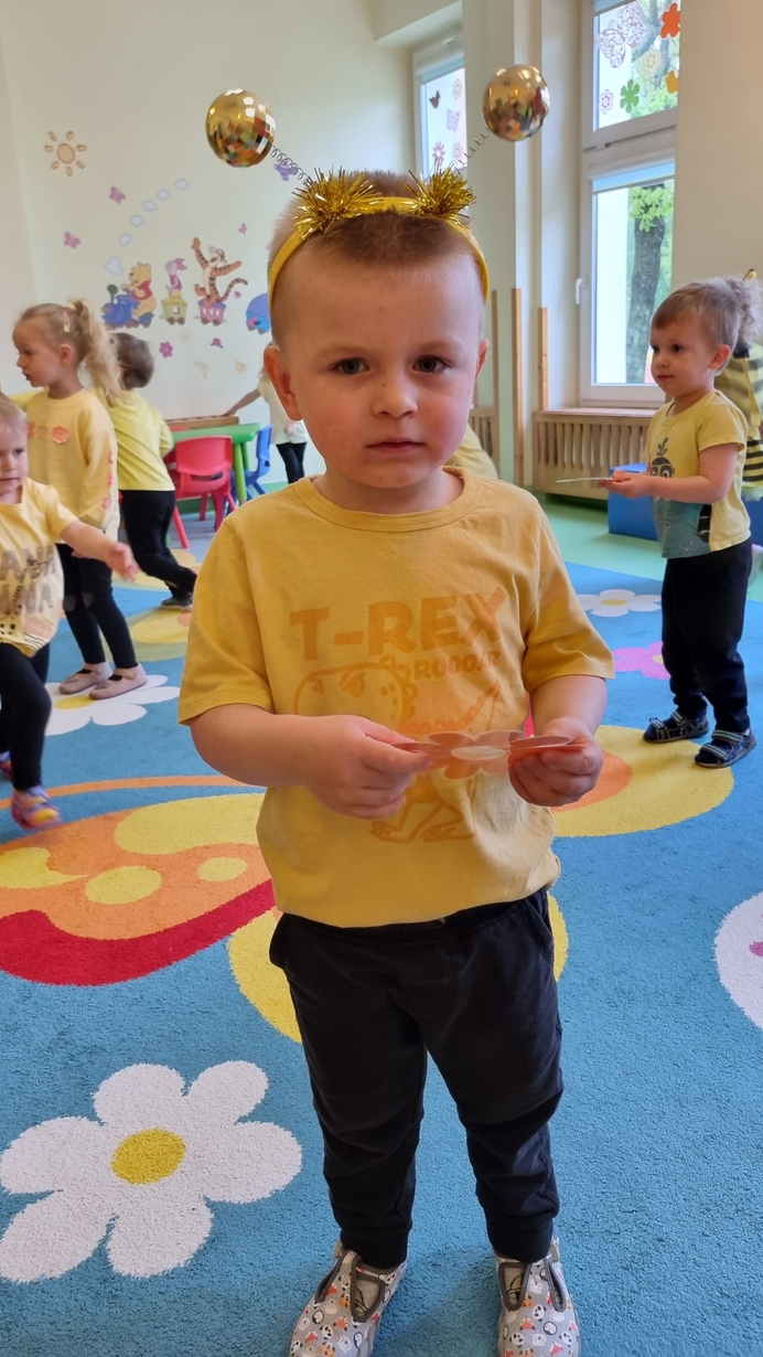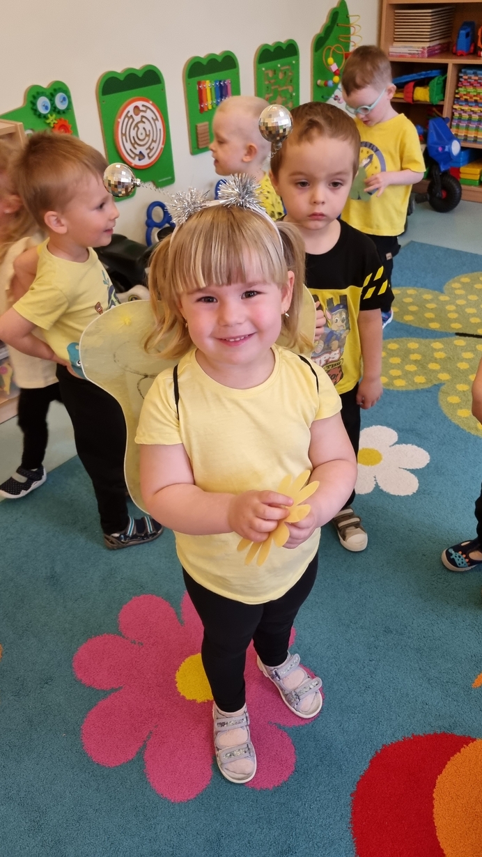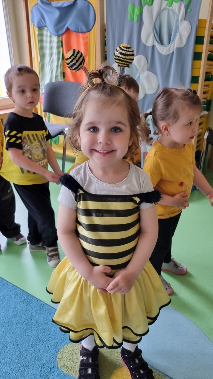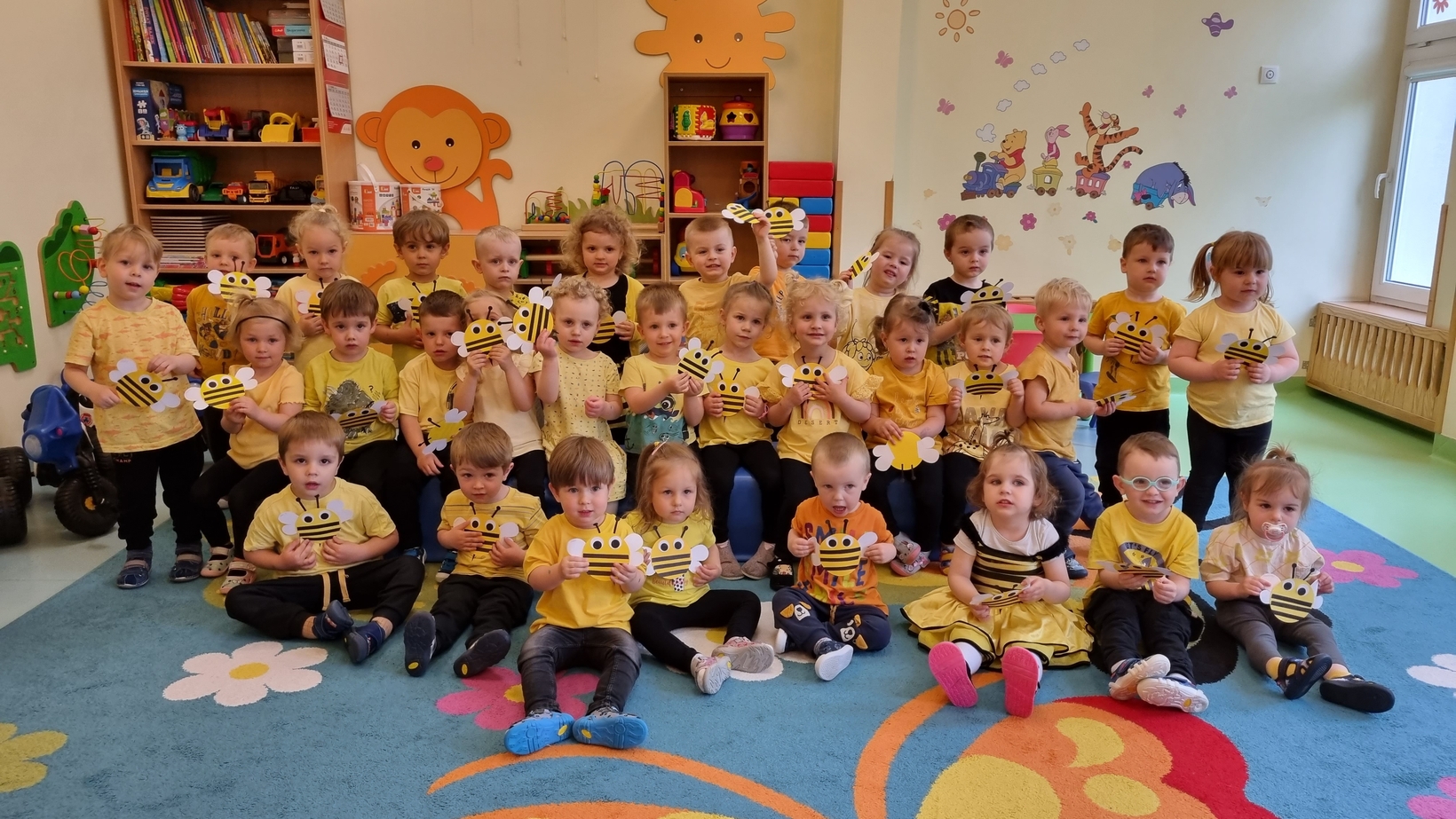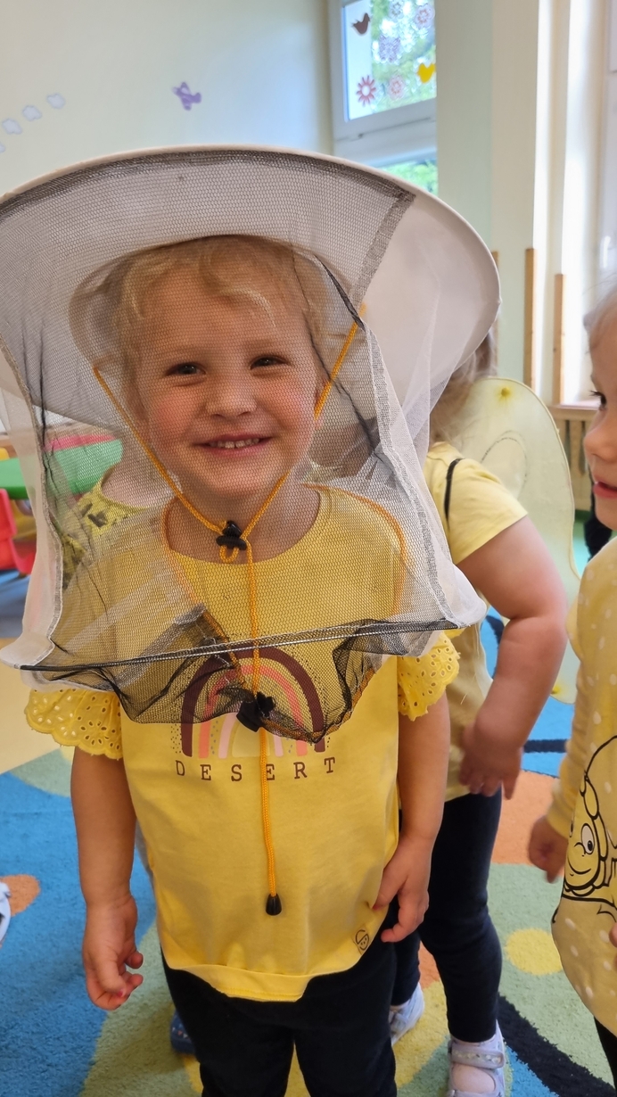 Dzisiaj na naszej grupie obchodziliśmy "Światowy Dzień Pszczół". Z tej okazji zostały przeprowadzone zajęcia, których celem było budzenie świadomości u dzieci o pożyteczności pszczół. Dzieci dowiedziały się jak wygląda praca pszczelarza i pszczół. Na koniec wspólnie z wielkim zaangażowaniem wykonaliśmy prace plastyczną.