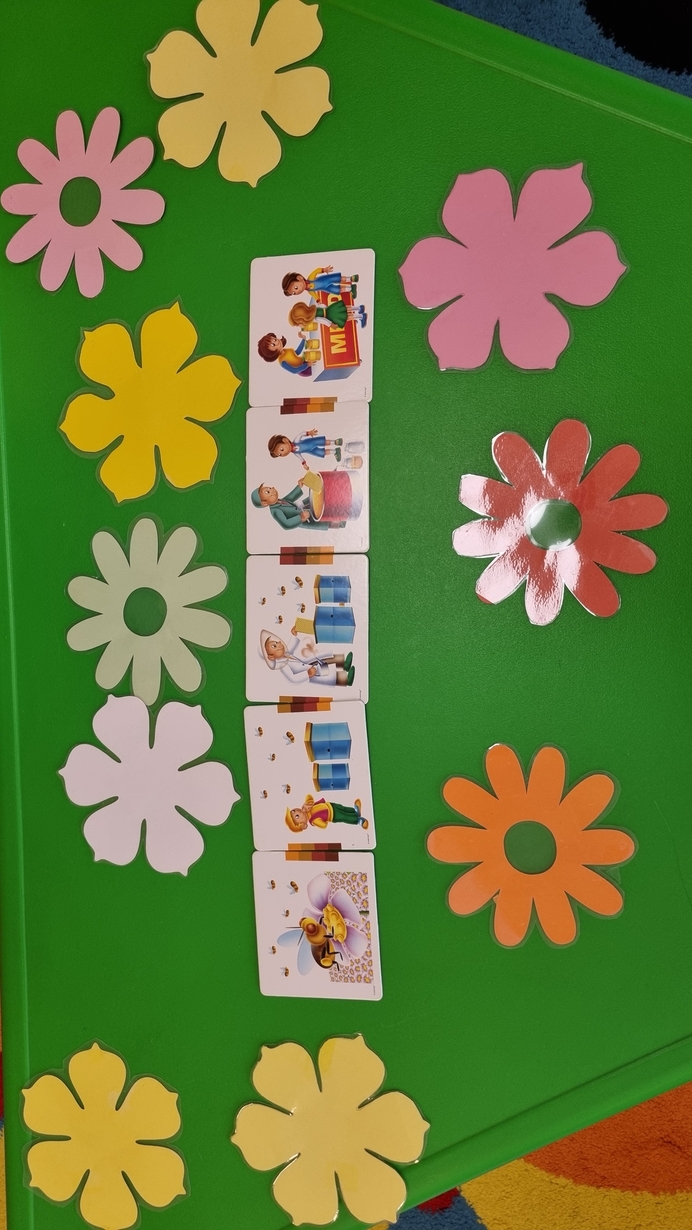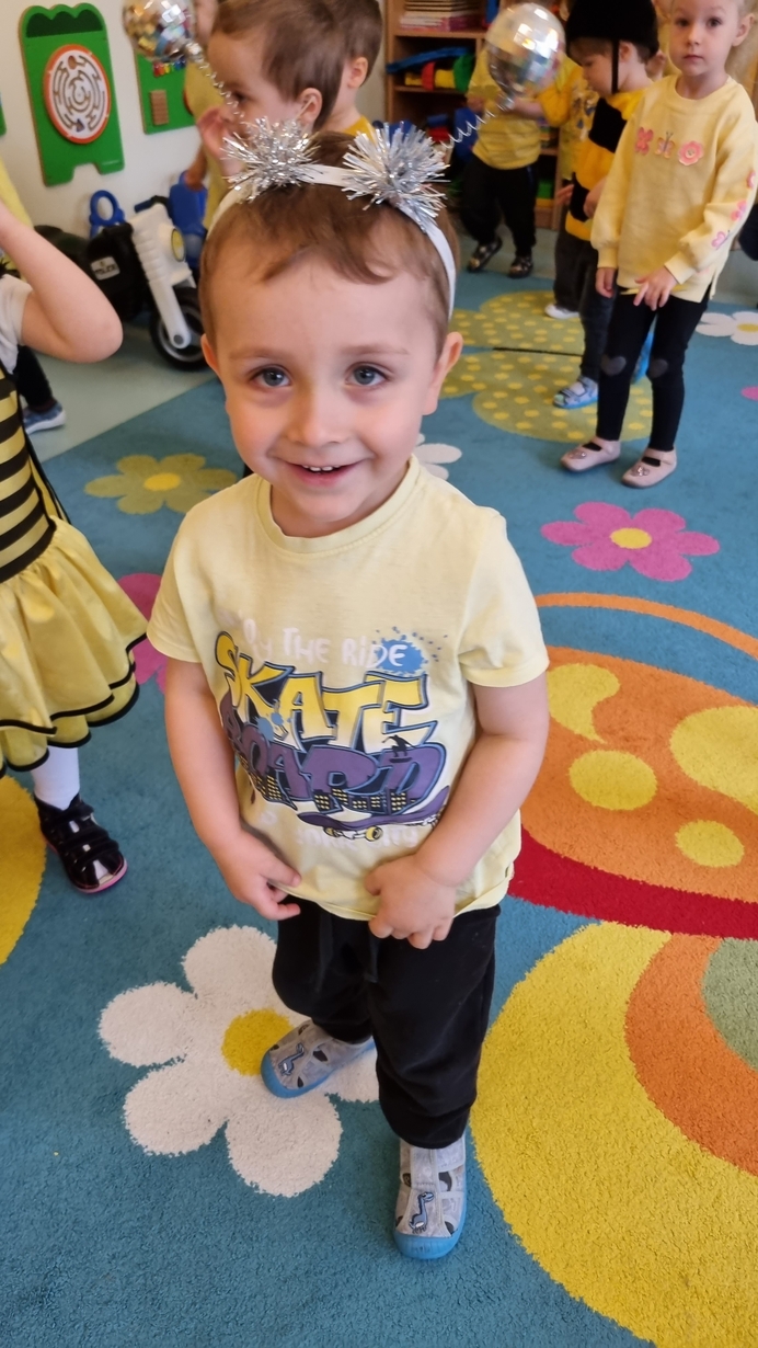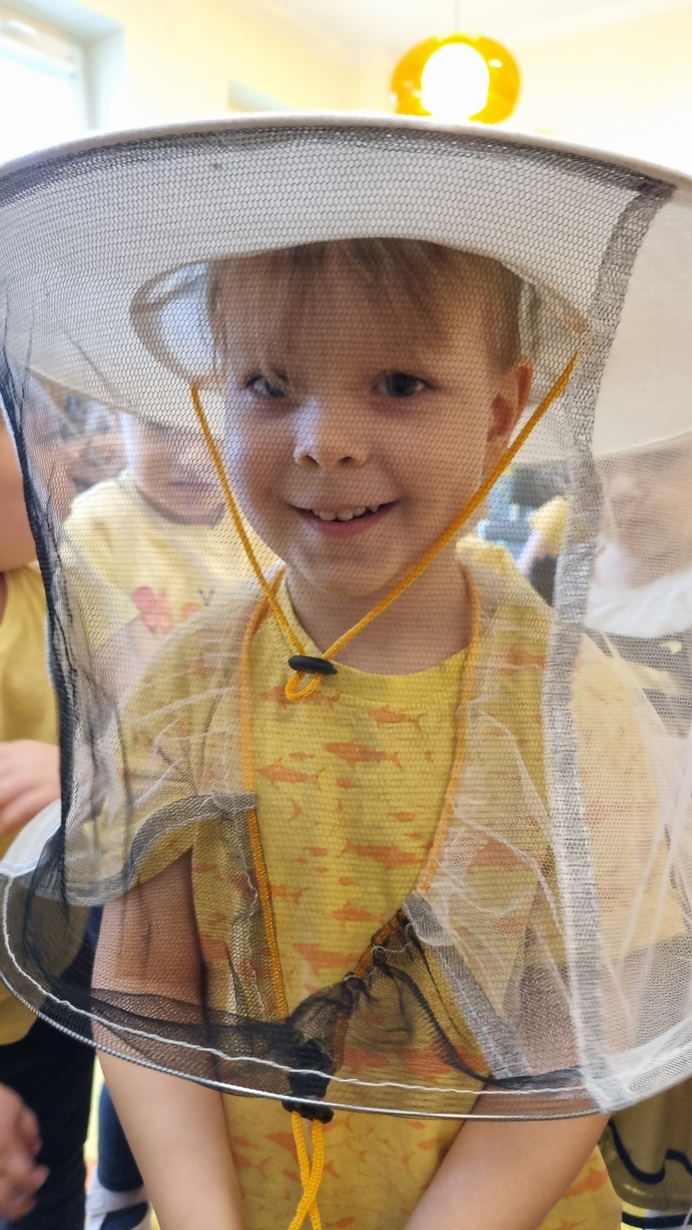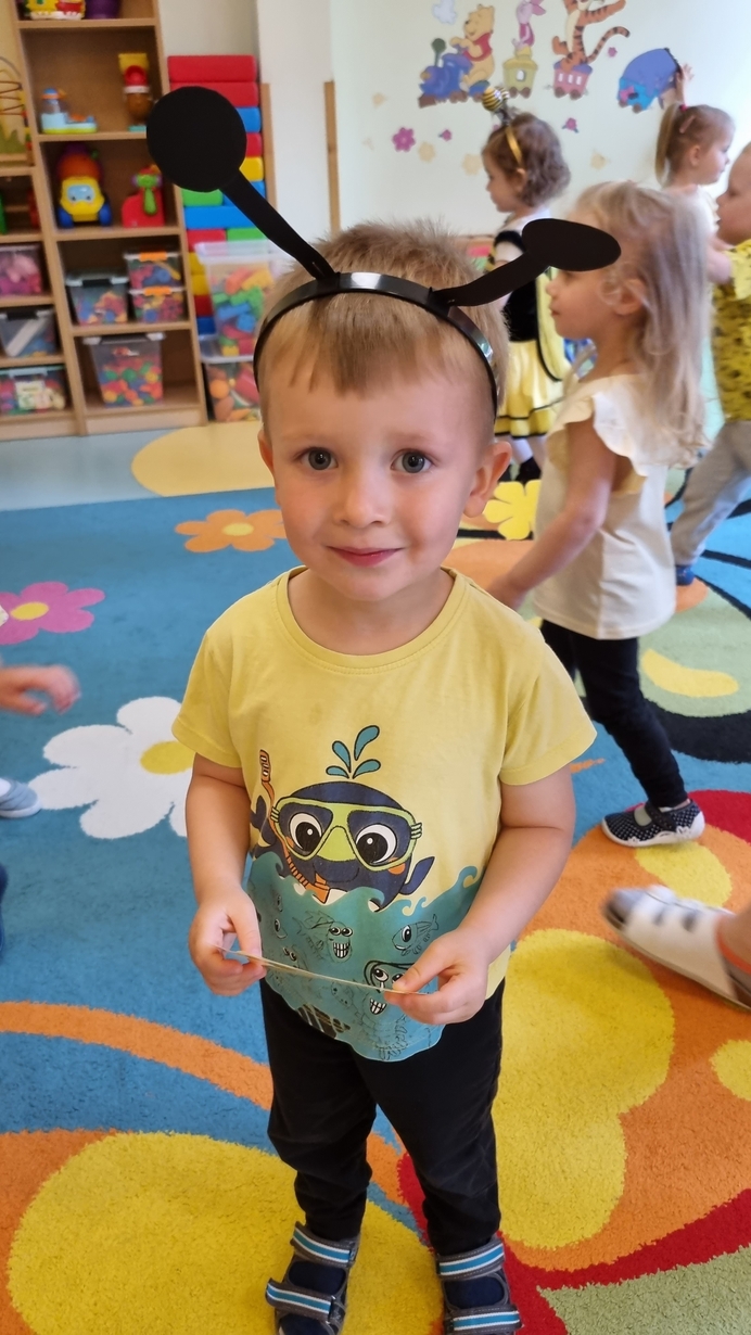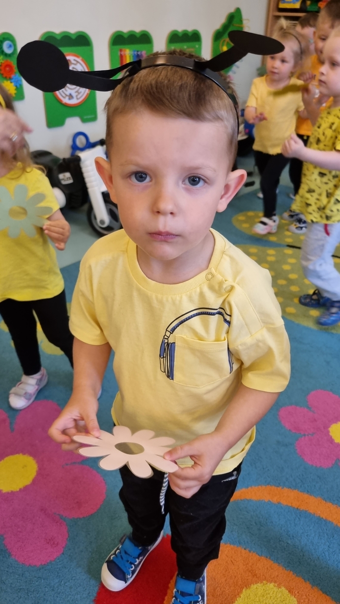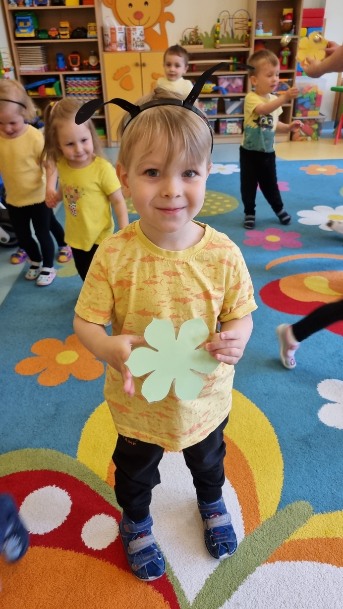 Dzisiaj na naszej grupie obchodziliśmy "Światowy Dzień Pszczół". Z tej okazji zostały przeprowadzone zajęcia, których celem było budzenie świadomości u dzieci o pożyteczności pszczół. Dzieci dowiedziały się jak wygląda praca pszczelarza i pszczół. Na koniec wspólnie z wielkim zaangażowaniem wykonaliśmy prace plastyczną.