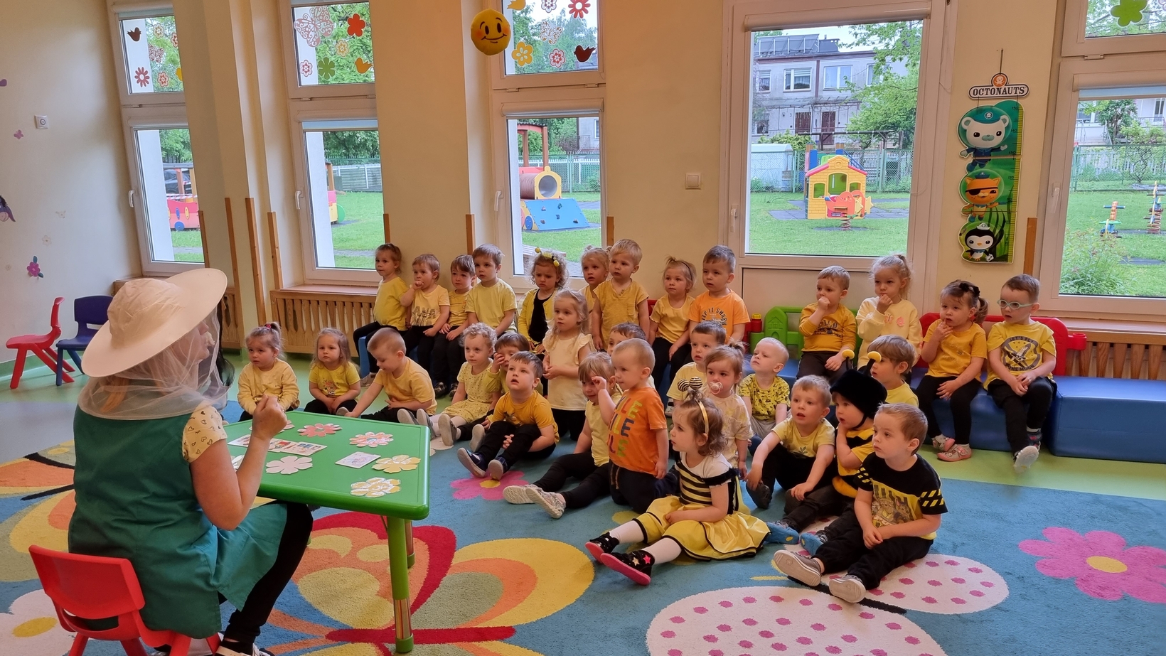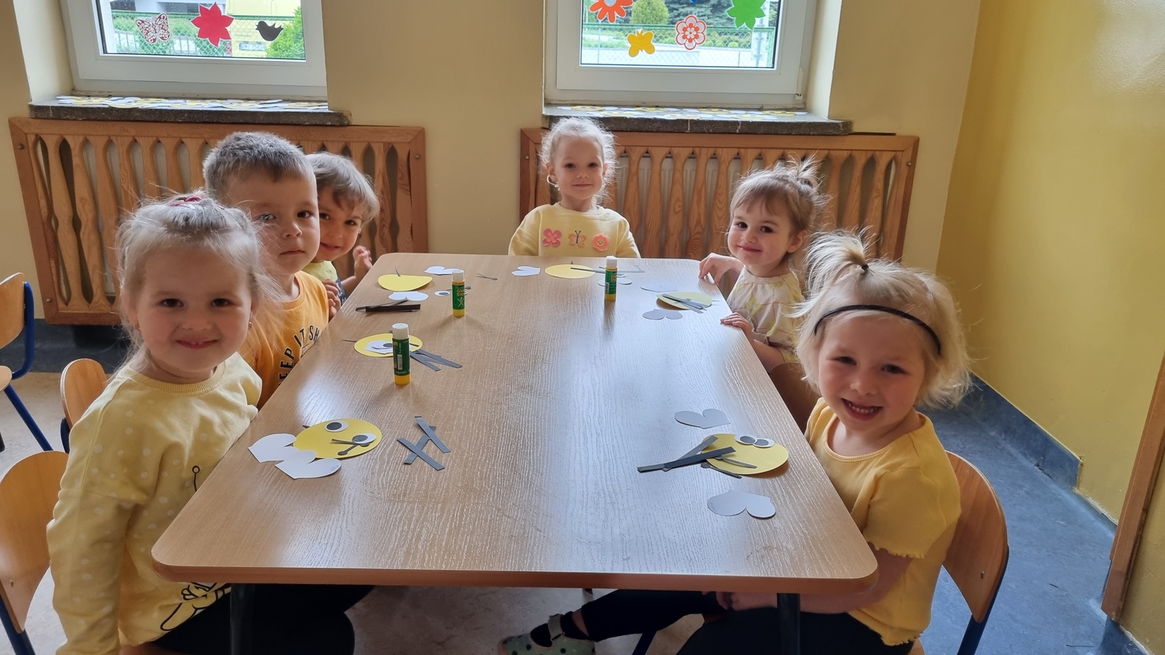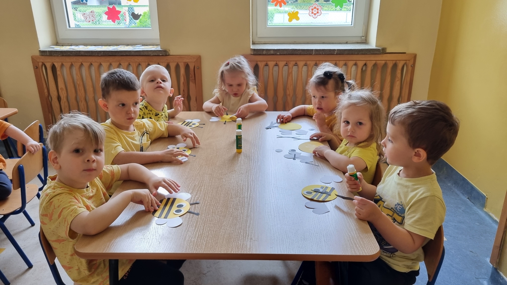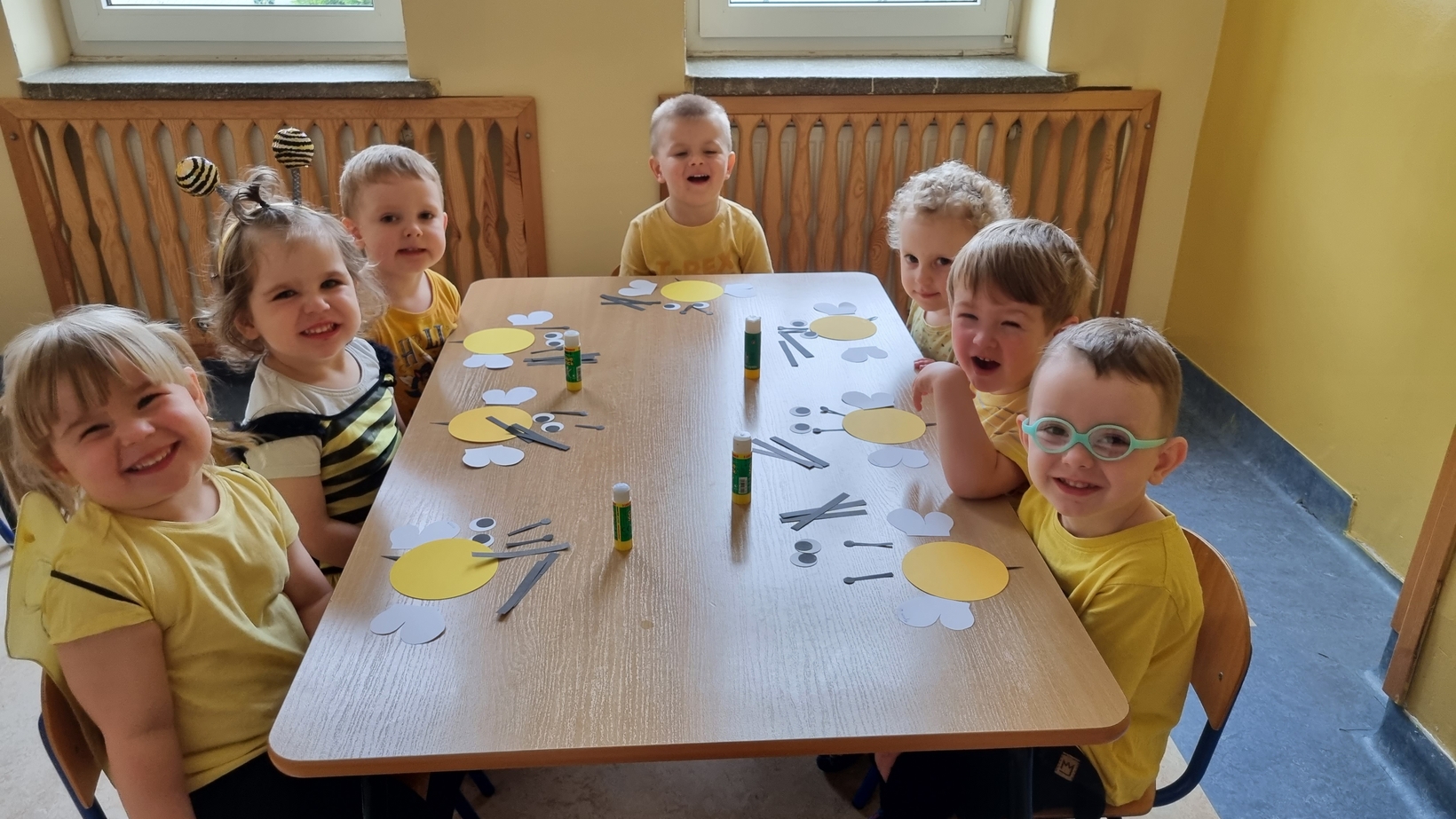 Dzisiaj na naszej grupie obchodziliśmy "Światowy Dzień Pszczół". Z tej okazji zostały przeprowadzone zajęcia, których celem było budzenie świadomości u dzieci o pożyteczności pszczół. Dzieci dowiedziały się jak wygląda praca pszczelarza i pszczół. Na koniec wspólnie z wielkim zaangażowaniem wykonaliśmy prace plastyczną.