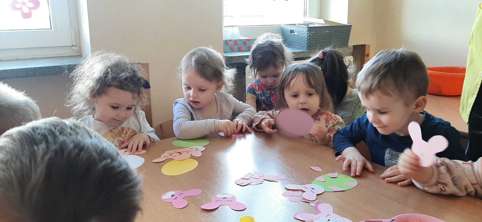 W związku z nadchodzącymi świętami dzieci wykonywały ZAJĄCZKI Wielkanocne. Dzieci wyklejały zajączka z kolorowych papierów