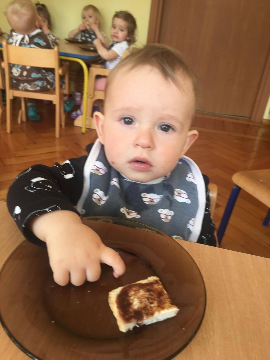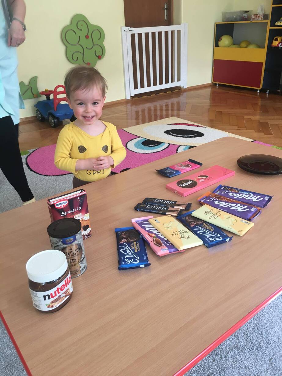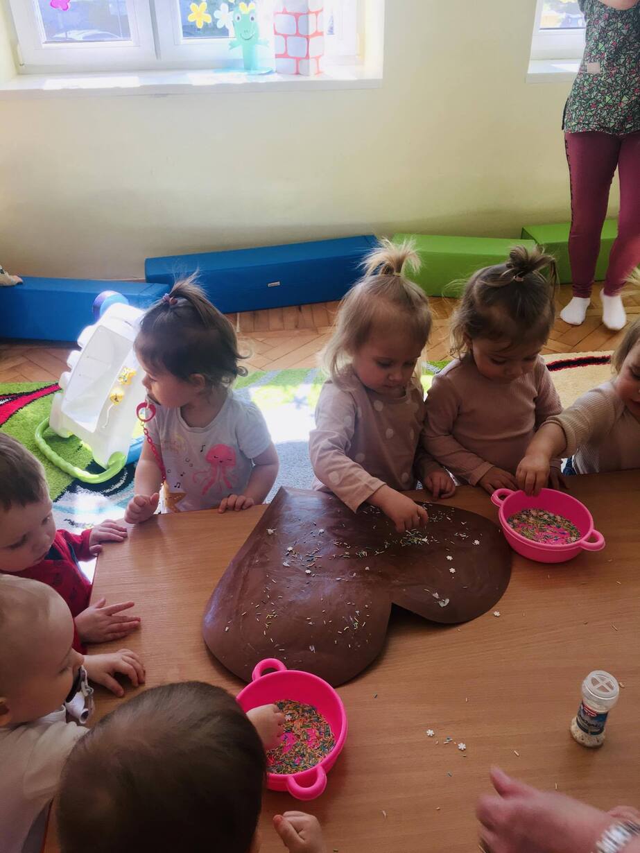 Grupa Biedronki obchodziła Dzień czekolady. Dzieci poznały czekoladę mleczną, białą, gorzką i smakową. Podczas śniadania kosztowały kanapki z kremem czekoladowym. Na końcu dzieci wykonały pracę plastyczną - ozdabiały czekoladowe serduszko.