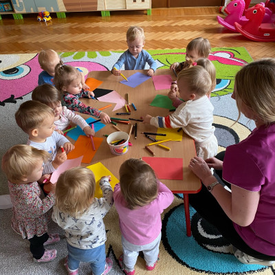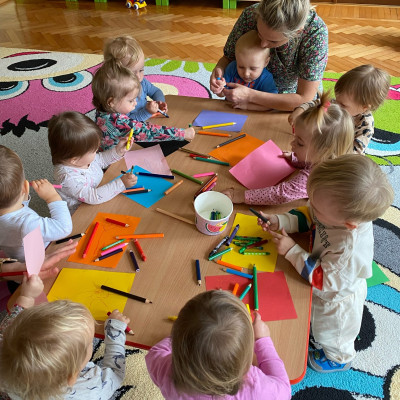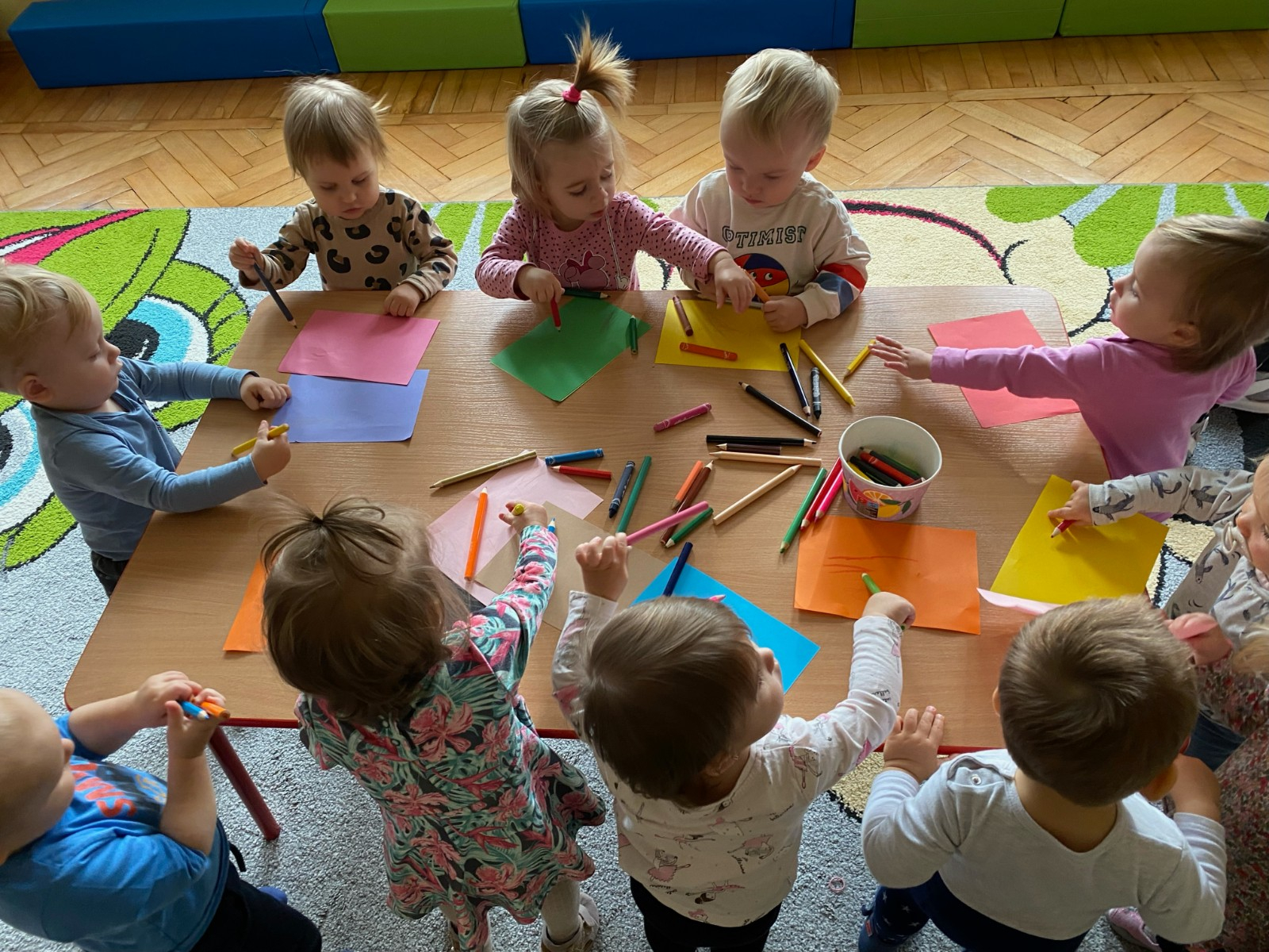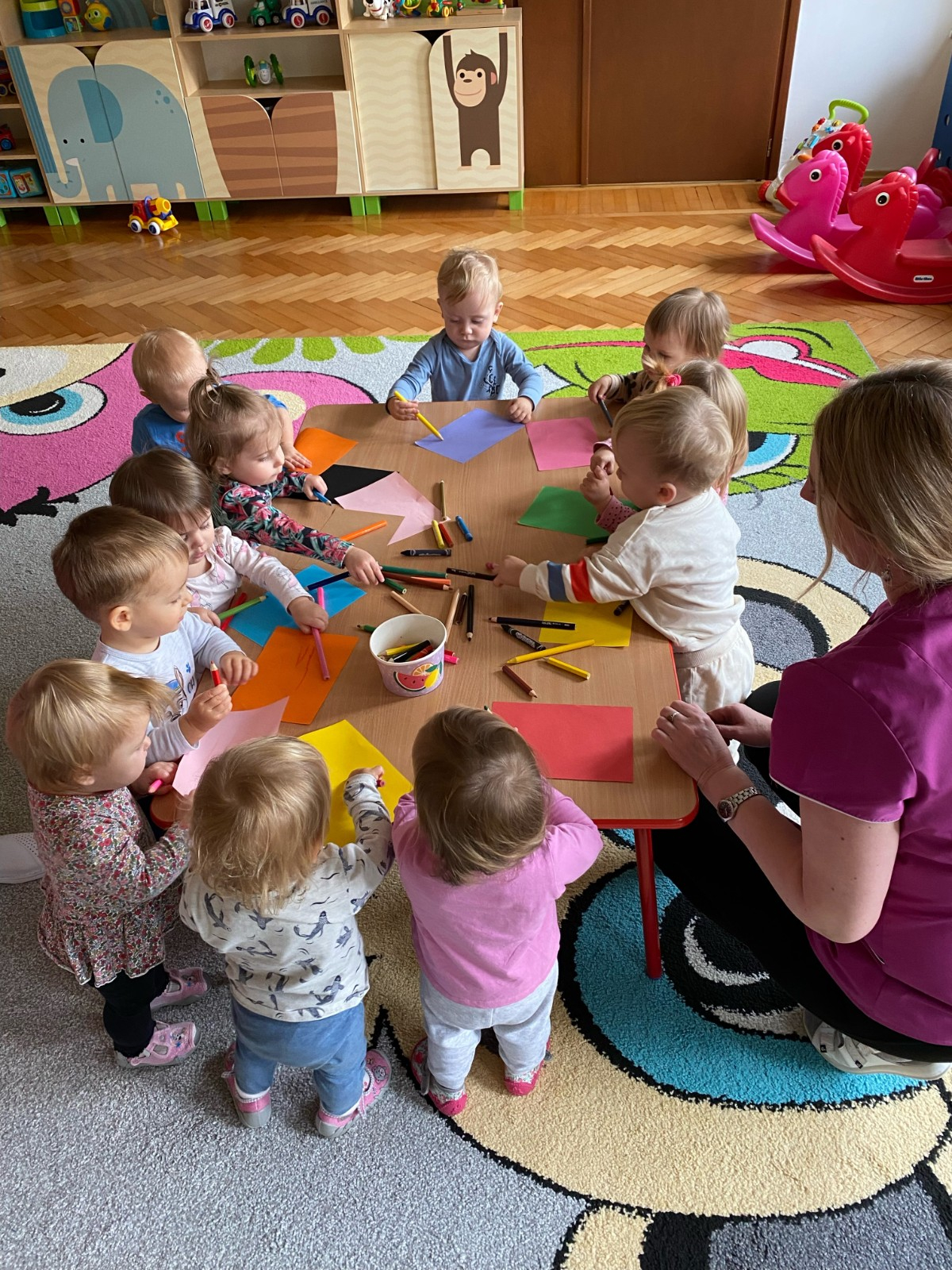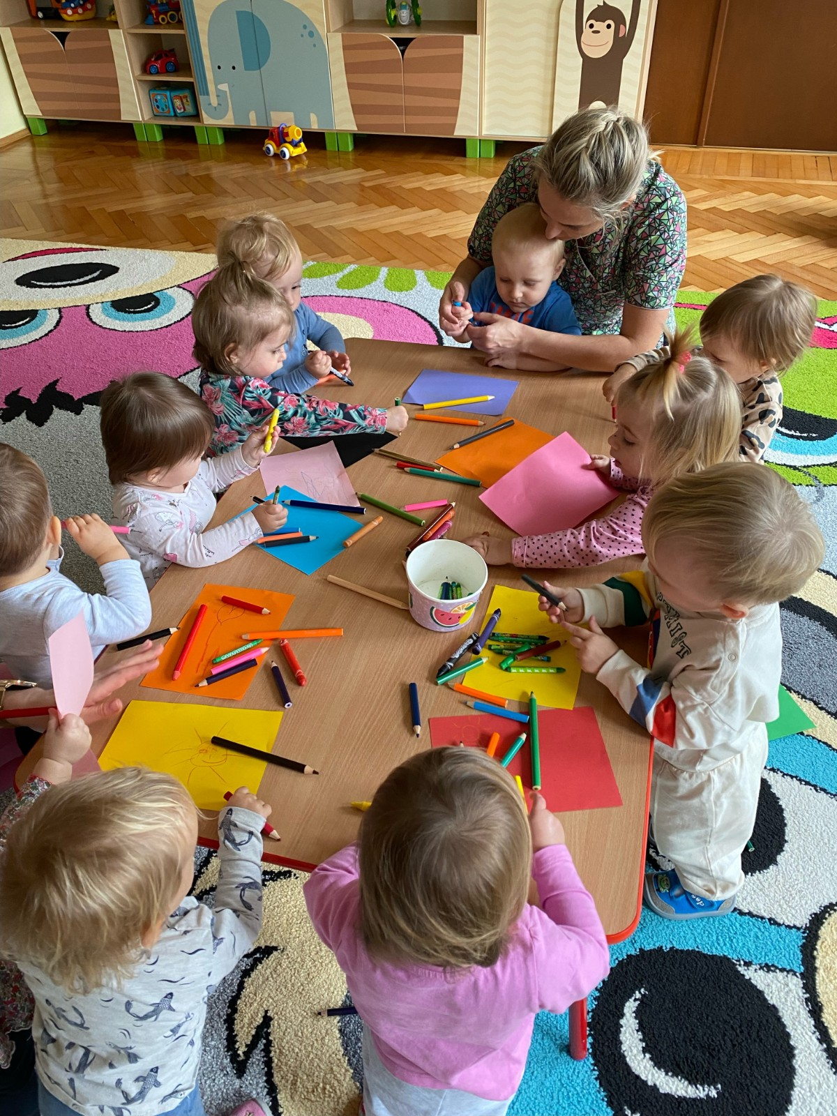 Grupa Biedronek 22.11 obchodziła Dzień Kredki 🖍️🖍️🖍️Z tej okazji dzieci próbowały swoich możliwości w rysowaniu kredkami, przy pomocy Cioć wykonały prace plastyczne mające na celu naukę rozróżniania kolorów.